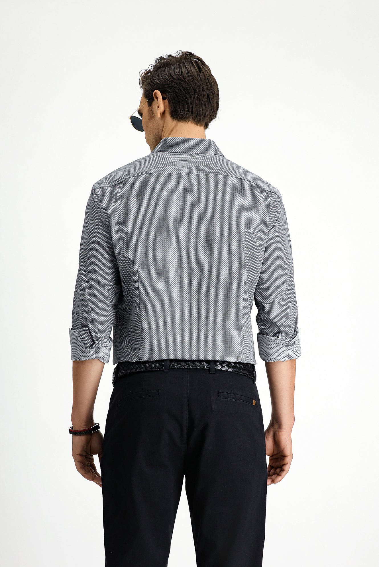 Orta Gri Uzun Kol Slim Fit Dar Kesim Klasik Desenli Pamuk Gömlek