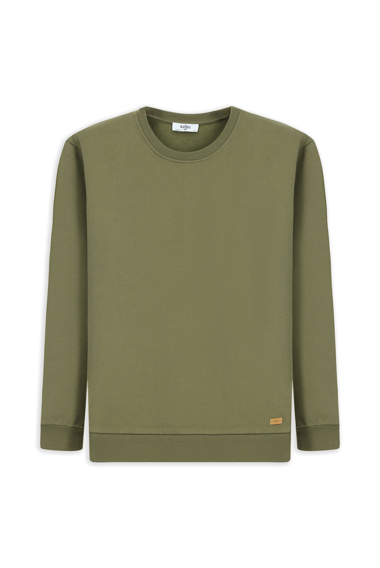 Orta Haki Bisiklet Yaka Regular Fit Pamuklu Basic Sweatshirt