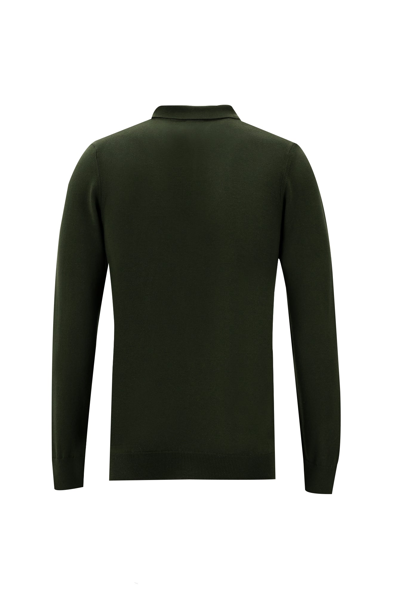 Orta Haki Polo Yaka Slim Fit Triko Kazak