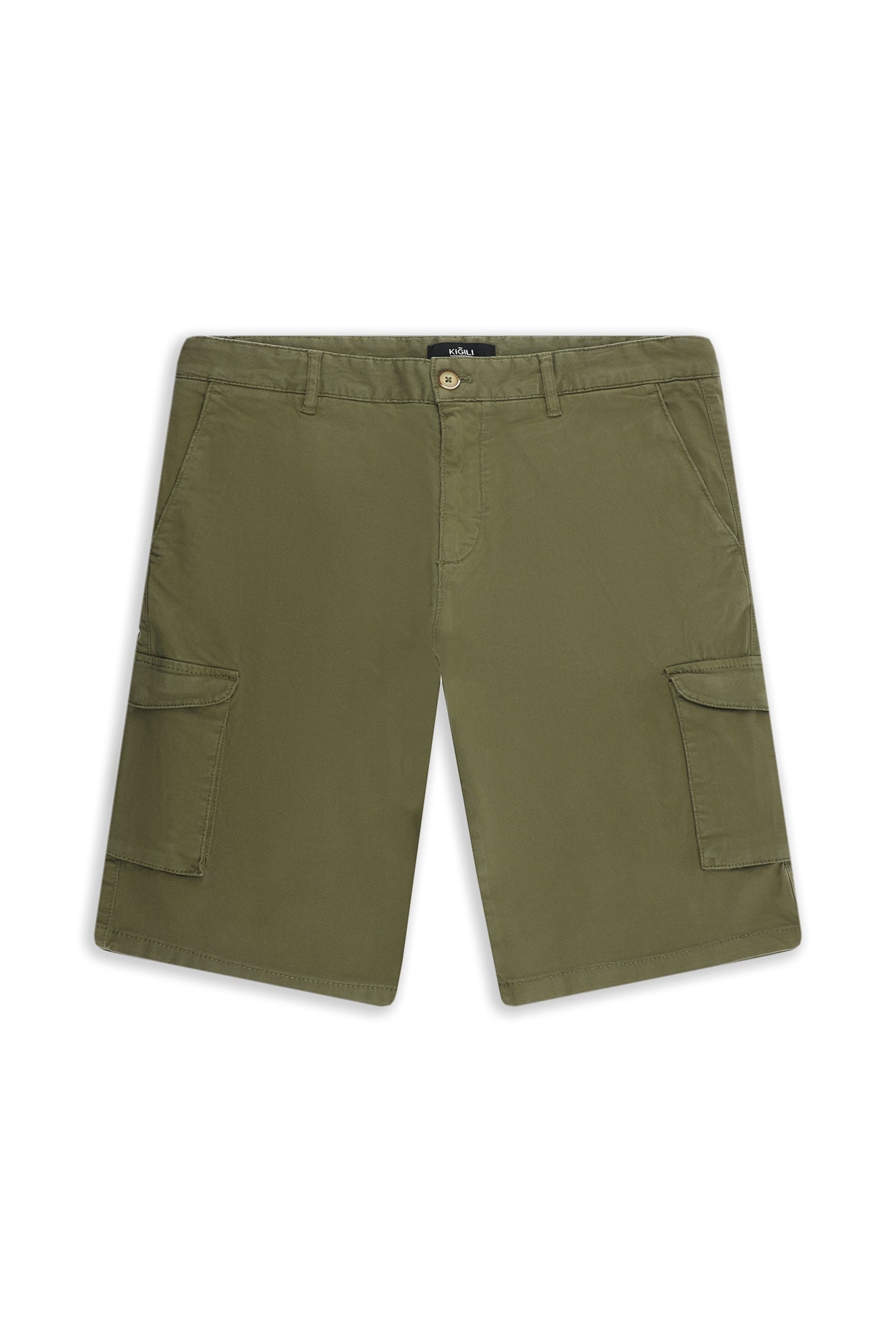 Orta Haki 6 Drop Regular Fit Standart Kesim Kargo Cepli Pamuklu Bermuda Şort