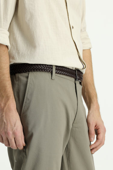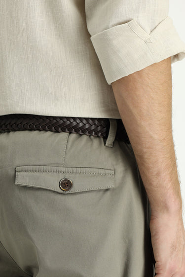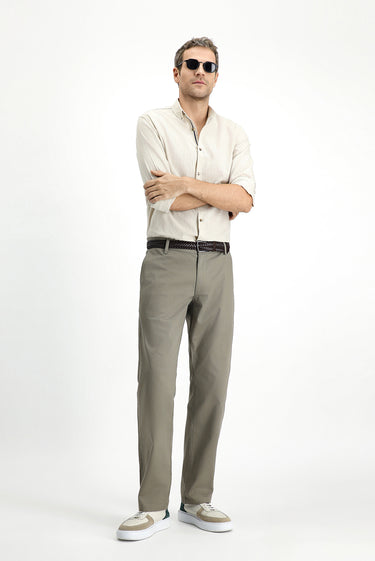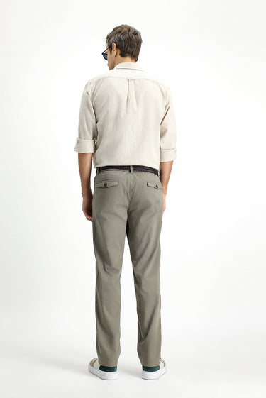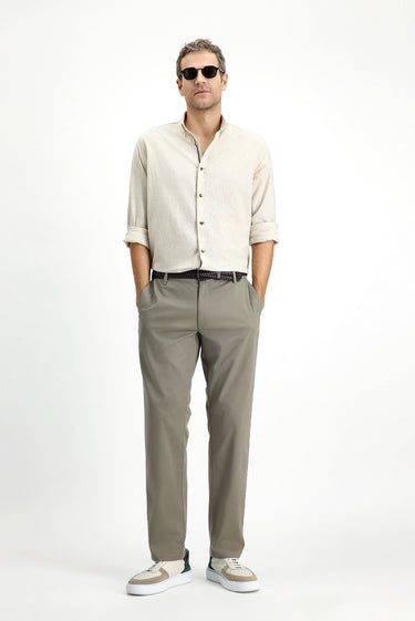 Orta Haki Slim Fit Dar Kesim Beli Lastikli Likralı Kanvas / Chino Pantolon