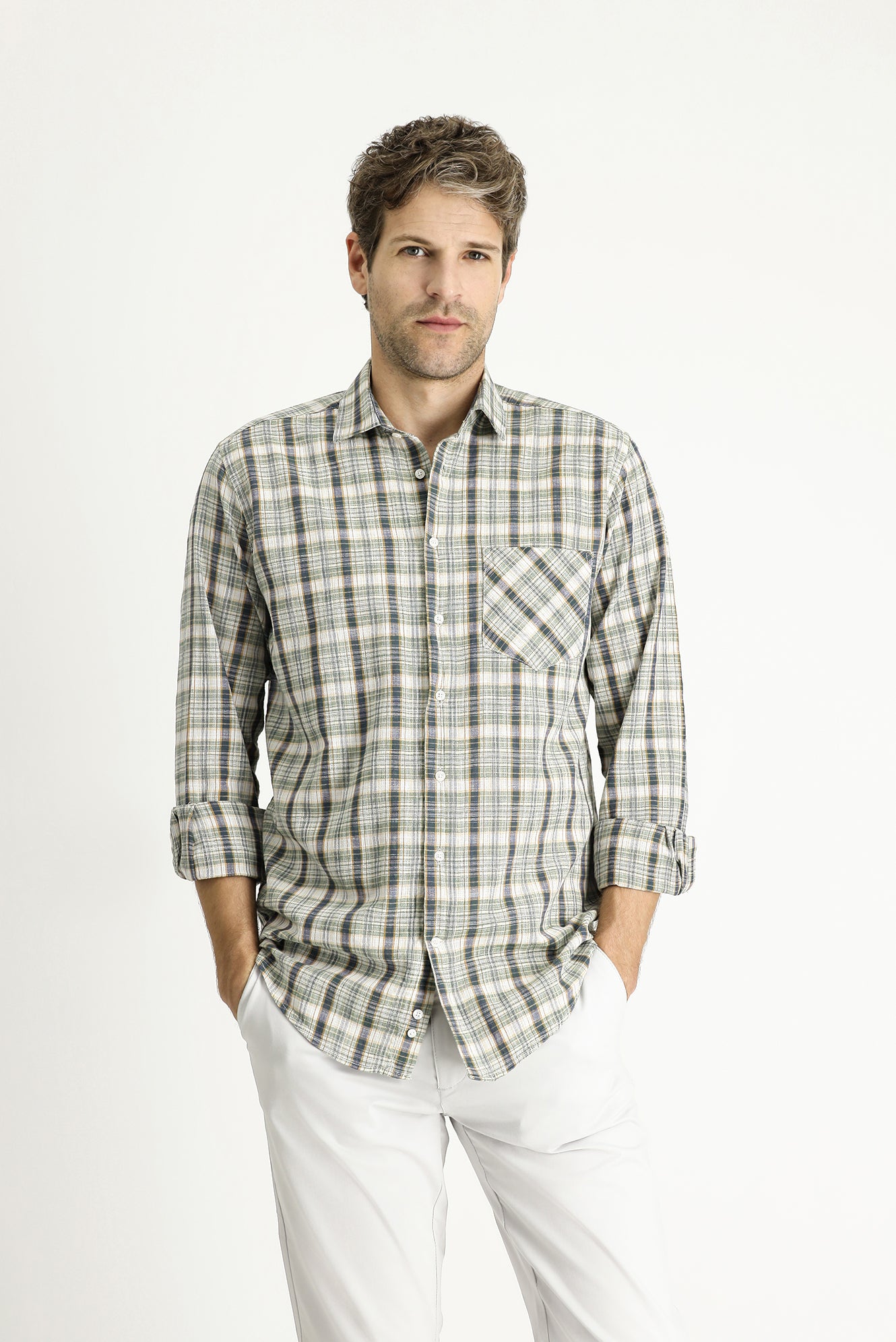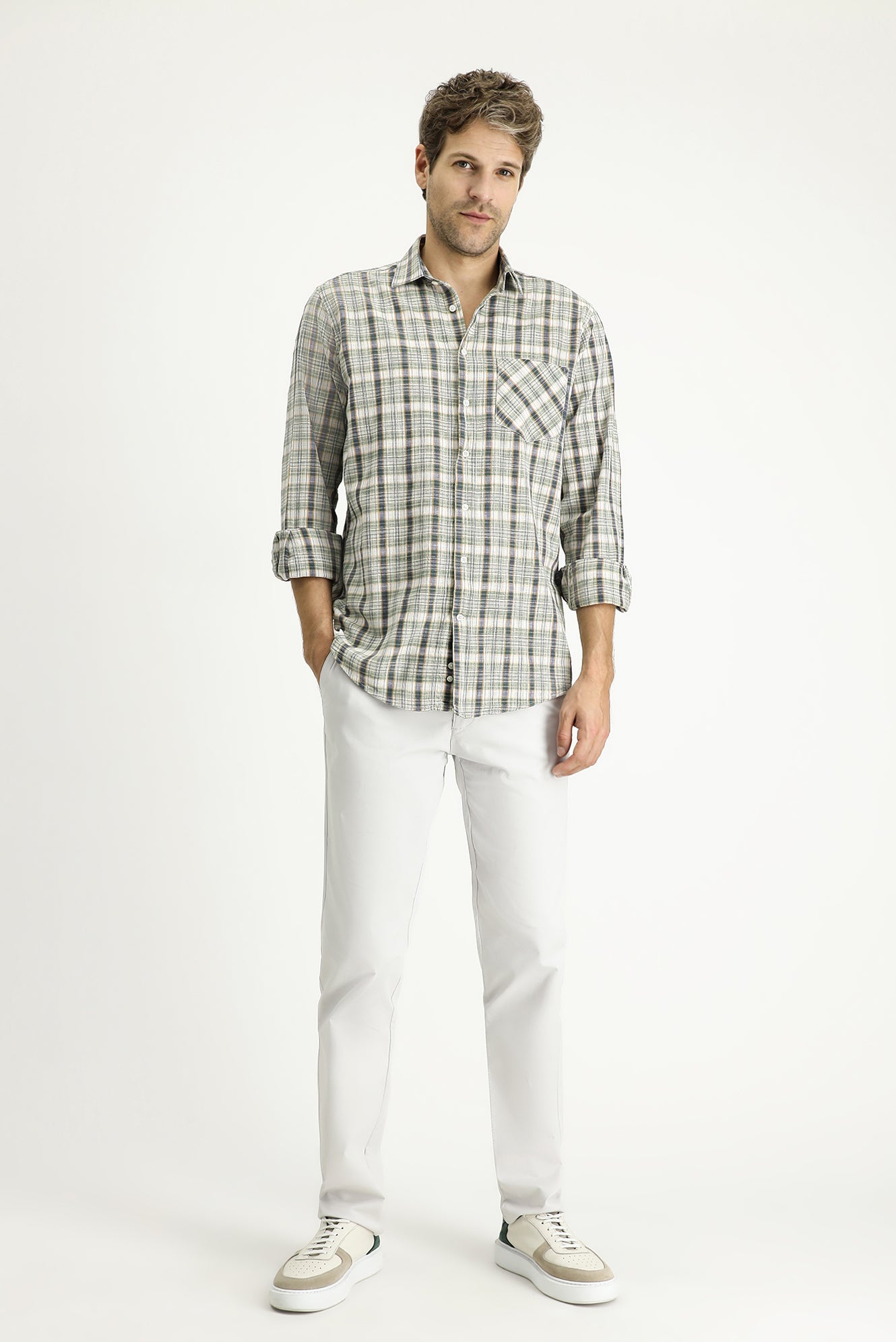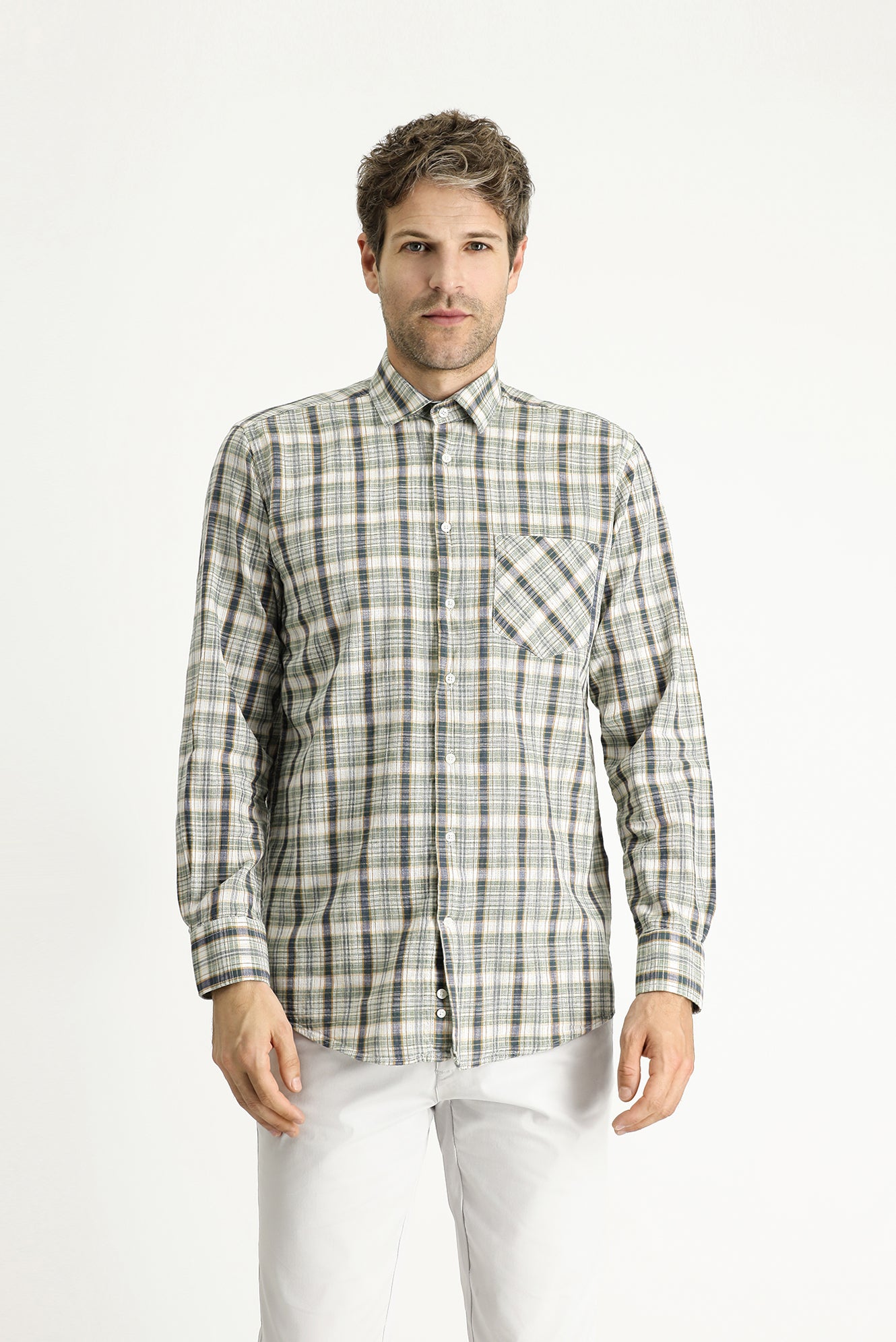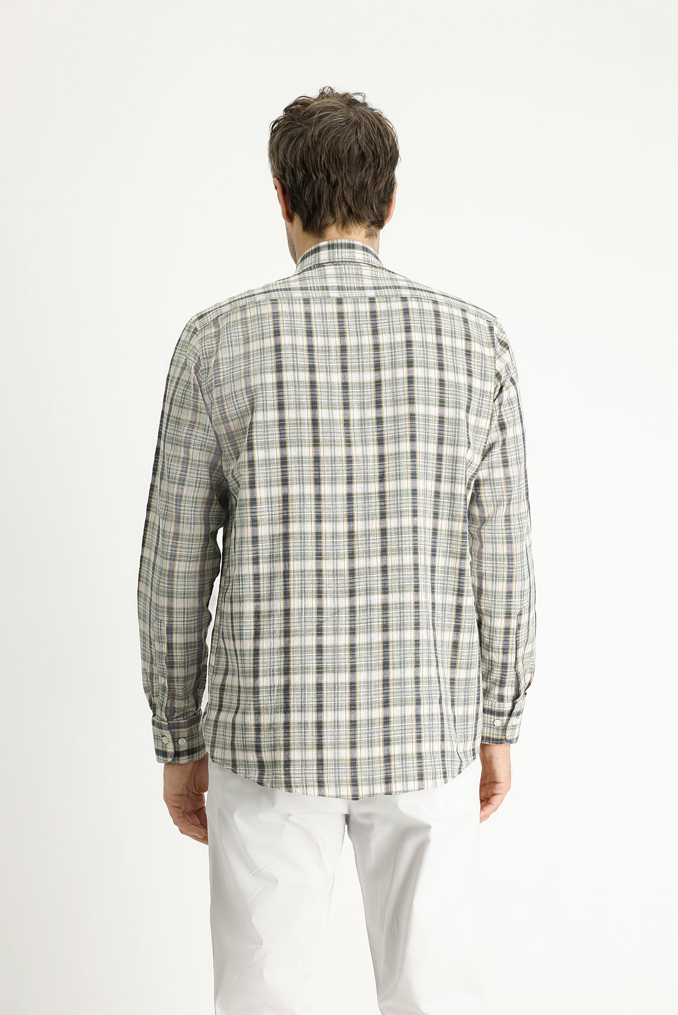 Orta Haki Uzun Kol Regular Fit Ekose Pamuk Gömlek