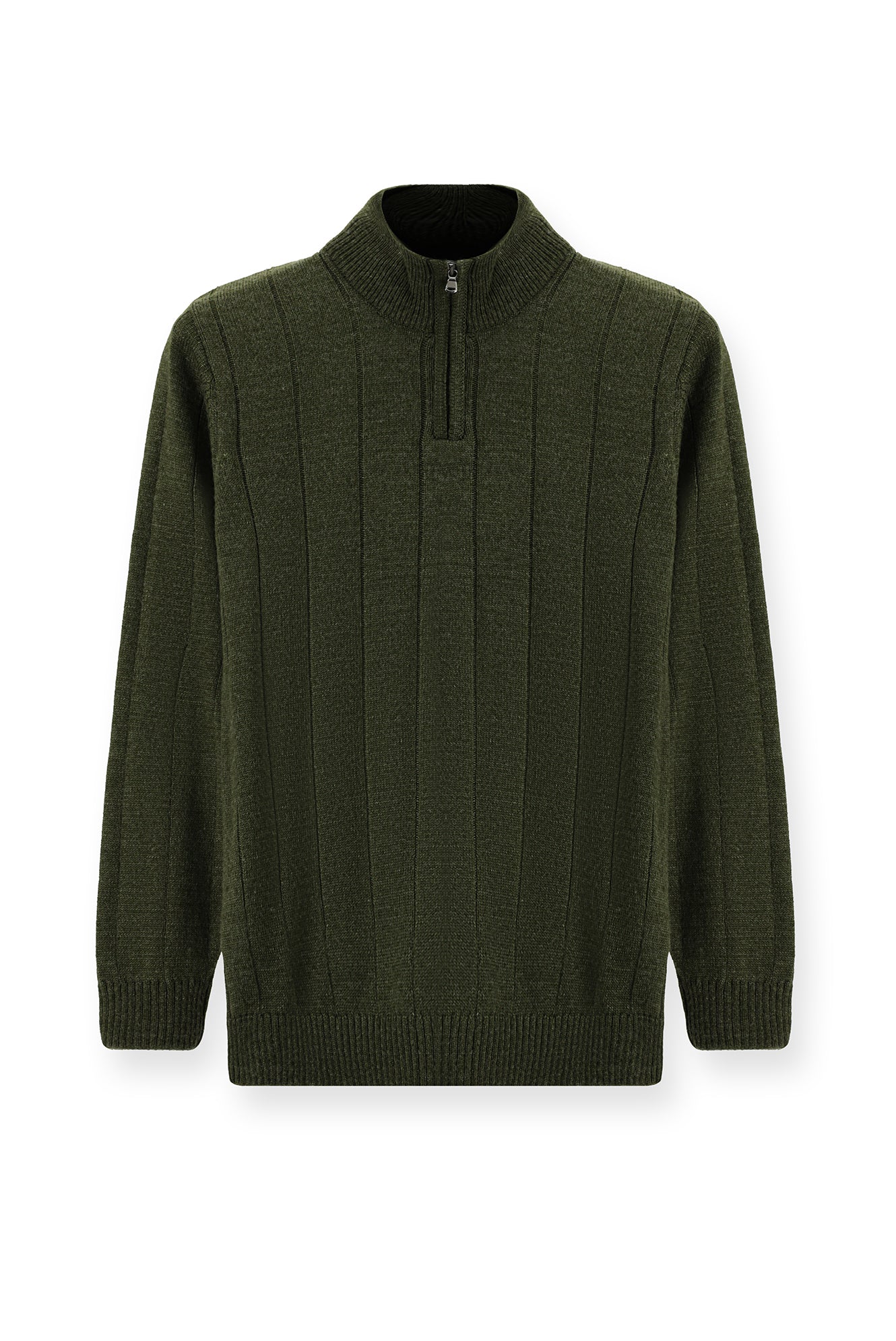 Orta Haki Yarım Balıkçı Yaka Regular Fit Fermuarlı Desenli Triko Kazak