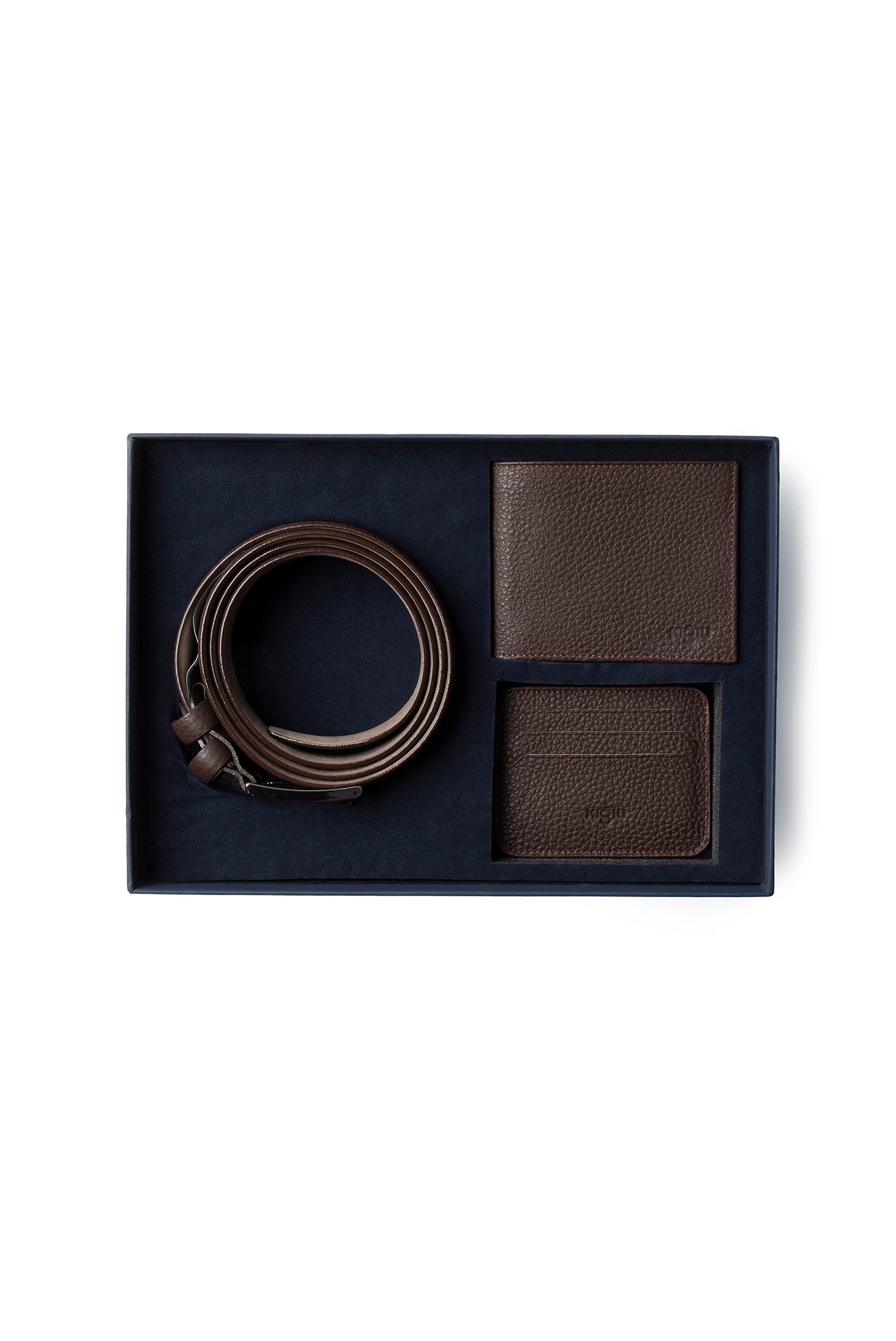 Orta Kahve Desenli 3'lü Deri Kemer & Cüzdan & Kartlık Hediye Kutulu Set