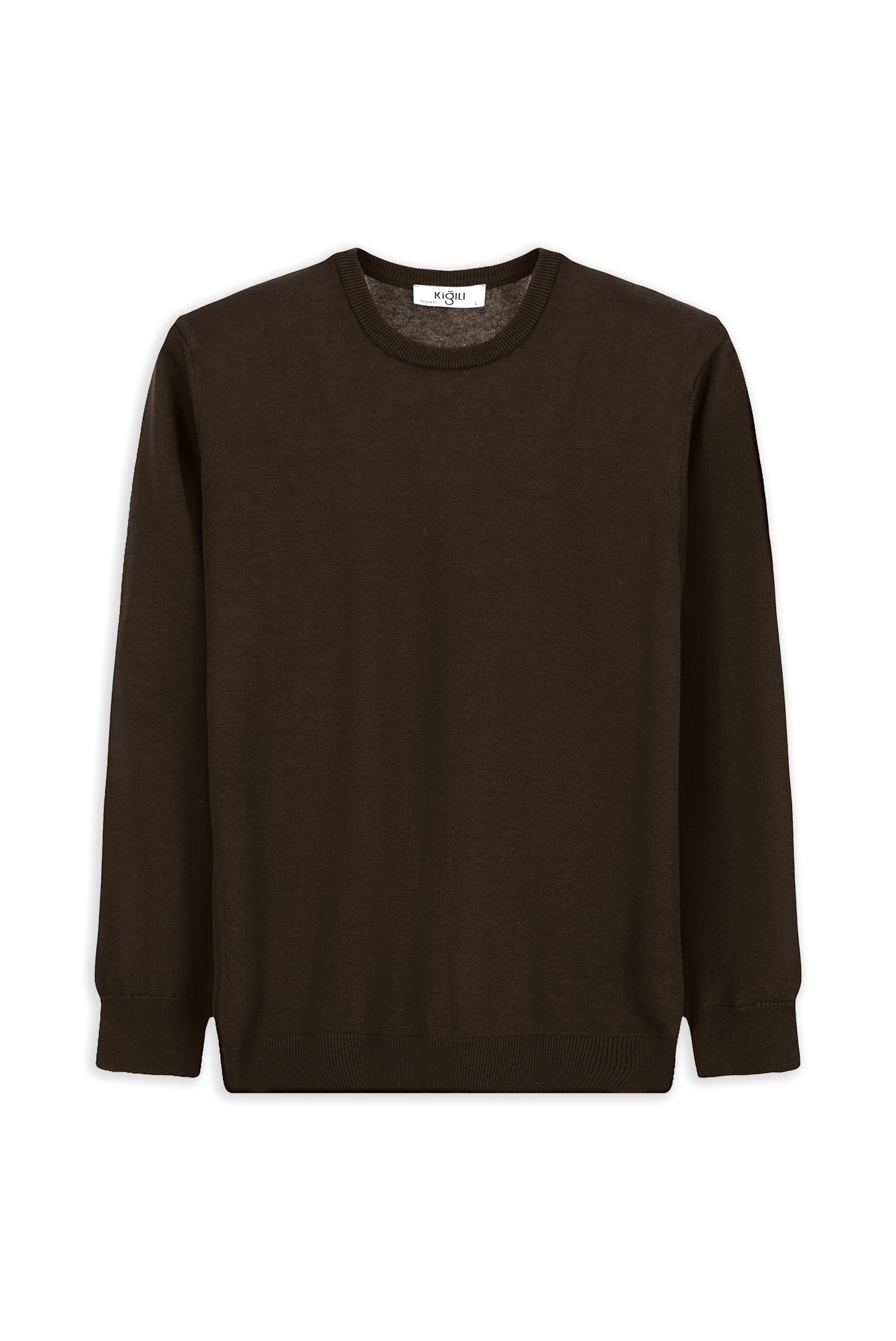 Orta Kahve Bisiklet Yaka Regular Fit Pamuklu Triko Kazak