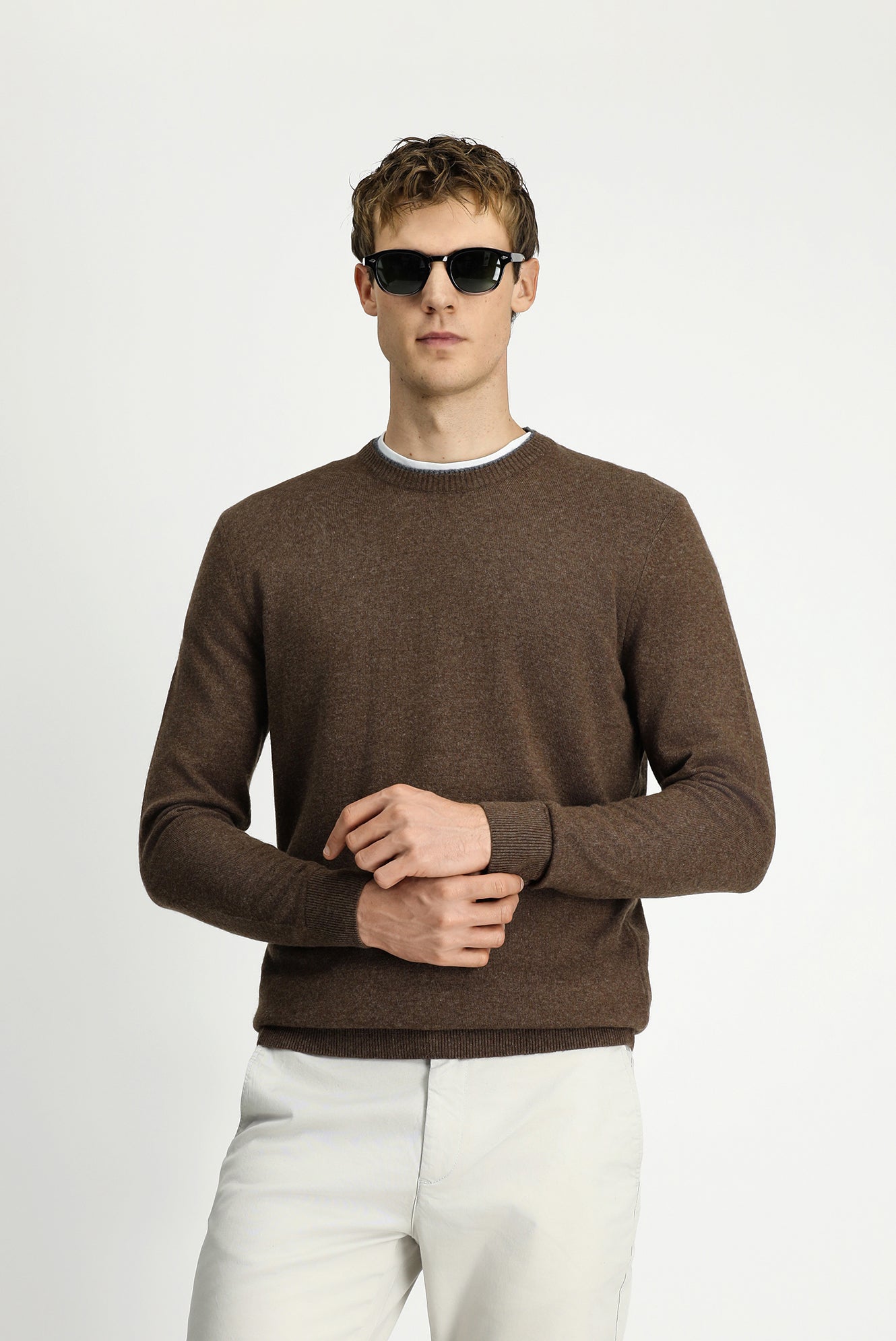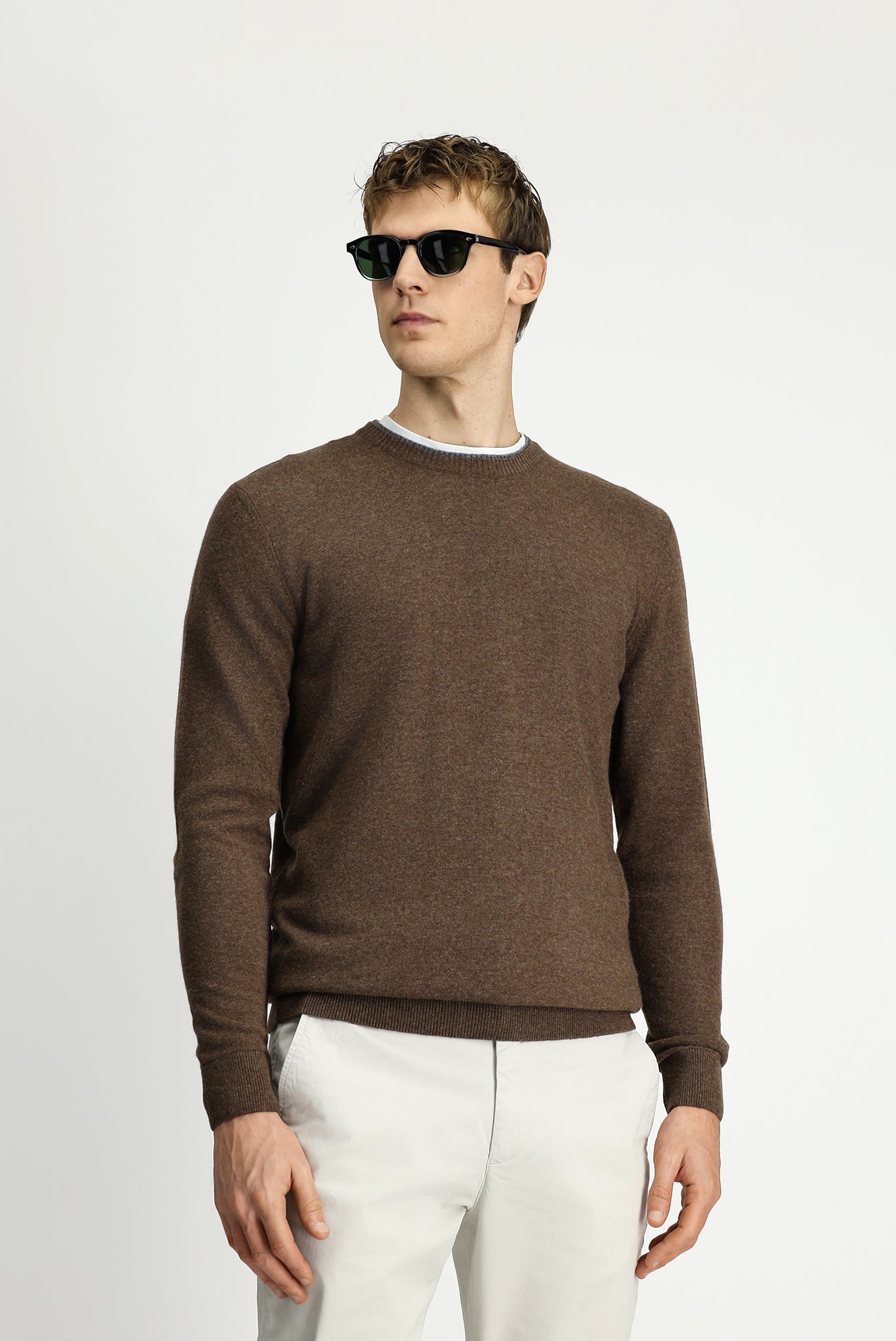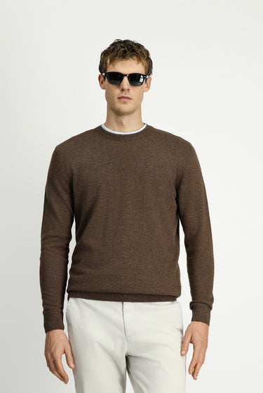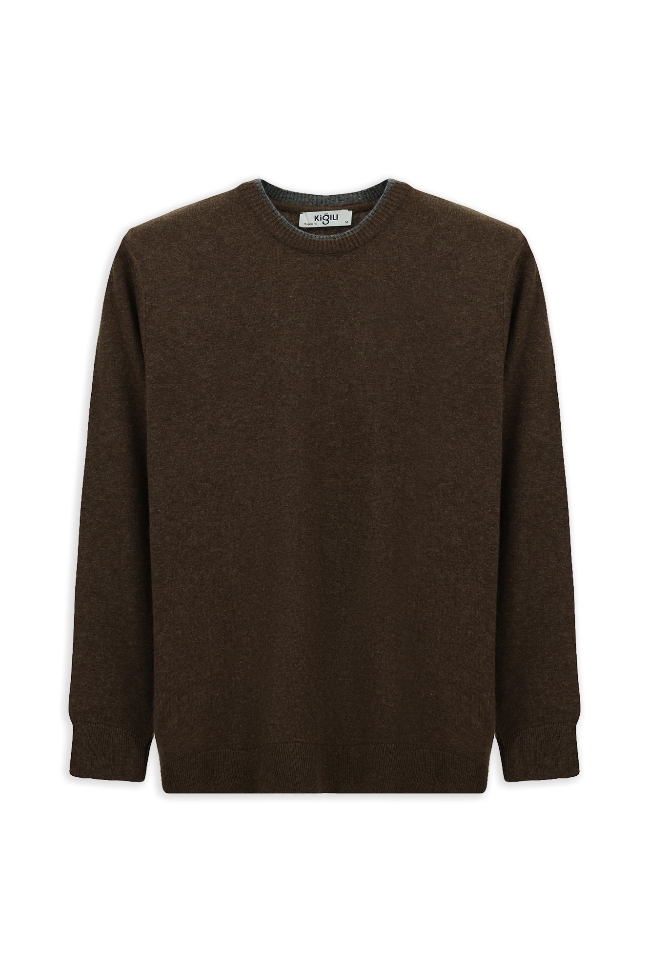 Orta Kahve Bisiklet Yaka Regular Fit Örme Yünlü Kaşmir Karışımlı Triko Kazak