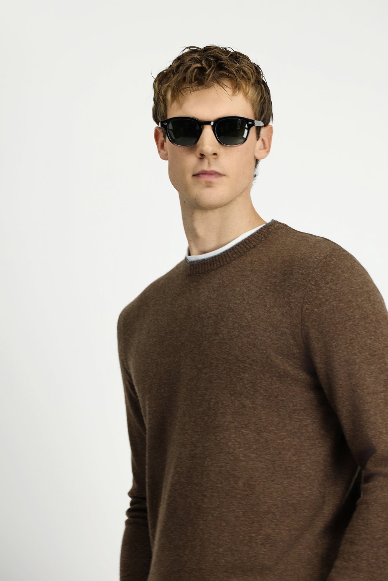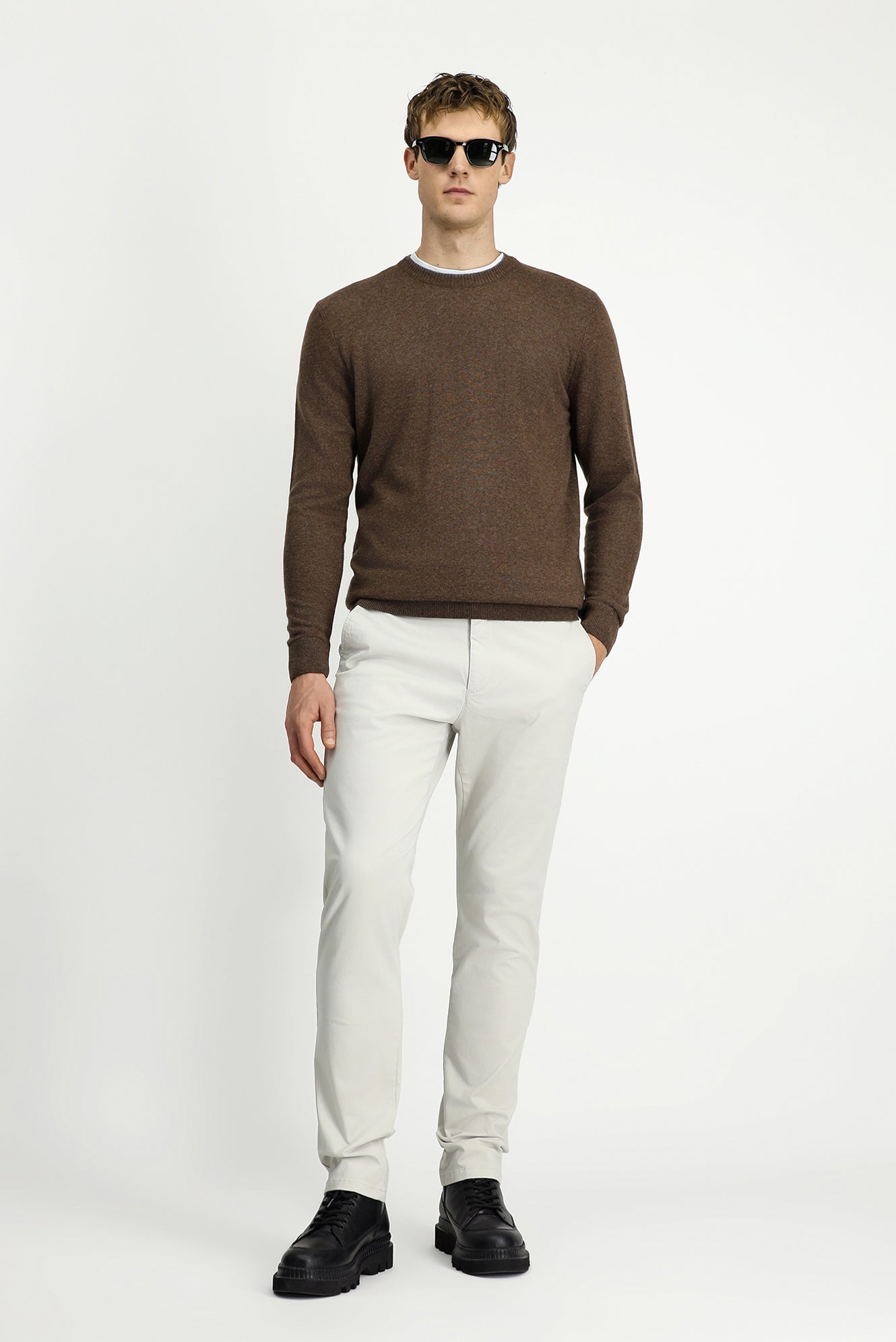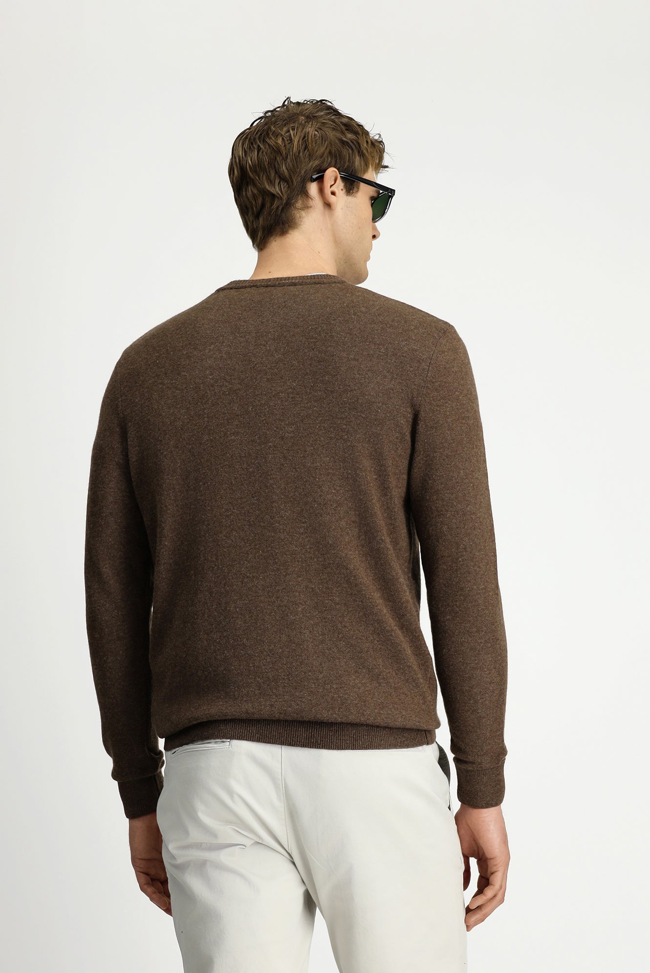 Orta Kahve Bisiklet Yaka Regular Fit Örme Yünlü Kaşmir Karışımlı Triko Kazak