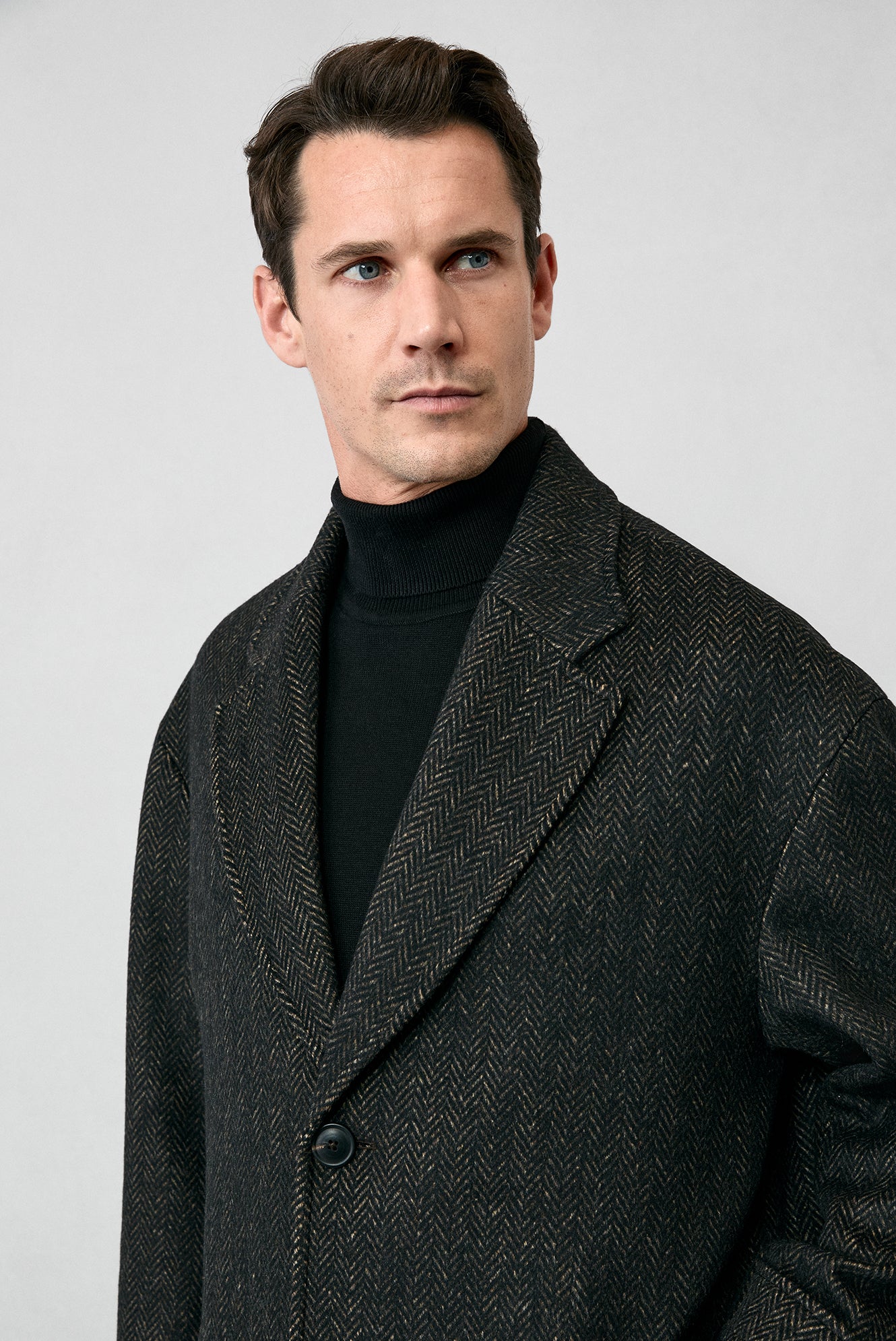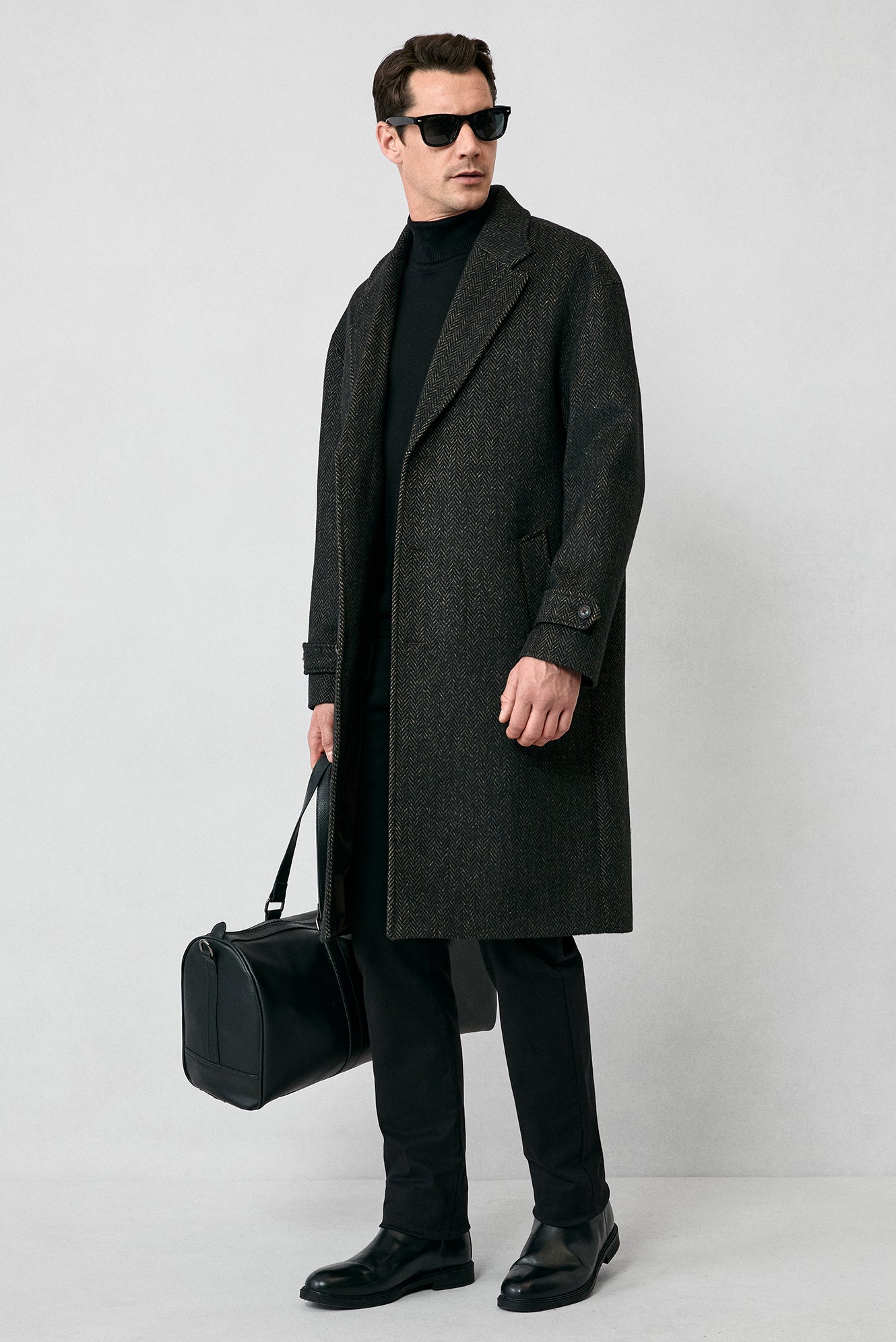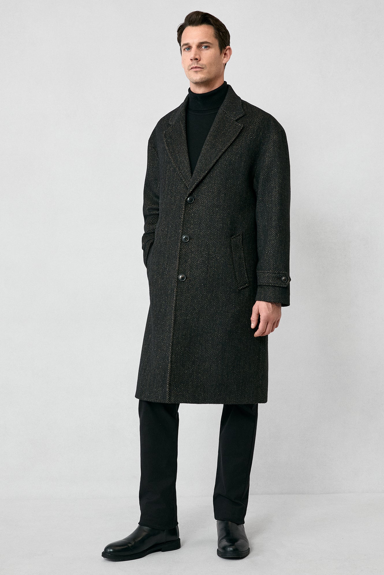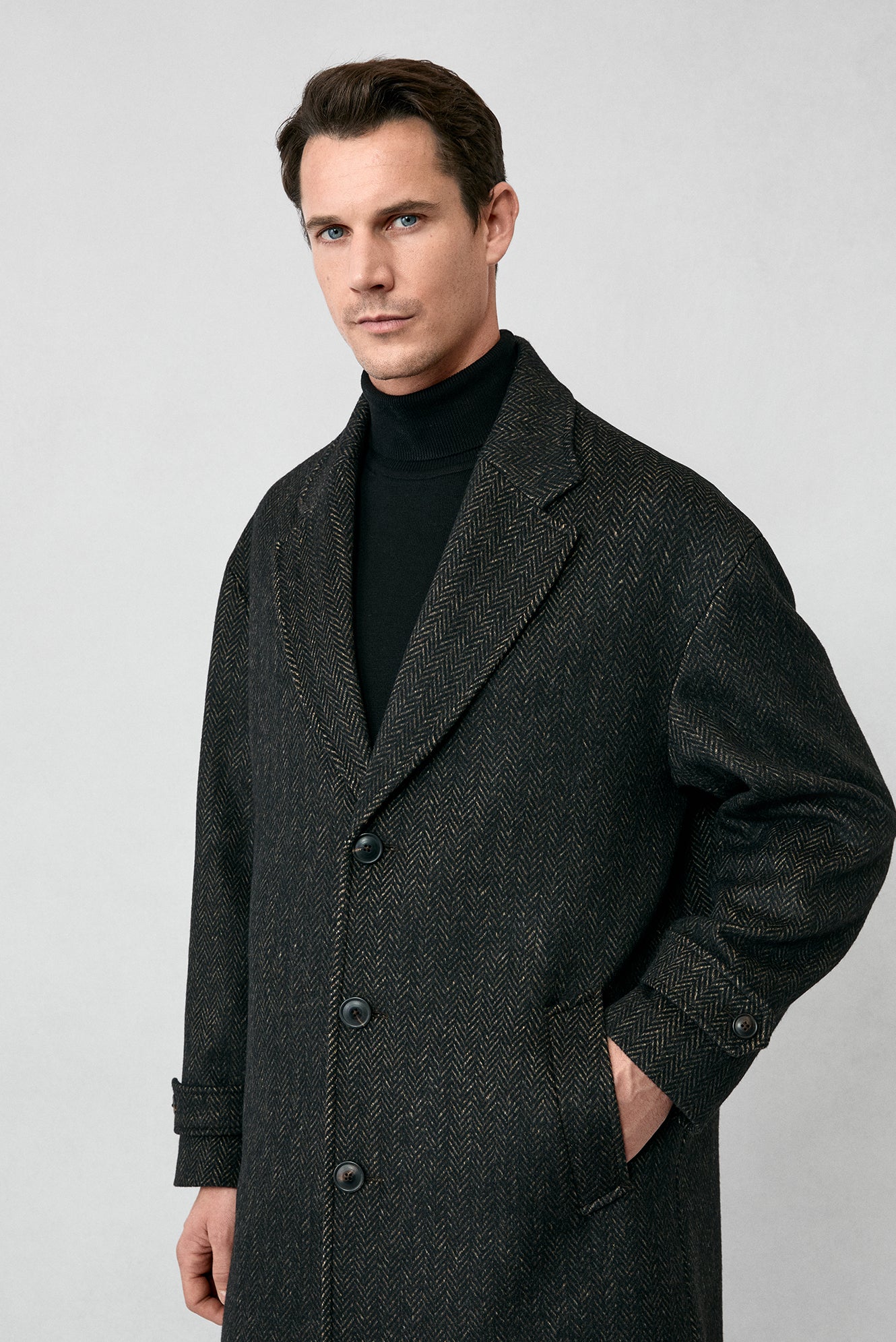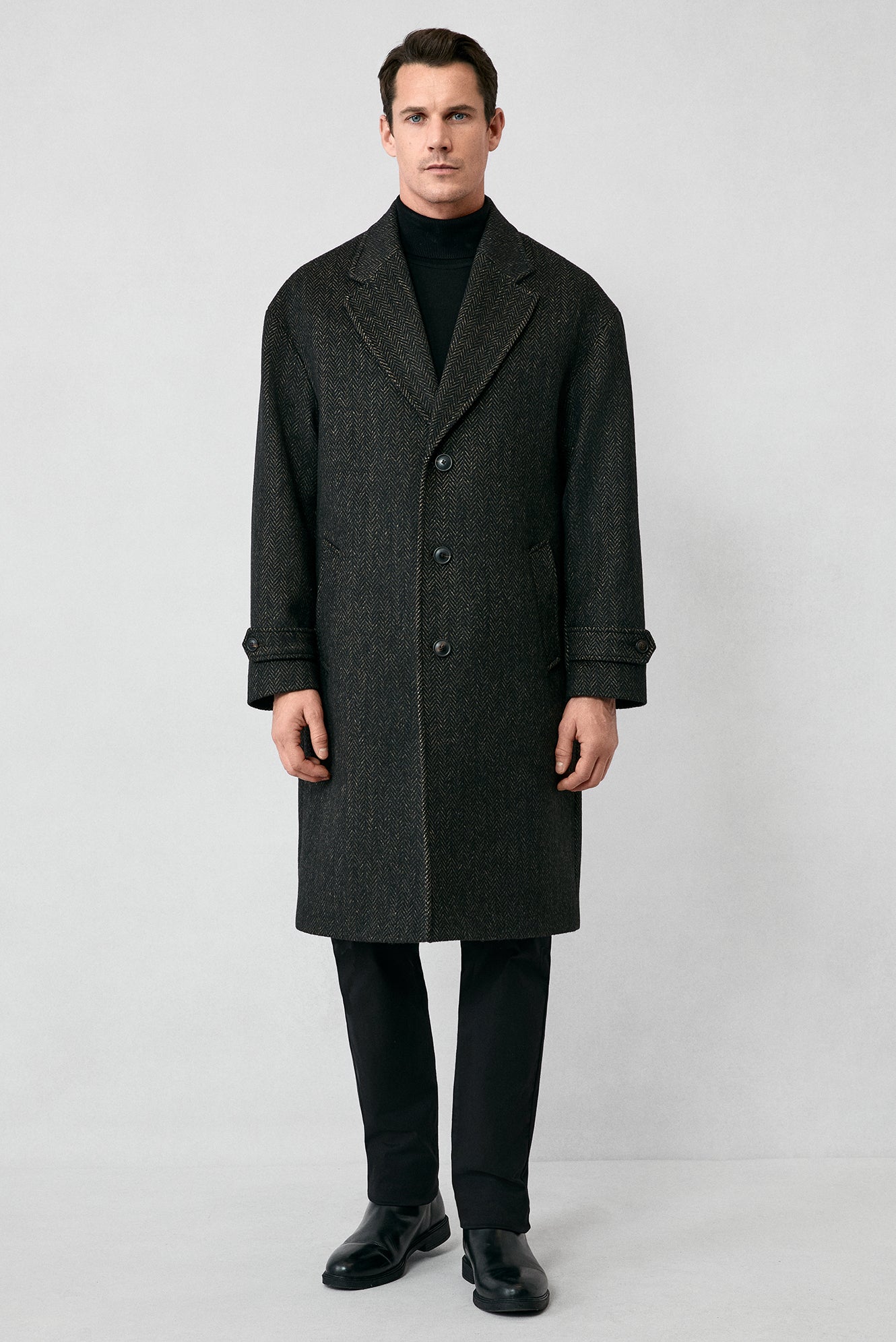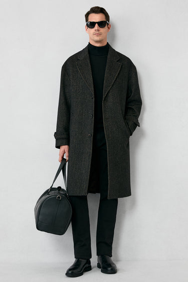 Orta Kahve Oversize Ekstra Rahat Kesim Apoletli Cepli Desenli Yünlü Palto
