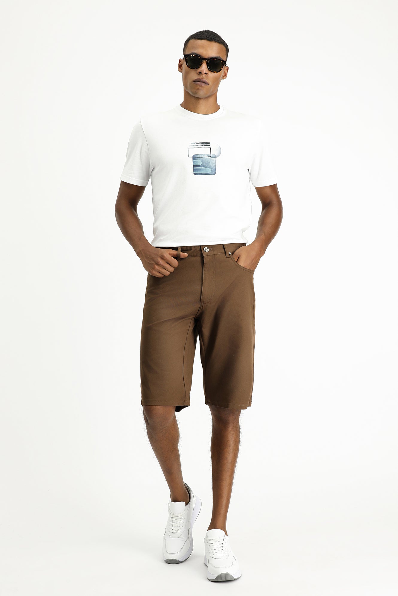 Orta Kahve Regular Fit Pamuklu Bermuda Şort