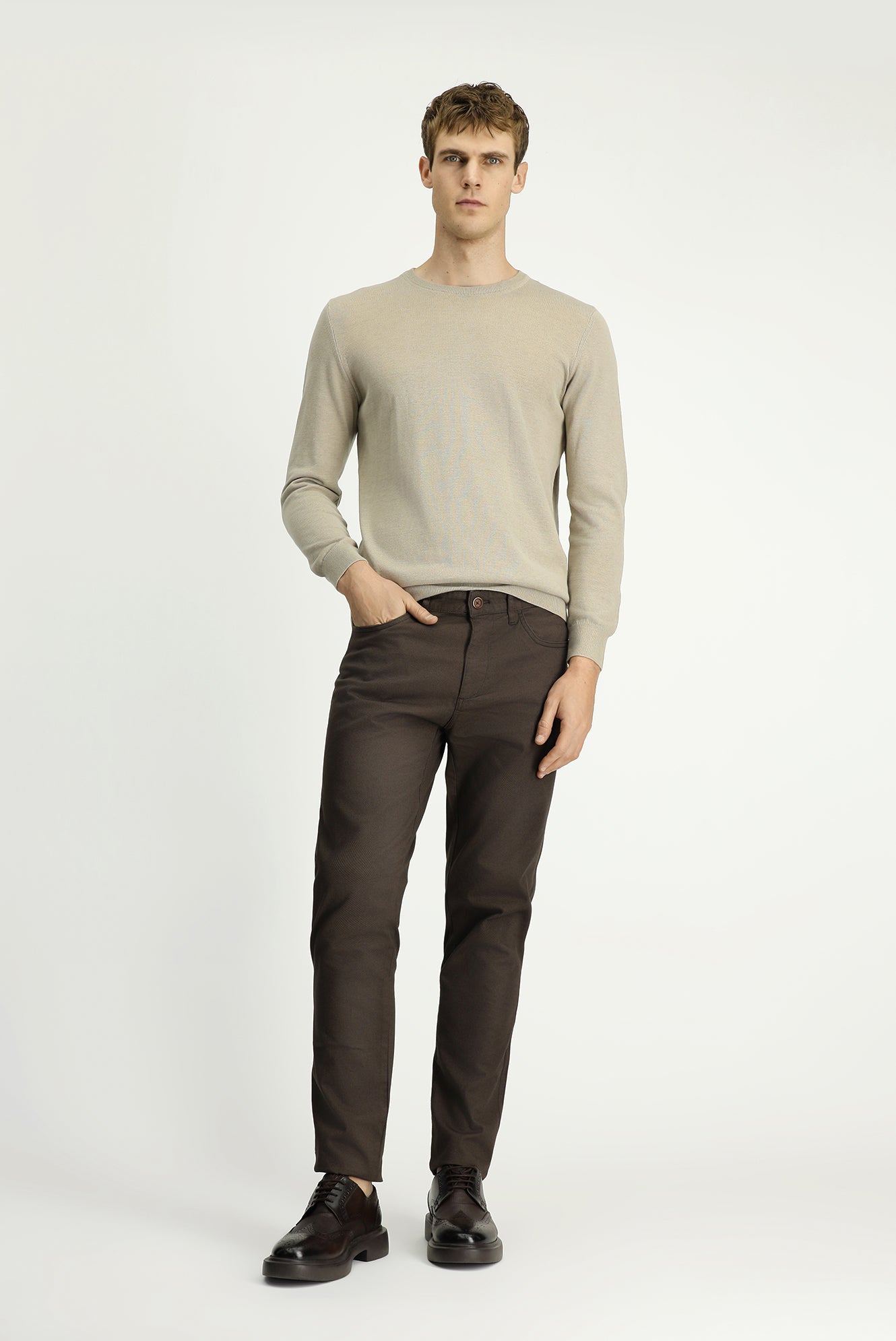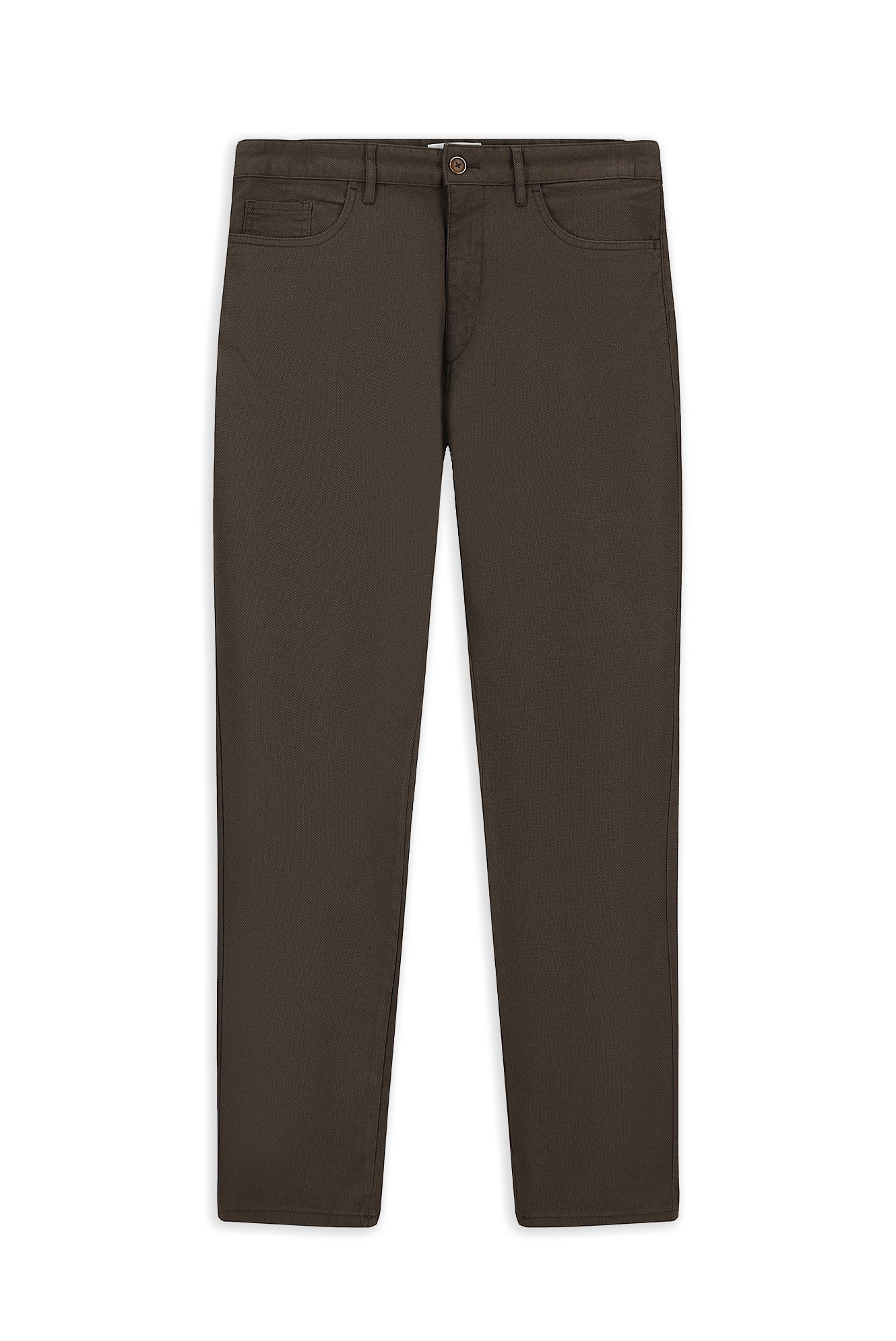 Orta Kahve Regular Fit Desenli Likralı Kanvas / Chino Pantolon