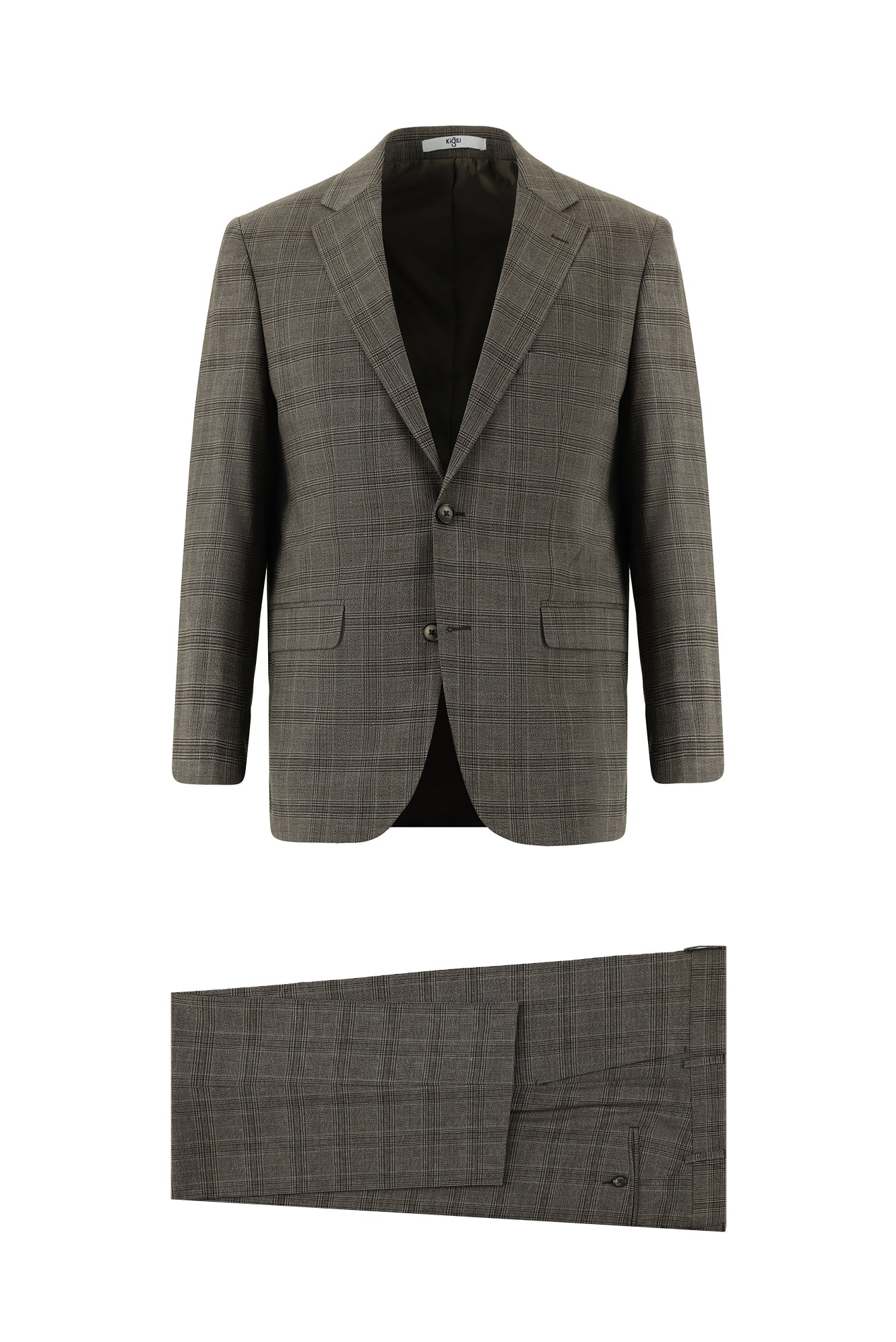 Orta Kahve 6 Drop Regular Fit Standart Kesim Ekose Takım Elbise