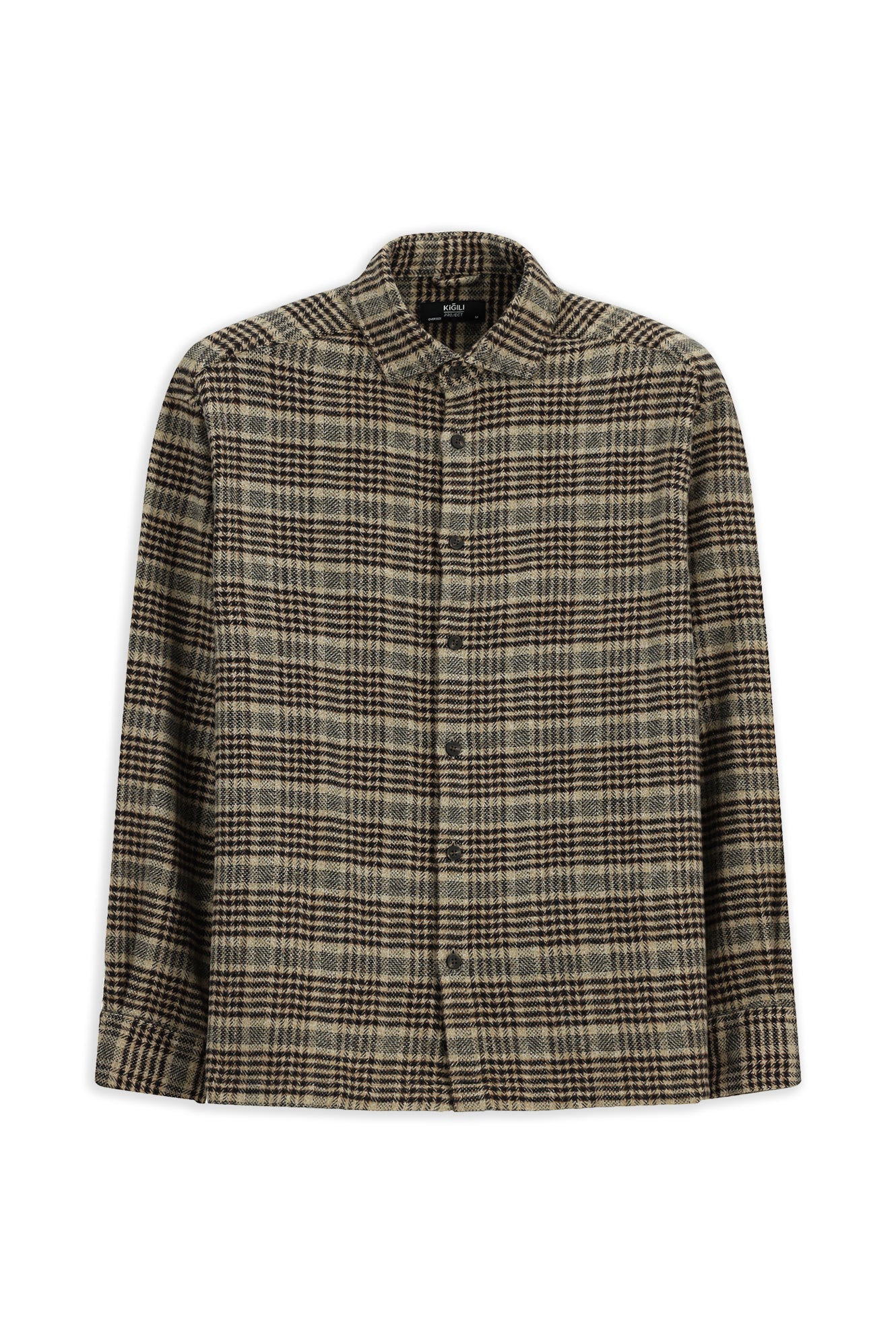 Orta Kahve Uzun Kol Oversize Ekstra Rahat Kesim Ekose Pamuk Shacket Oduncu Gömlek