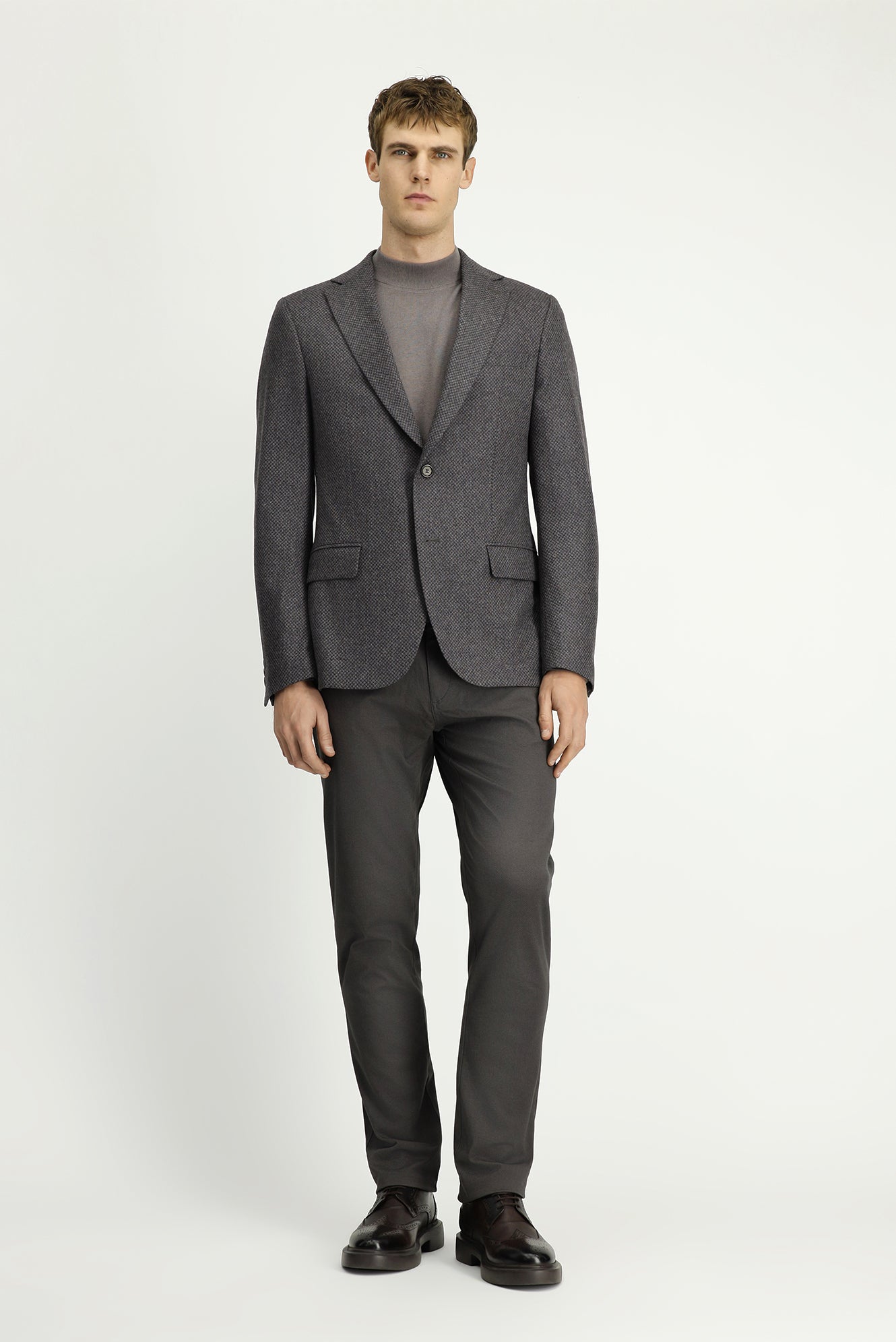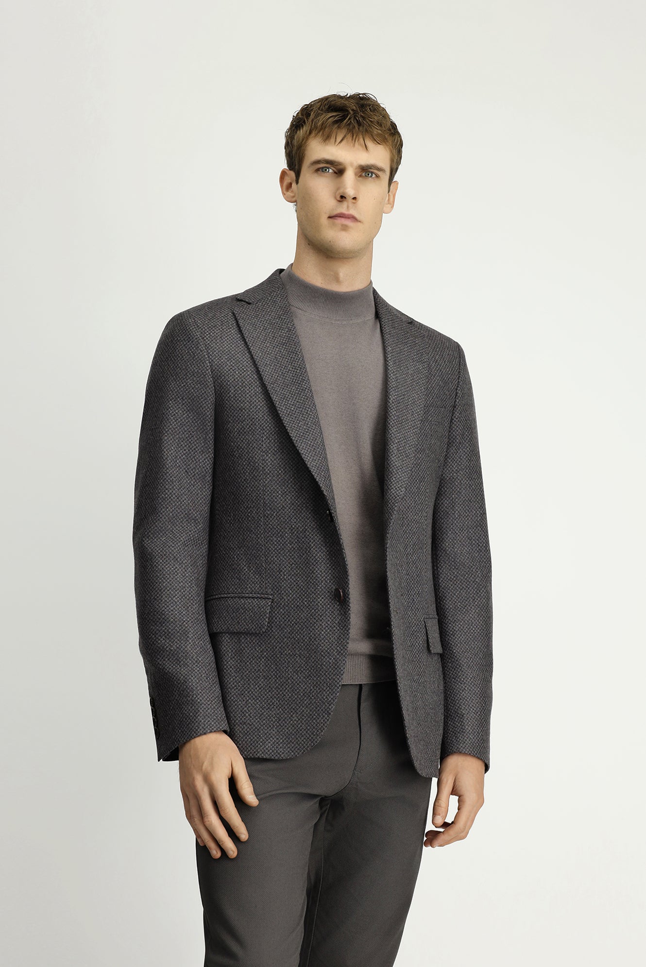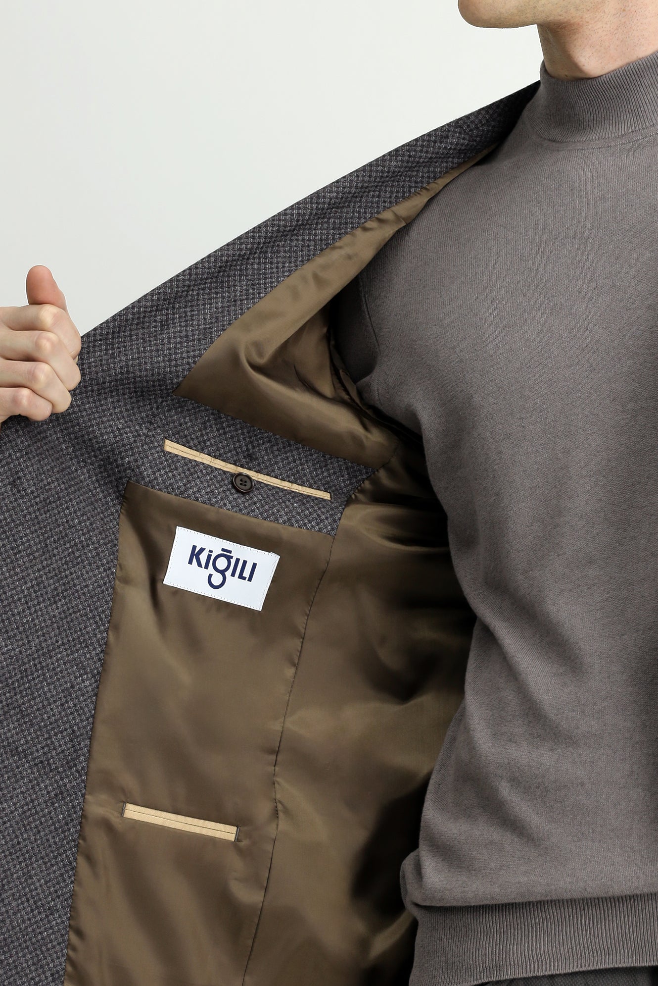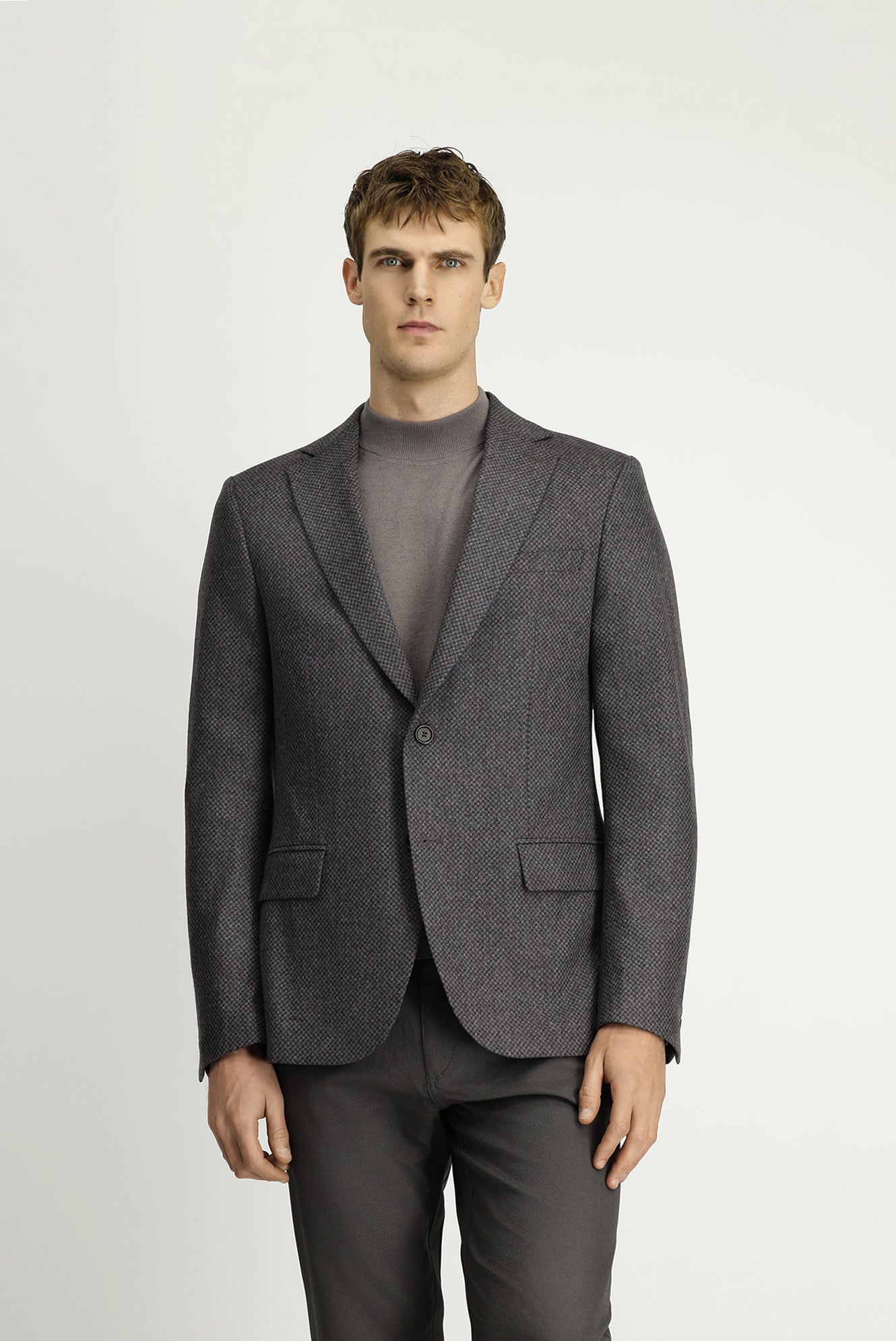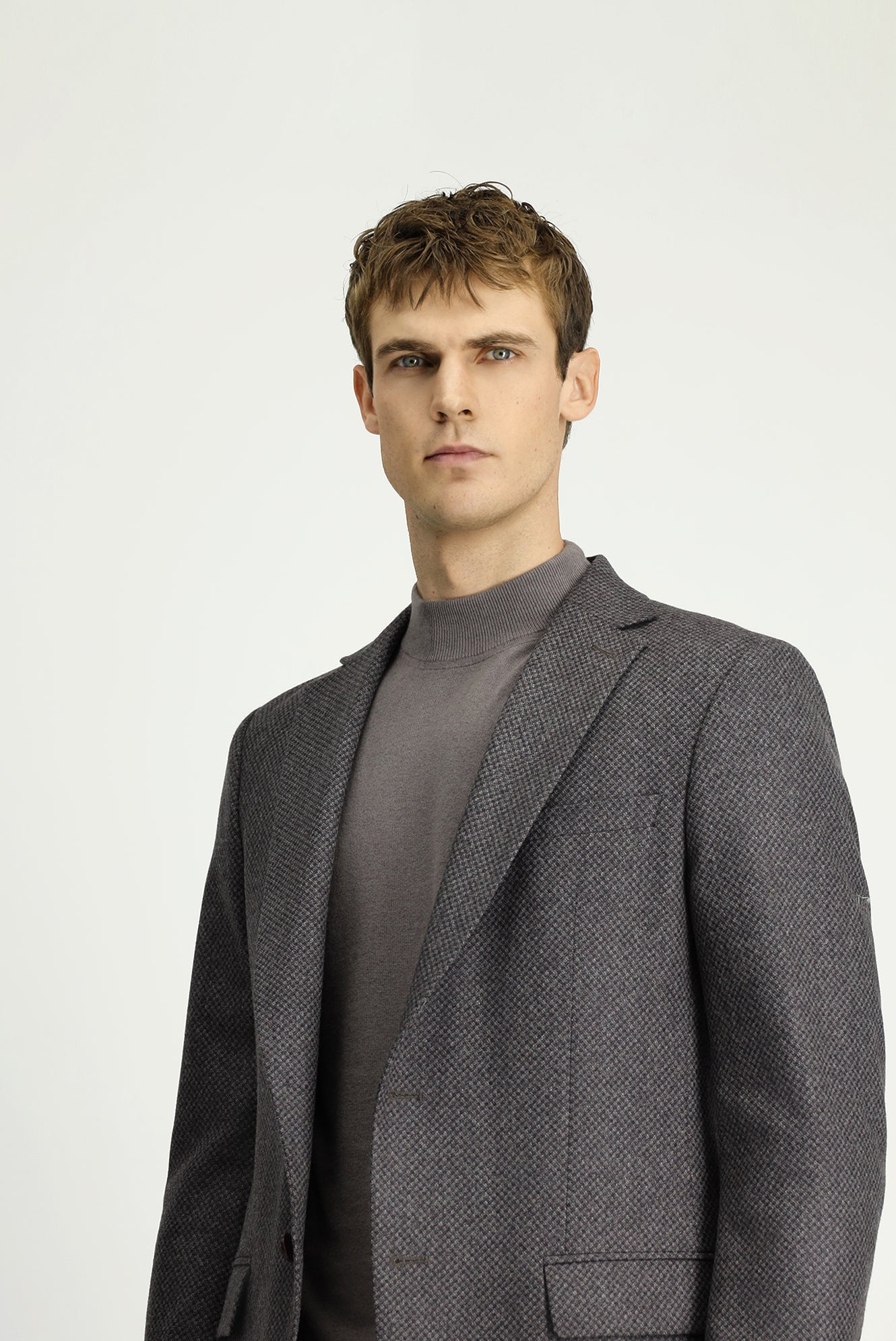 Orta Kahve Muscle Fit Yünlü Klasik Desenli Ceket