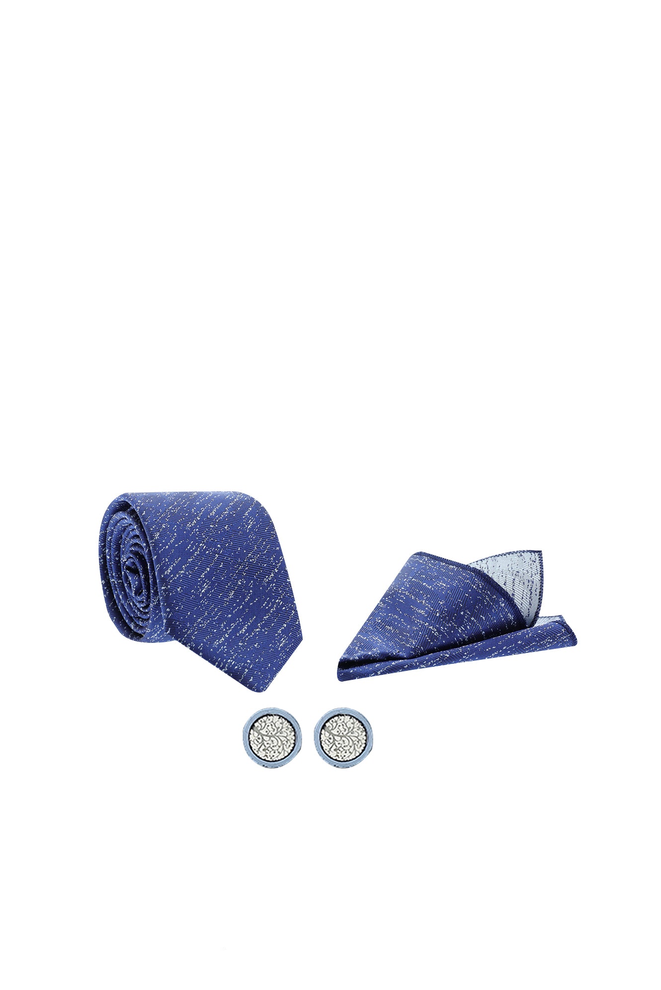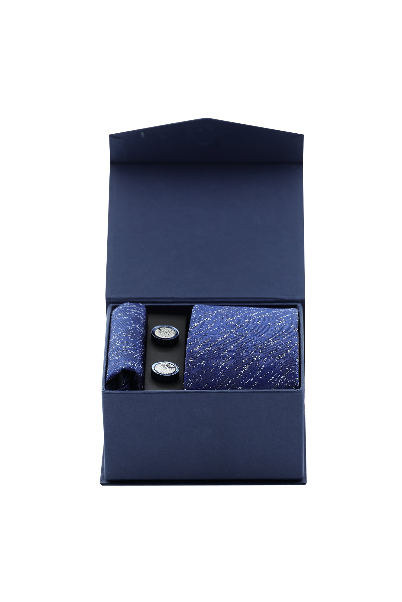 Orta Lacivert 3'lü Kravat Mendil Kol Düğmesi Seti