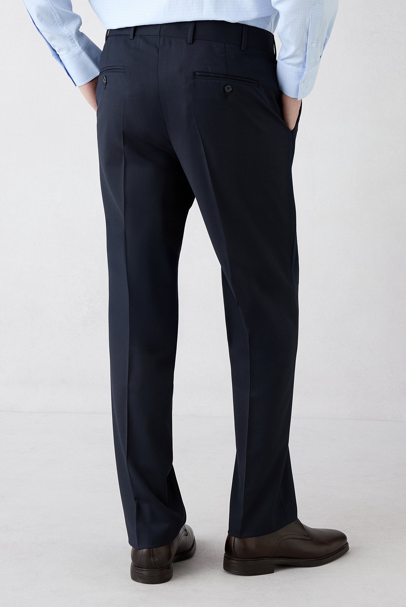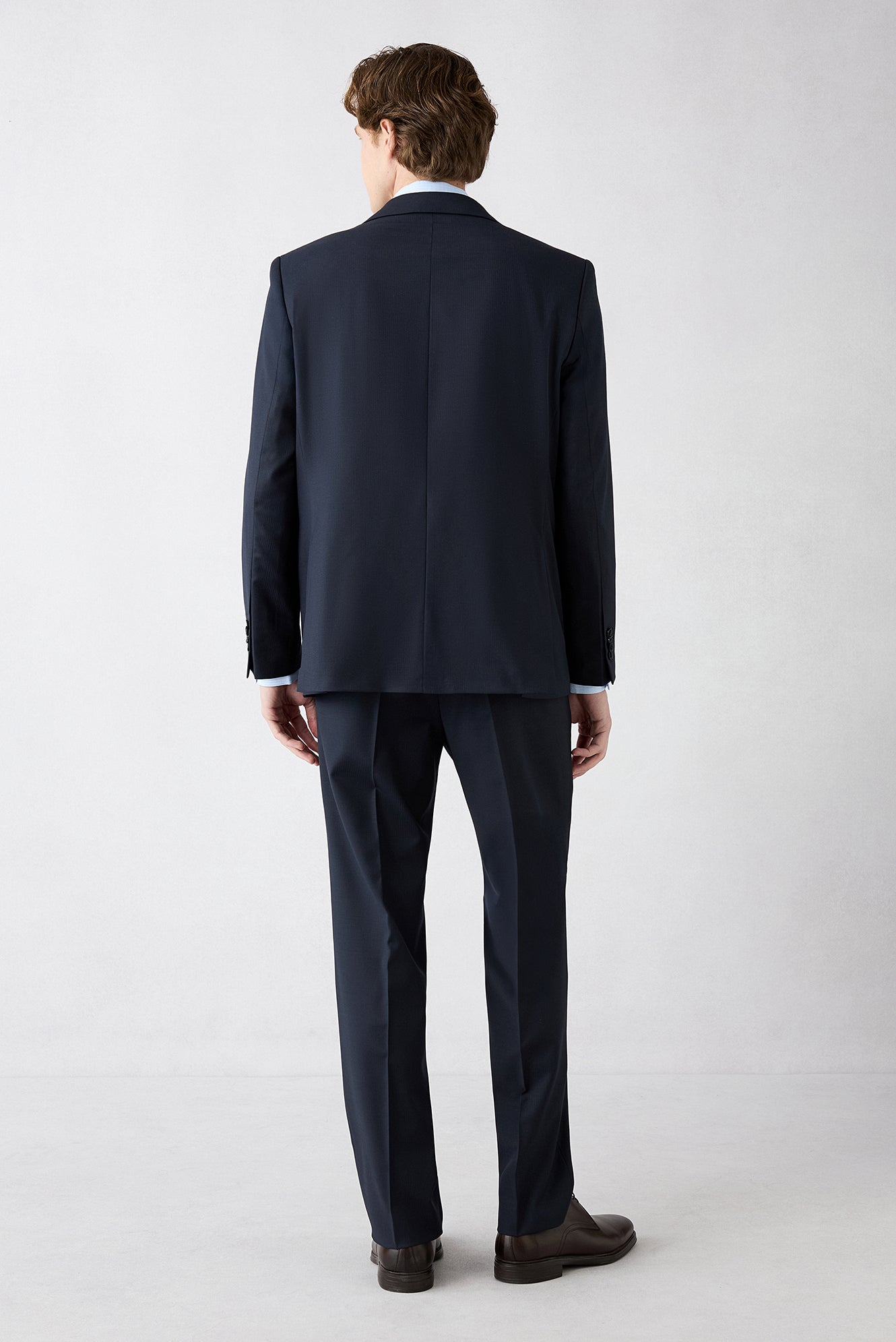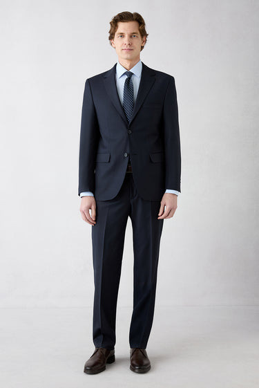Orta Lacivert 6 Drop Regular Fit Standart Kesim Yünlü Çizgili Mono Yaka Takım Elbise