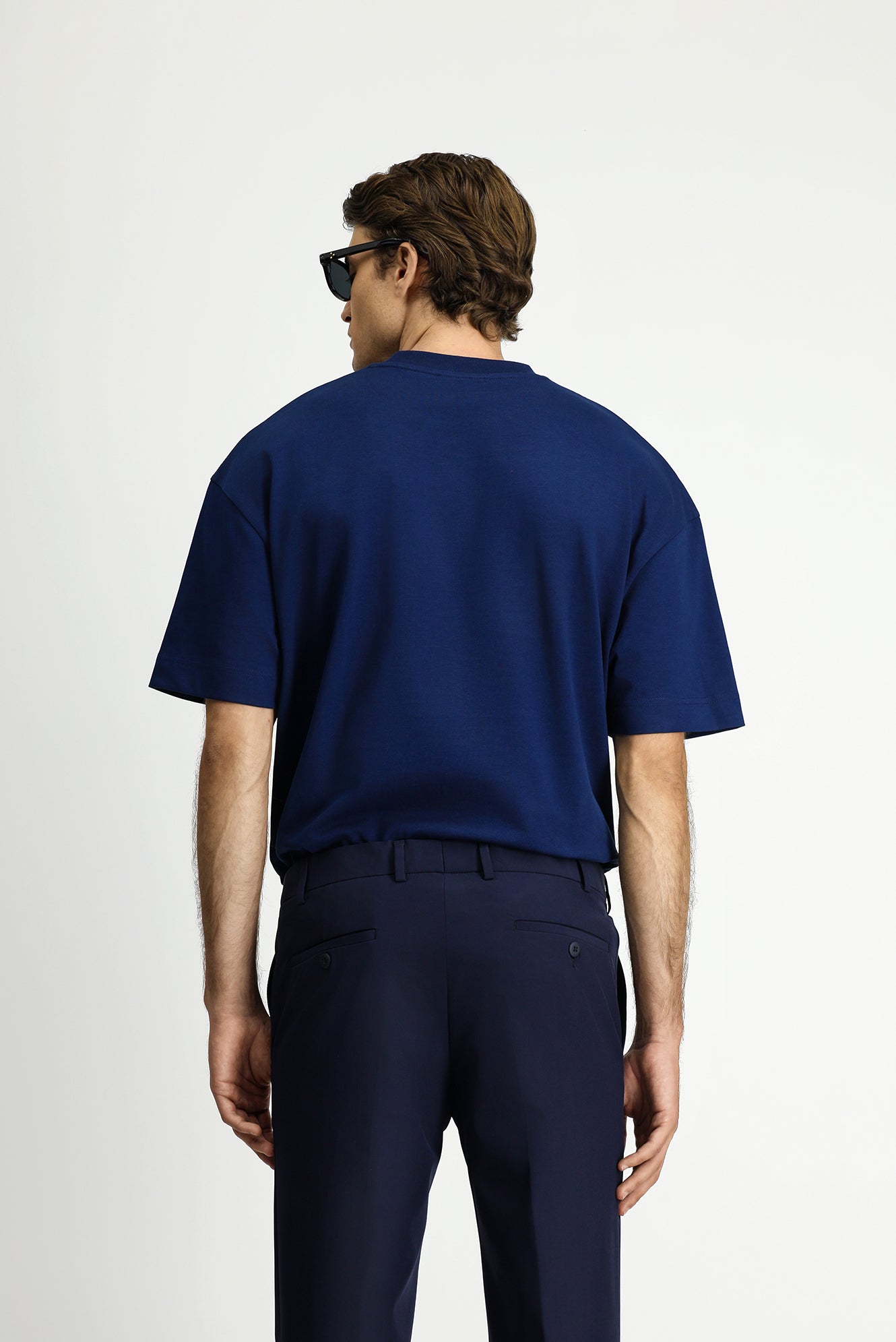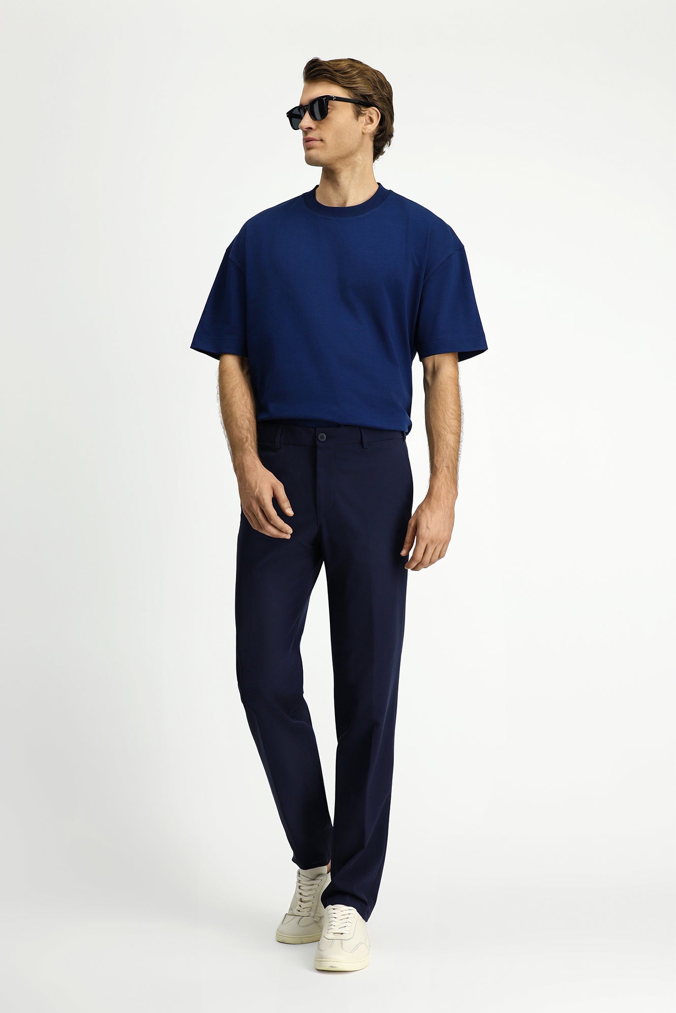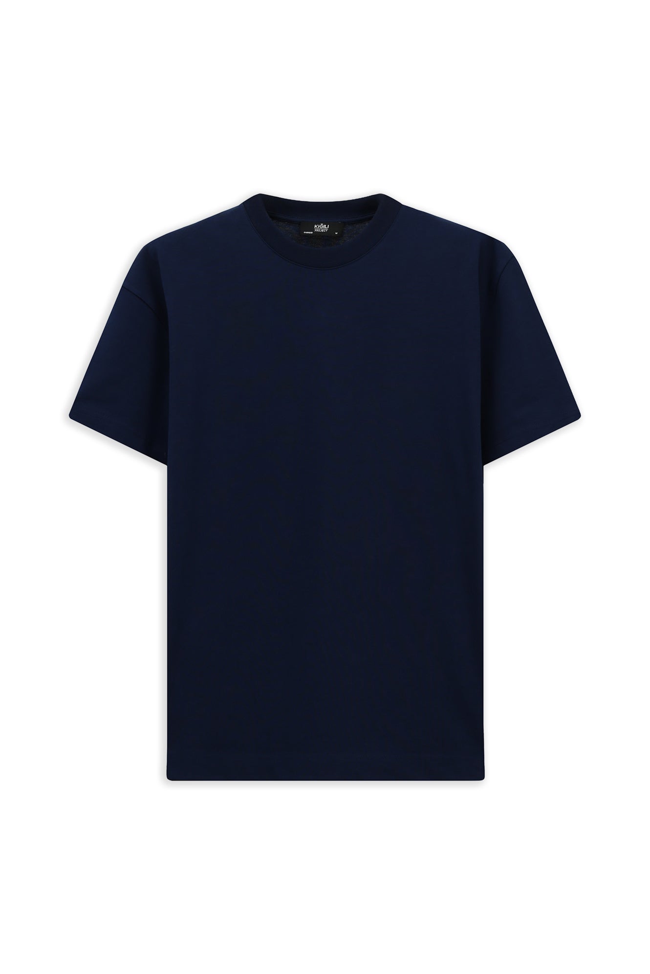 Orta Lacivert Bisiklet Yaka Oversize Ekstra Rahat Kesim Pamuk Tişört