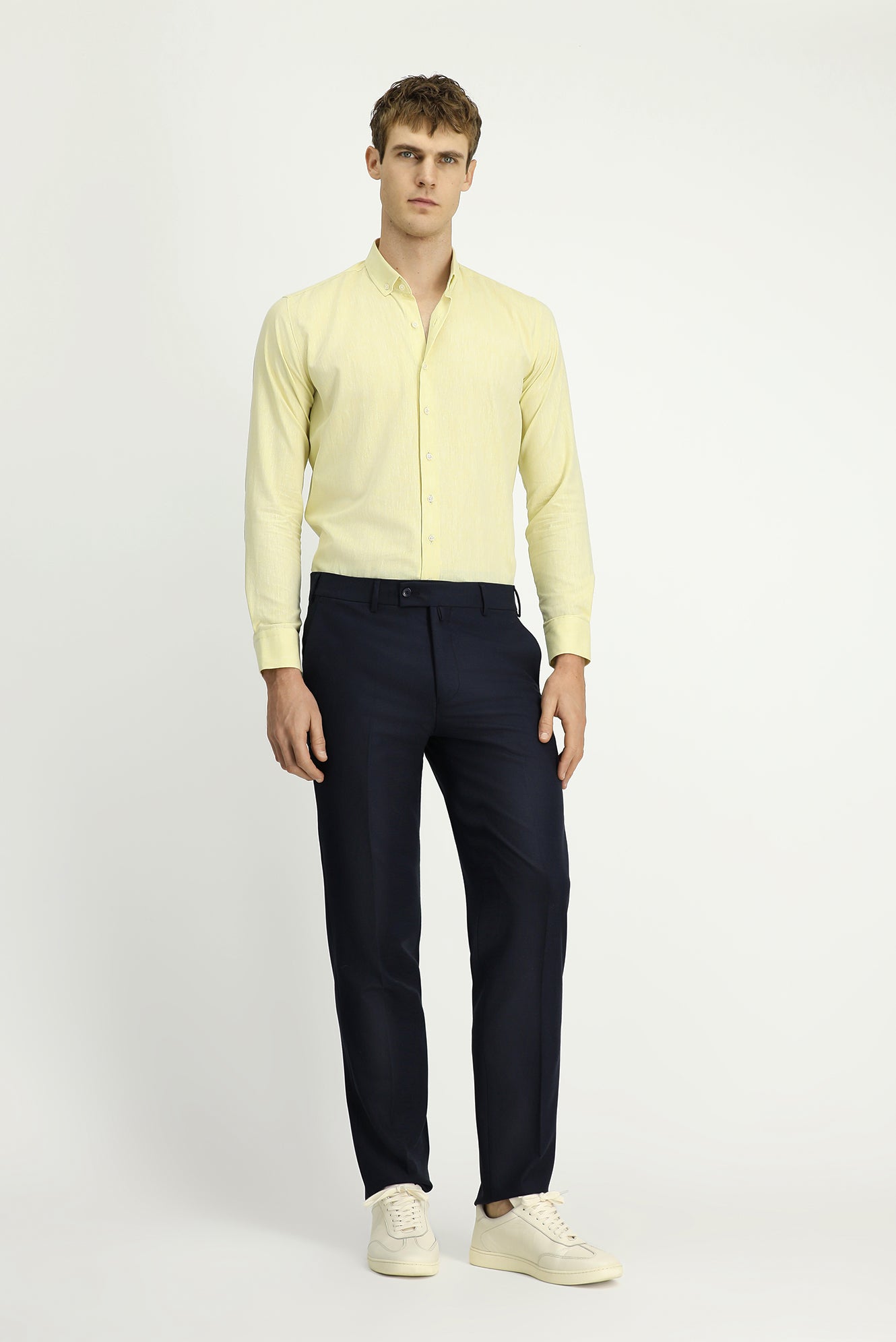 Orta Lacivert Relaxed Fit Rahat Kesim Likralı Klasik Kumaş Pantolon