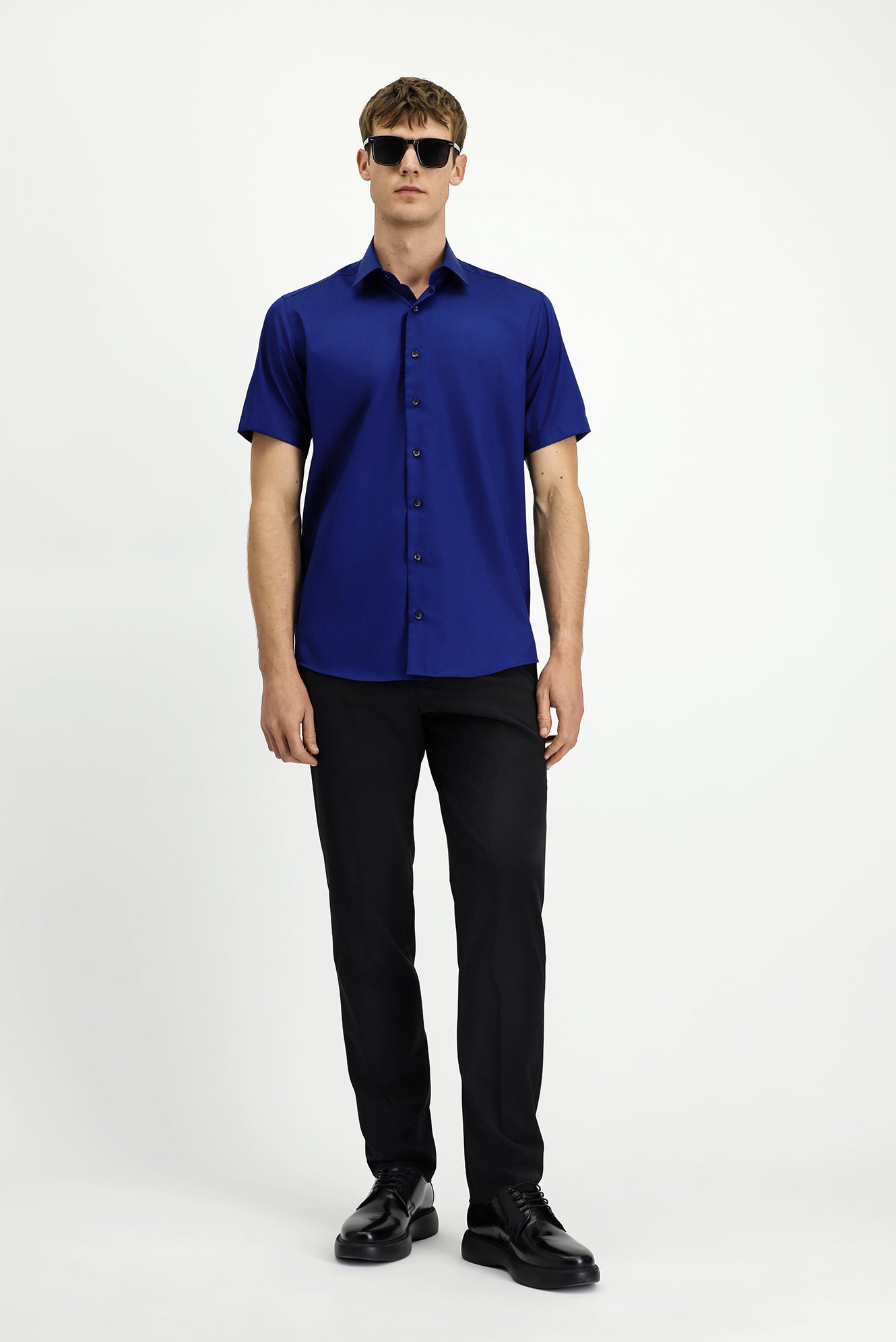 Orta Lacivert Kısa Kol Regular Fit Non Iron Pamuklu Gömlek