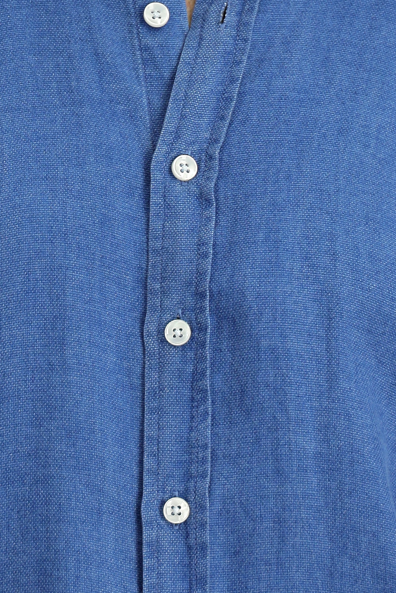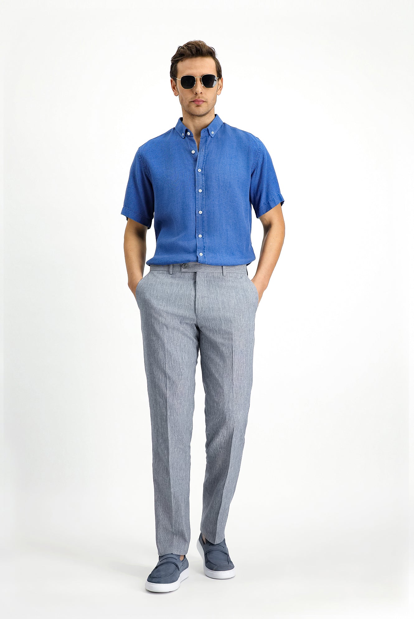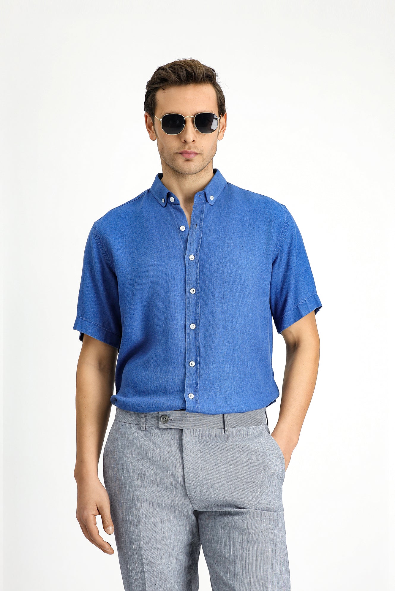 Orta Lacivert Kısa Kol Regular Fit Spor Düğmeli Yaka Denim Görünümlü Gömlek