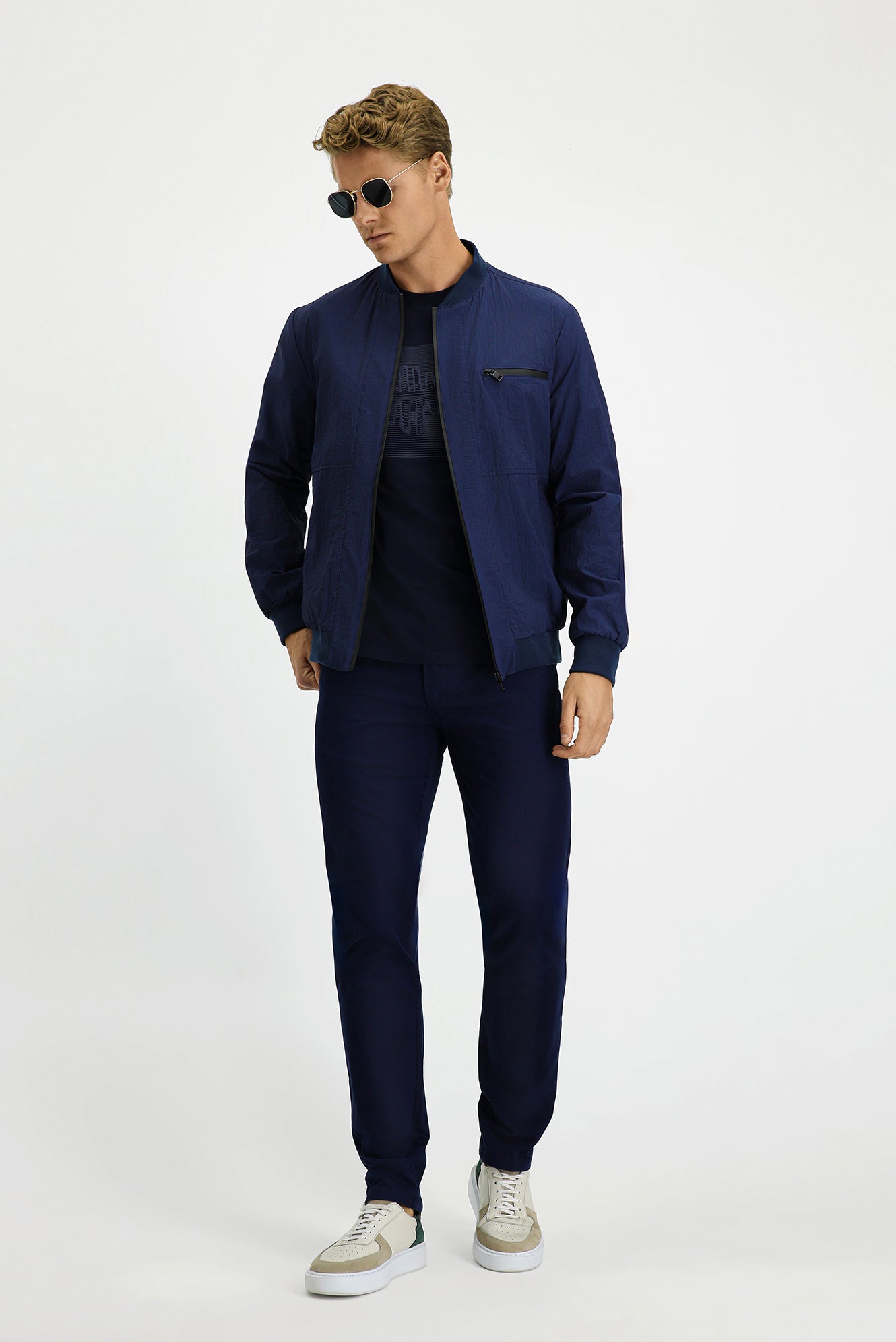 Orta Lacivert Mevsimlik Spor Bomber Ceket Mont