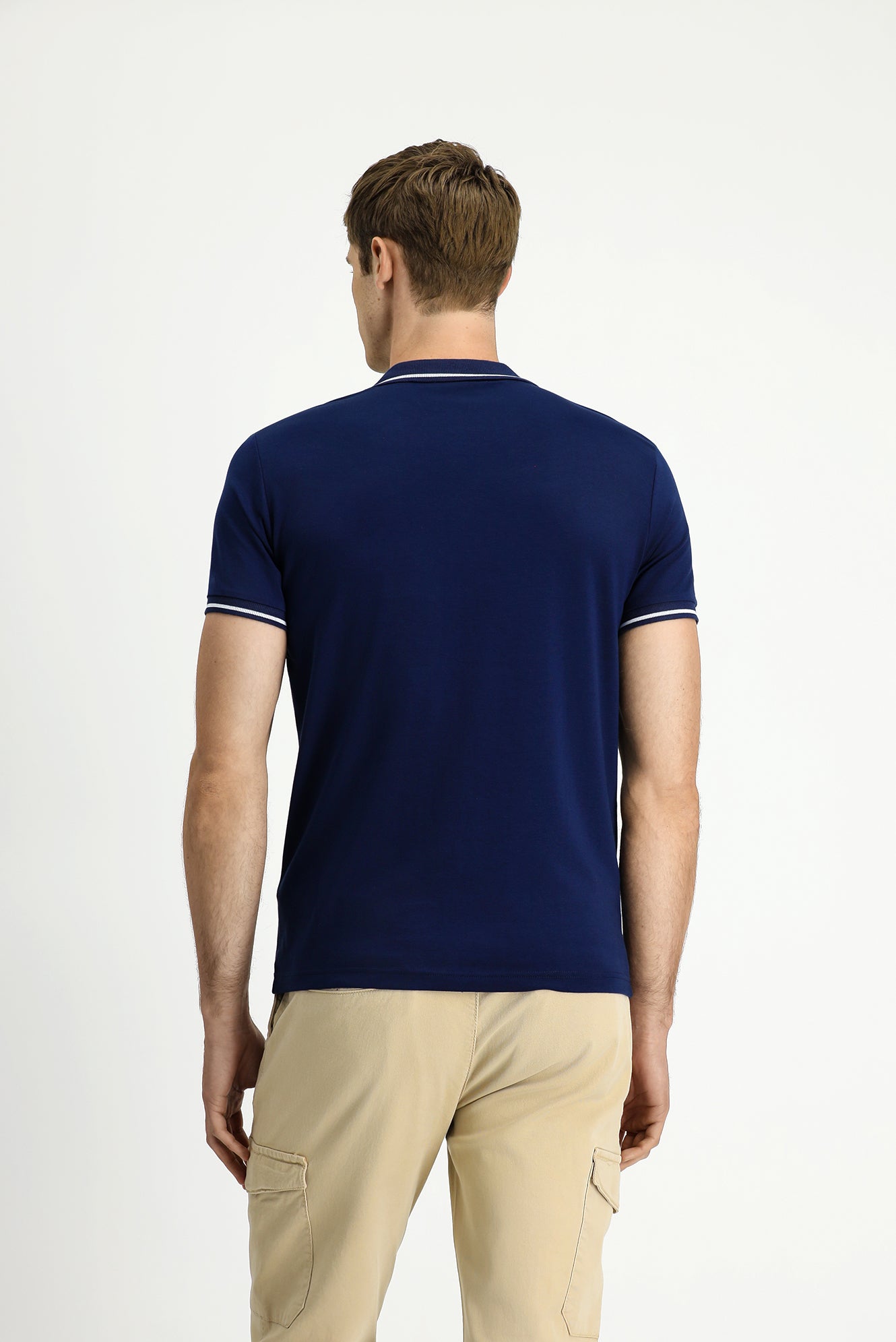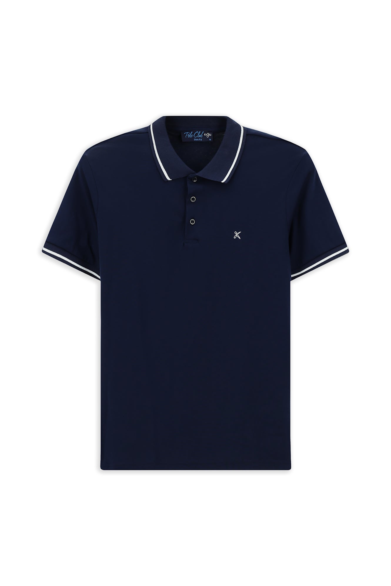 Orta Lacivert Polo Yaka Slim Fit Yumuşak Dokulu Pamuklu Likralı Esnek Tişört