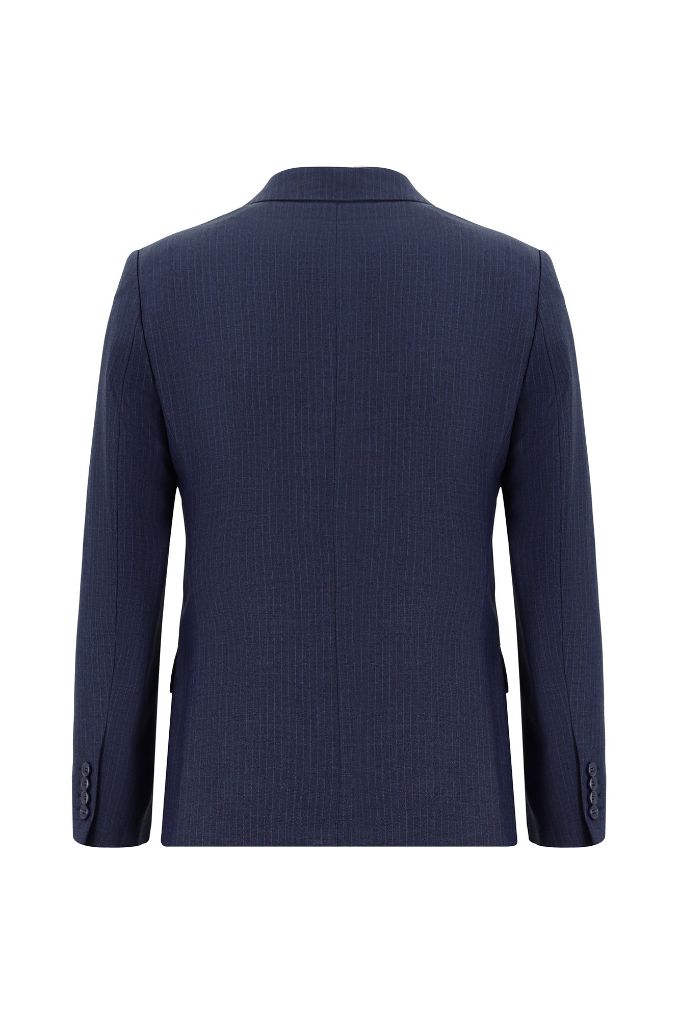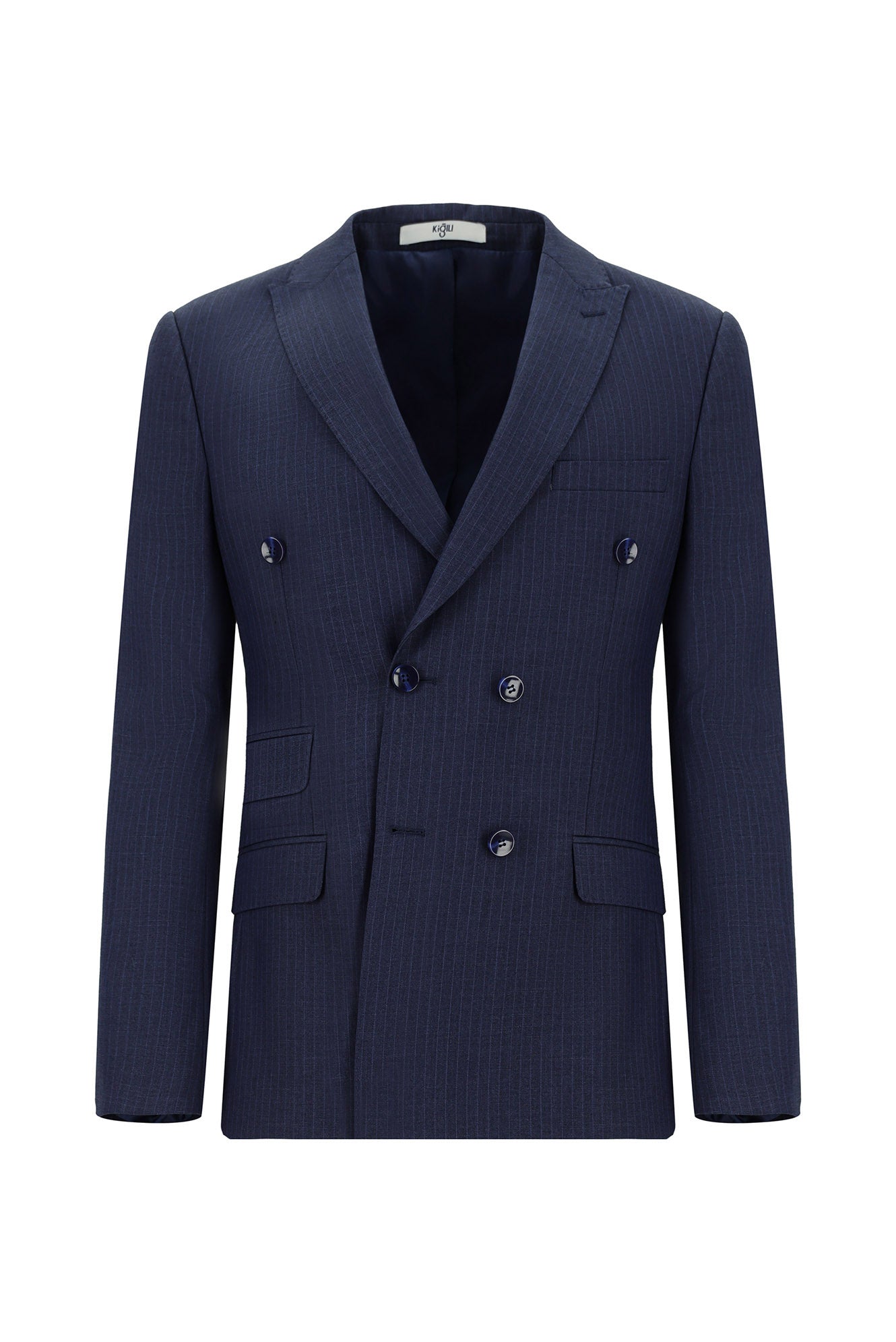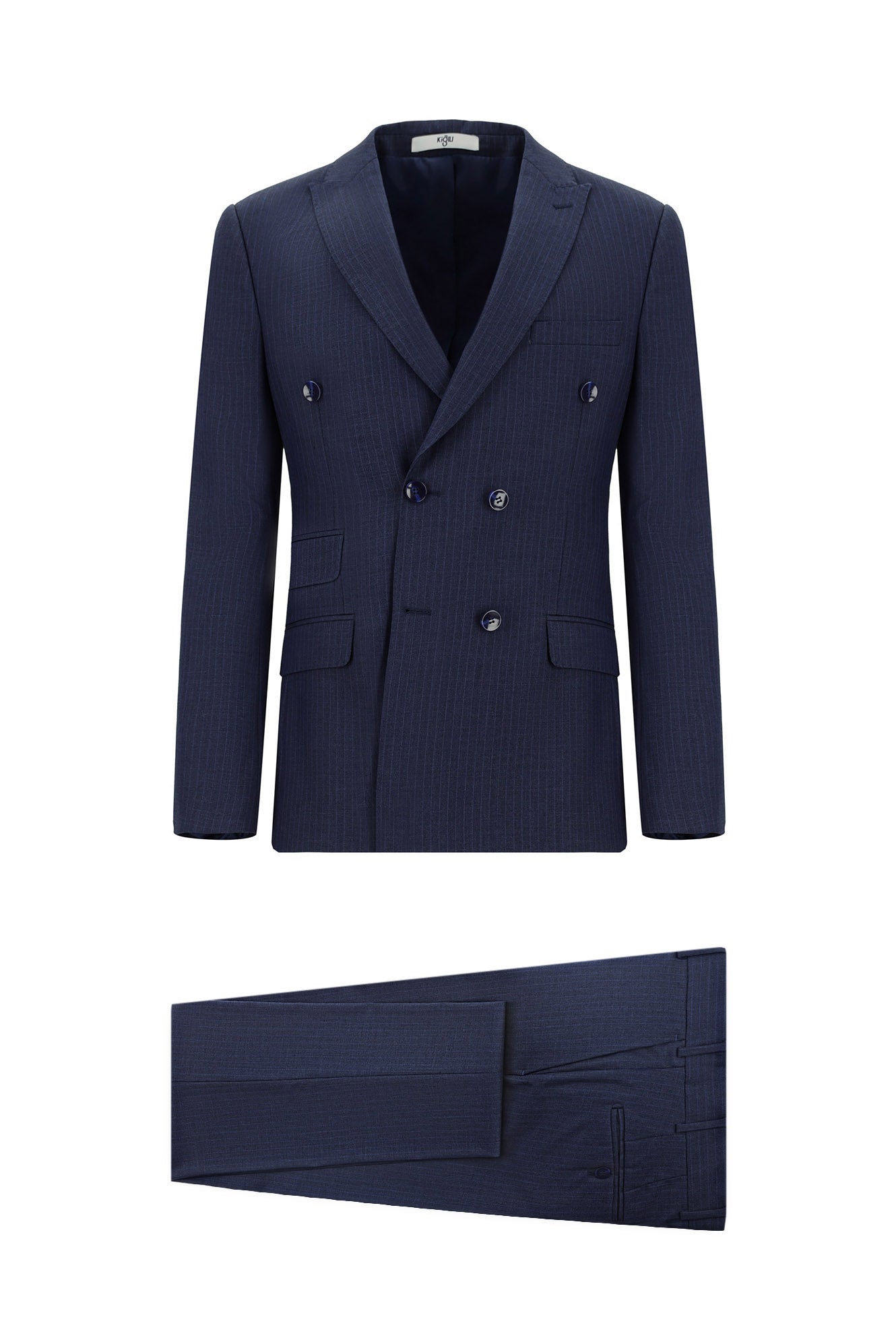 Orta Lacivert 6 Drop Regular Fit Standart Kesim Çizgili Kruvaze Takım Elbise