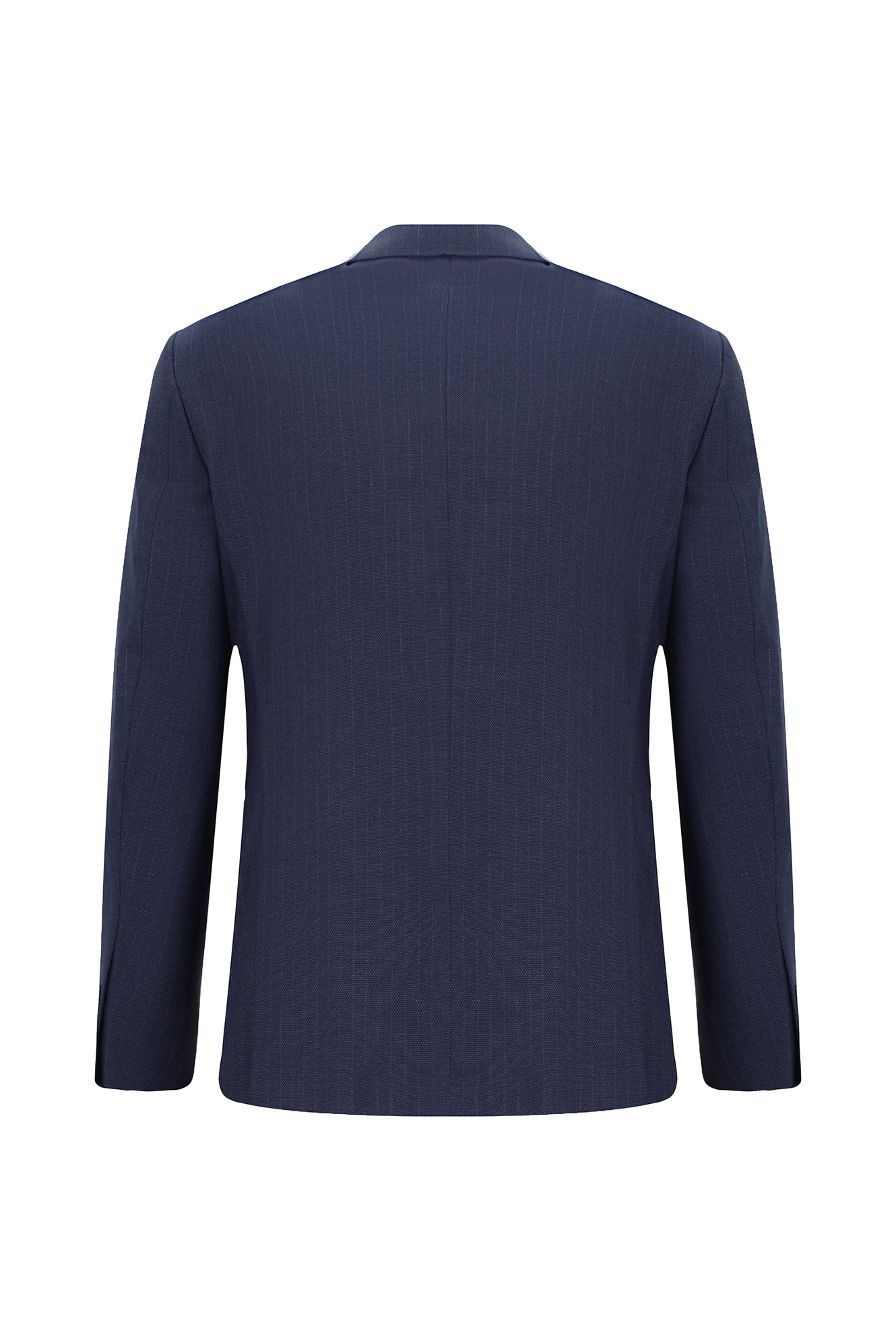 Orta Lacivert 6 Drop Regular Fit Standart Kesim Çizgili Kruvaze Takım Elbise