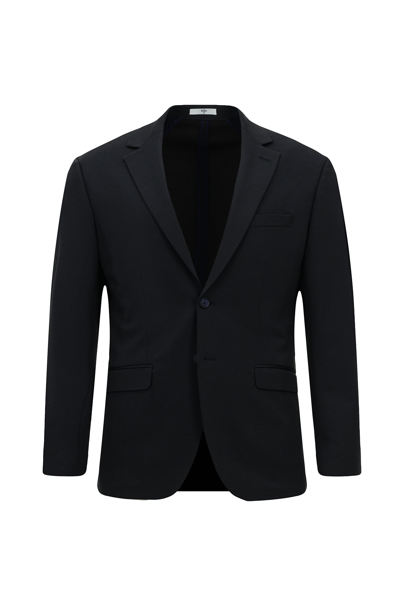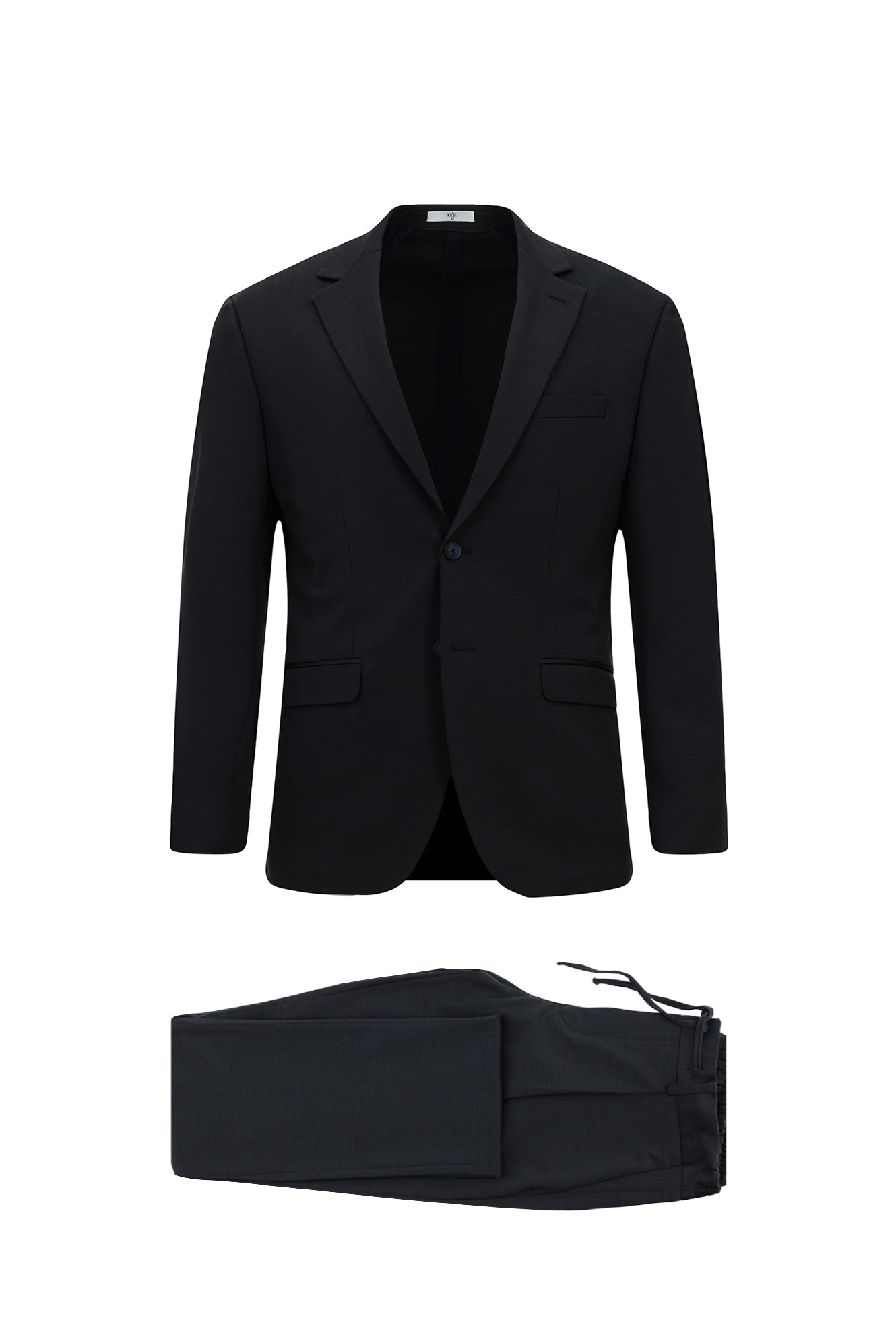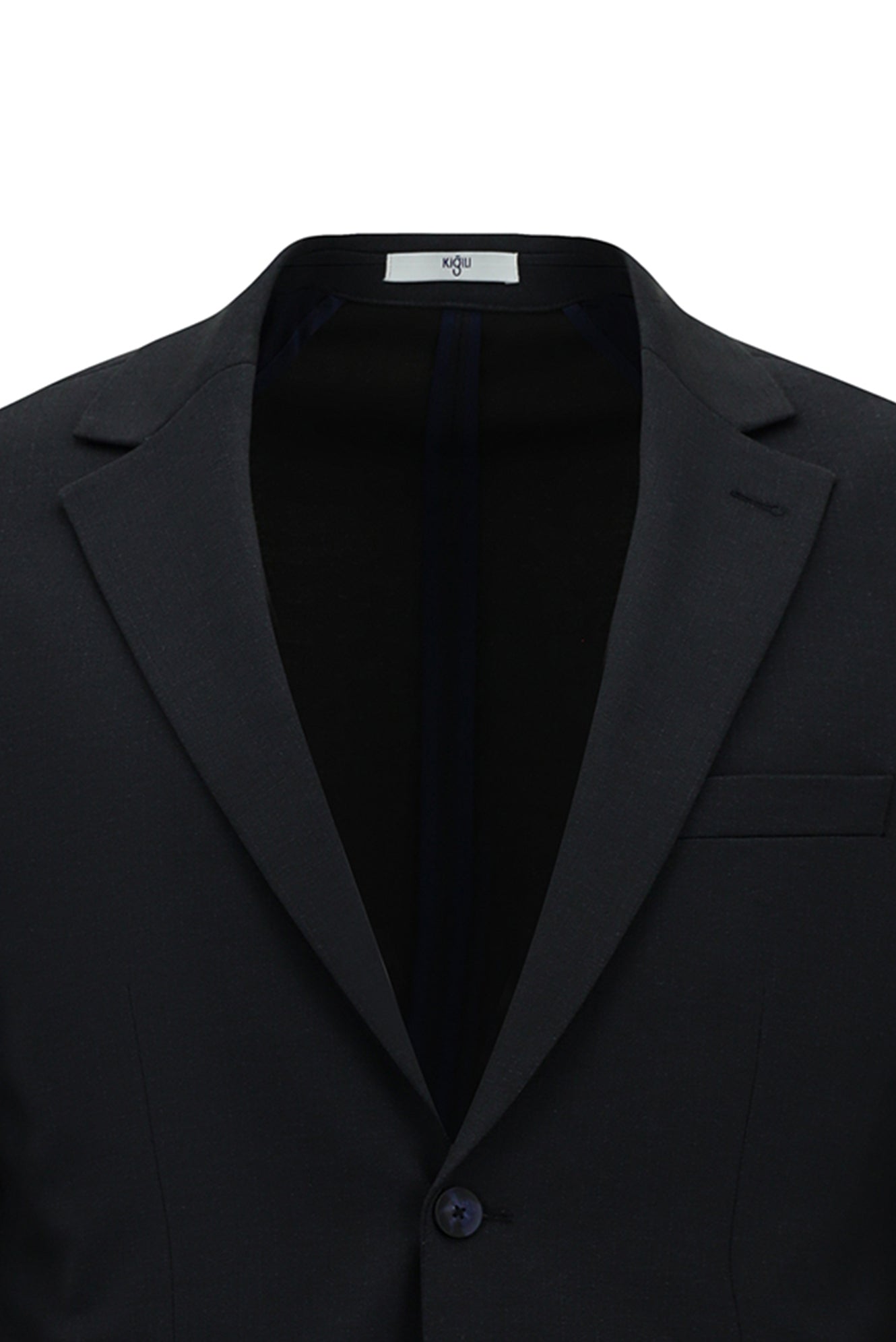 Orta Lacivert 8 Drop Long Slim Fit Uzun Dar Kesim Mono Yaka Beli Lastikli İpli Örme Likralı Esnek Çizgili Yarım Astar Klasik Takım Elbise