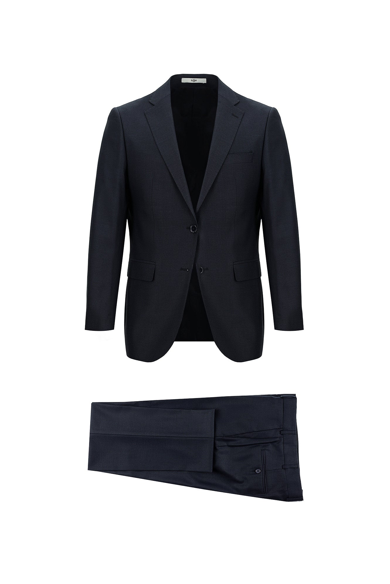 Orta Lacivert Regular Fit Desenli Takım Elbise