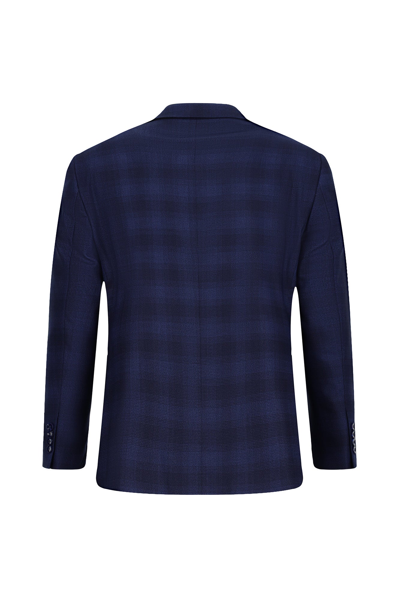 Orta Lacivert 6 Drop Regular Fit Standart Kesim Ekose Takım Elbise