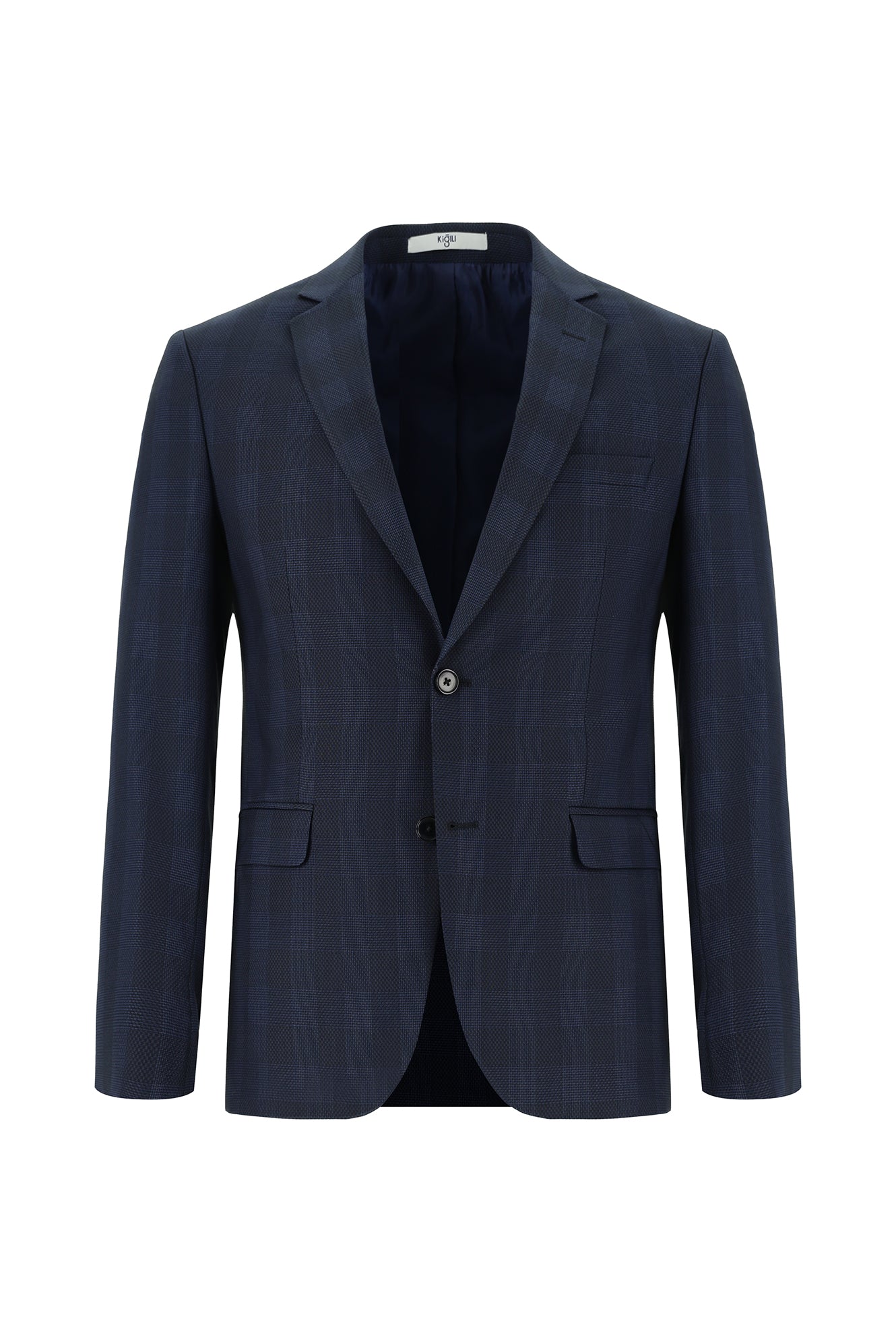 Orta Lacivert Regular Fit Kombinli Ekose Takım Elbise