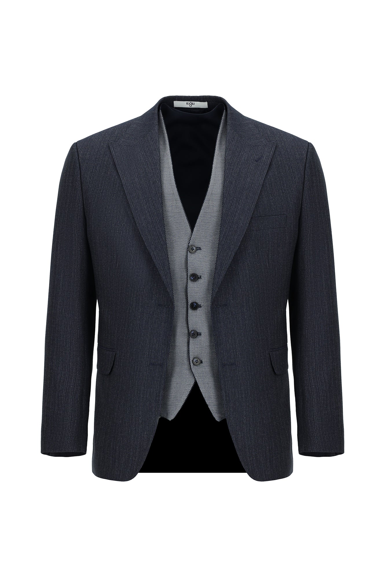 Orta Lacivert 6 Drop Regular Fit Standart Kesim Kombinli Yelekli Takım Elbise