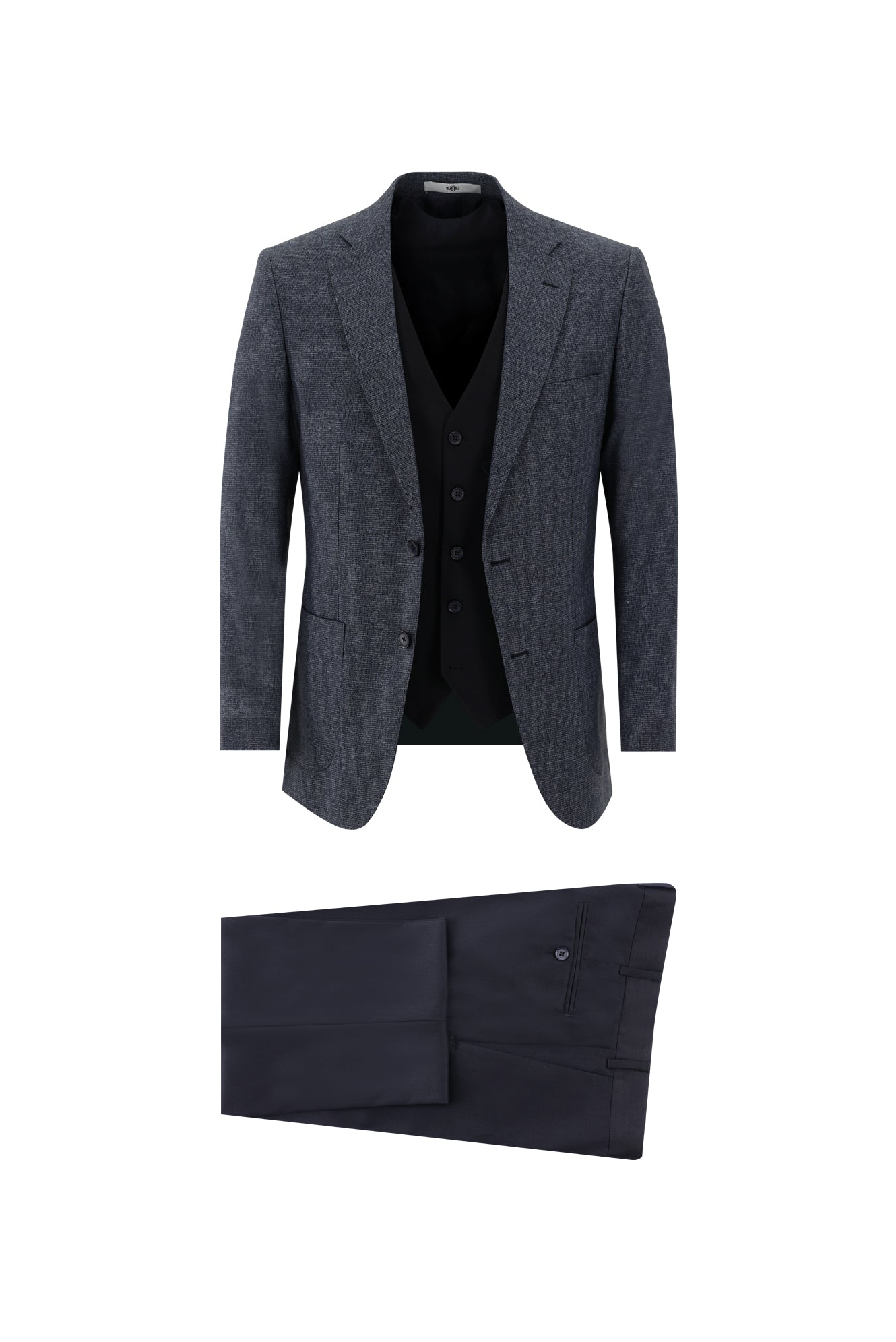 Erkek modasının asla eskimeyen parçaları yelekli takım elbiseler, Kiğılı dokunuşu ile hayat buluyor. Ceketinizi çıkardığınızda dahi şıklığınızdan ödün verdirmeyen slim fit yelekli takım elbiseler, şık ofis kombinlerinin ve özel gecelerin yıllardır değişmeyen adresi olmaya devam ediyor. İster yelekli ister yeleksiz olarak kullanabileceğiniz takım elbiseler size farklı günlerde, farklı tarzda kombinlenebilme rahatlığı sağlıyor.