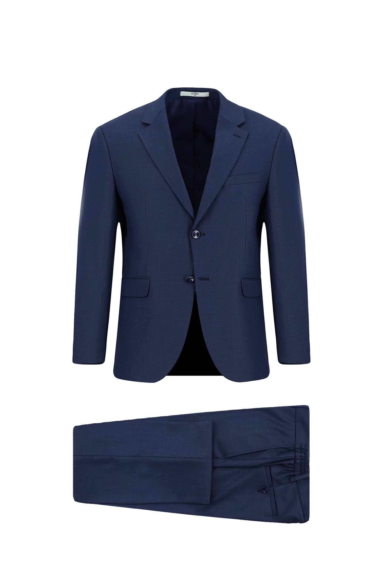 Orta Lacivert 4 Drop Relaxed Fit Rahat Kesim Desenli Beli Lastikli Takım Elbise