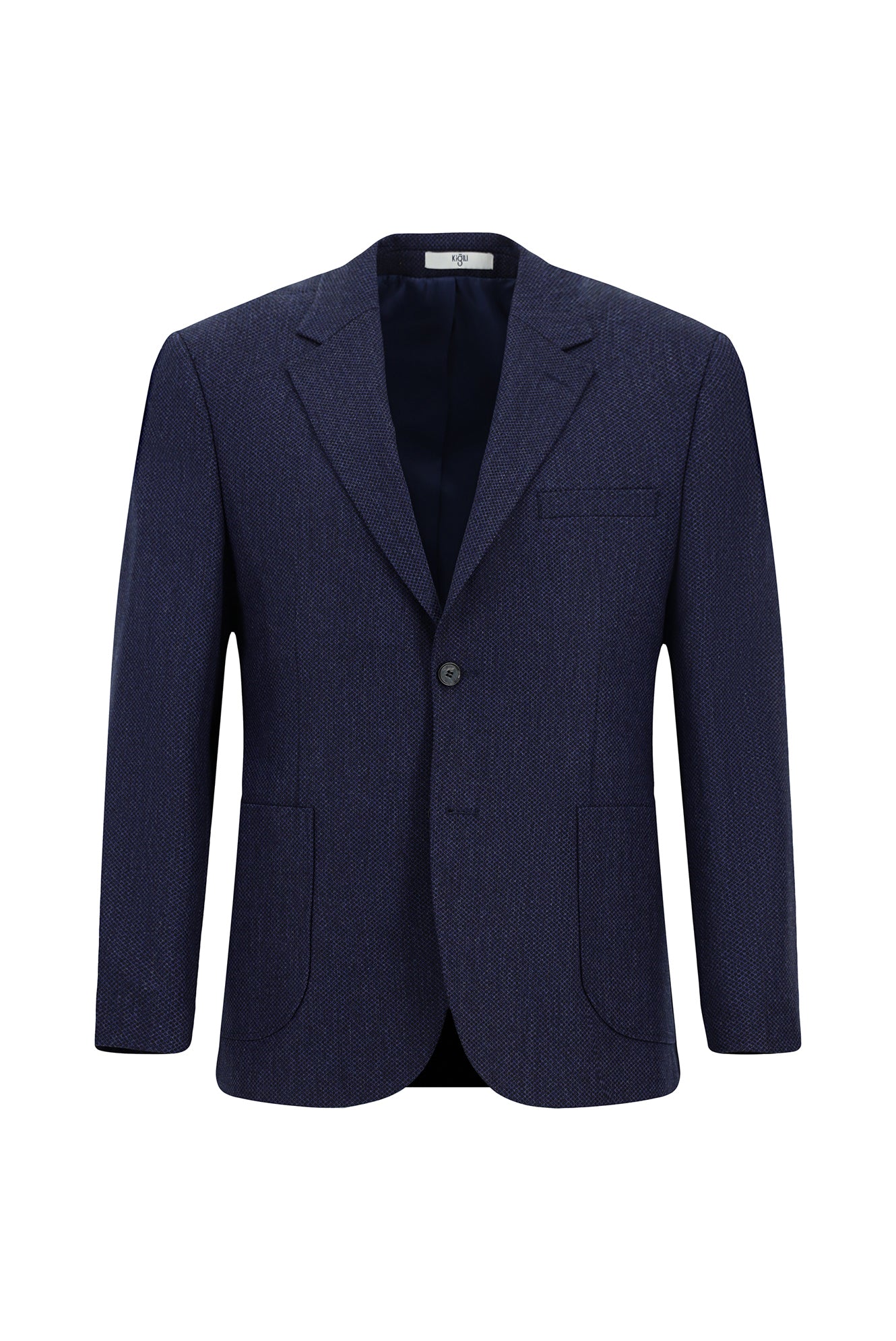 Orta Lacivert Relaxed Fit Rahat Kesim Desenli Yünlü Ceket