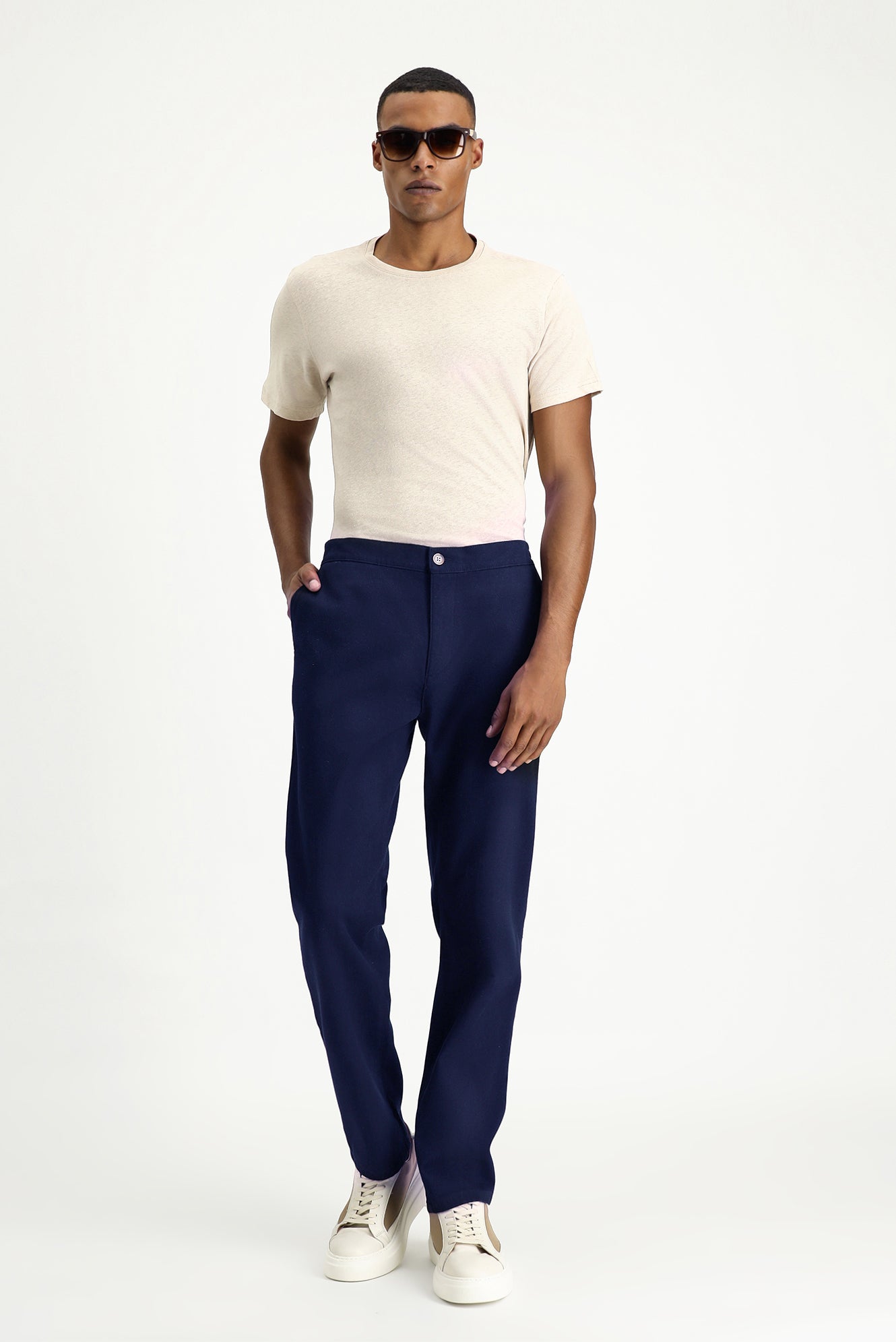 Orta Lacivert Regular Fit Likralı Kanvas / Chino Pantolon