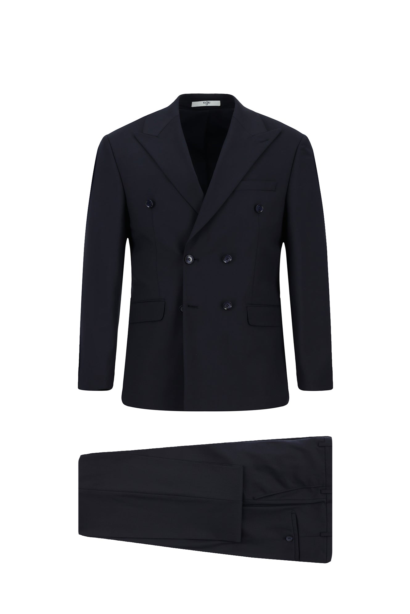 Orta Lacivert Regular Fit Çizgili Yünlü Kruvaze Takım Elbise