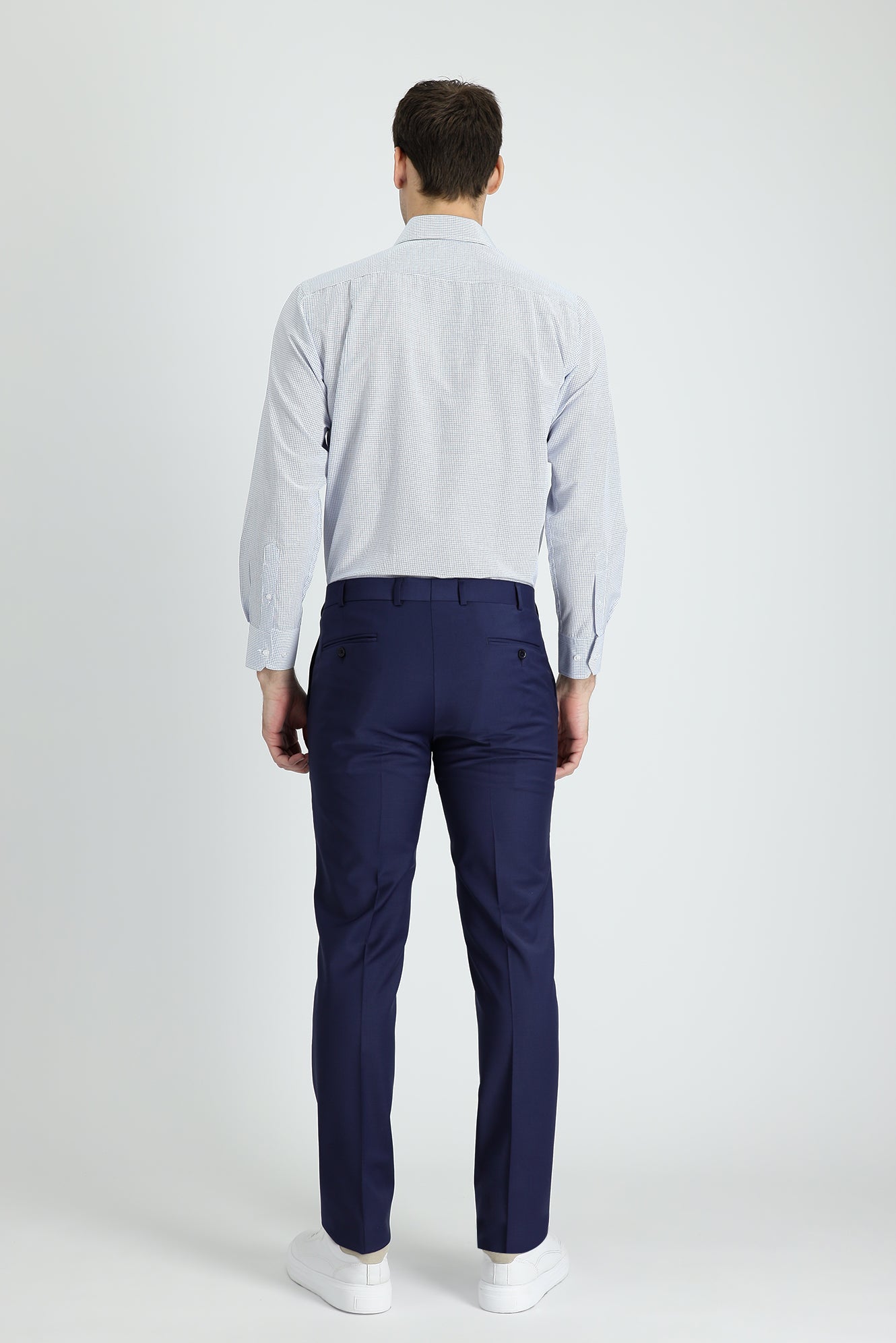 Orta Lacivert Regular Fit Yünlü Klasik Kumaş Pantolon