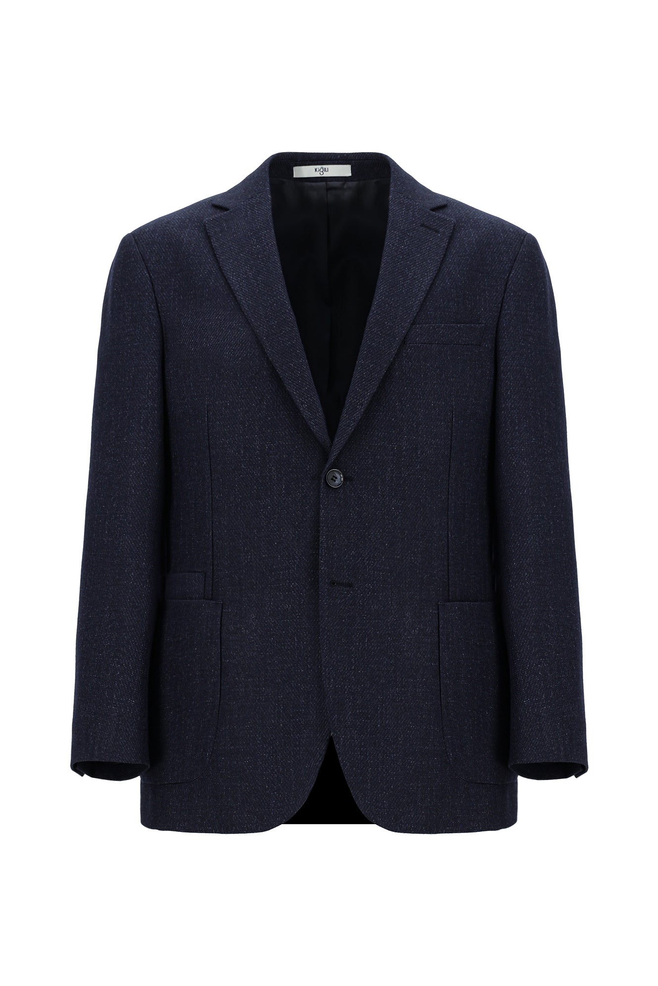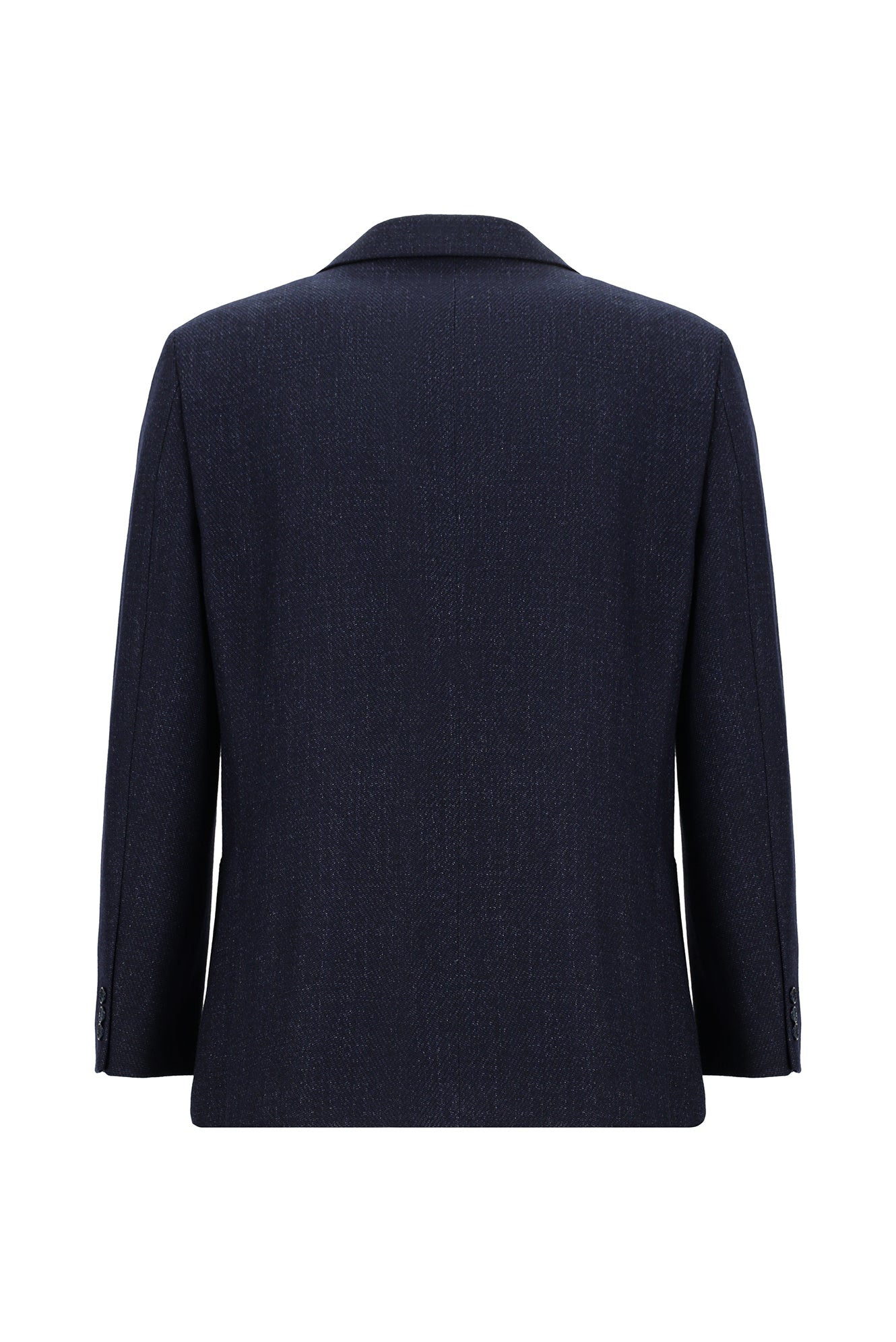 Orta Lacivert Relaxed Fit Rahat Kesim Desenli Yünlü Ceket