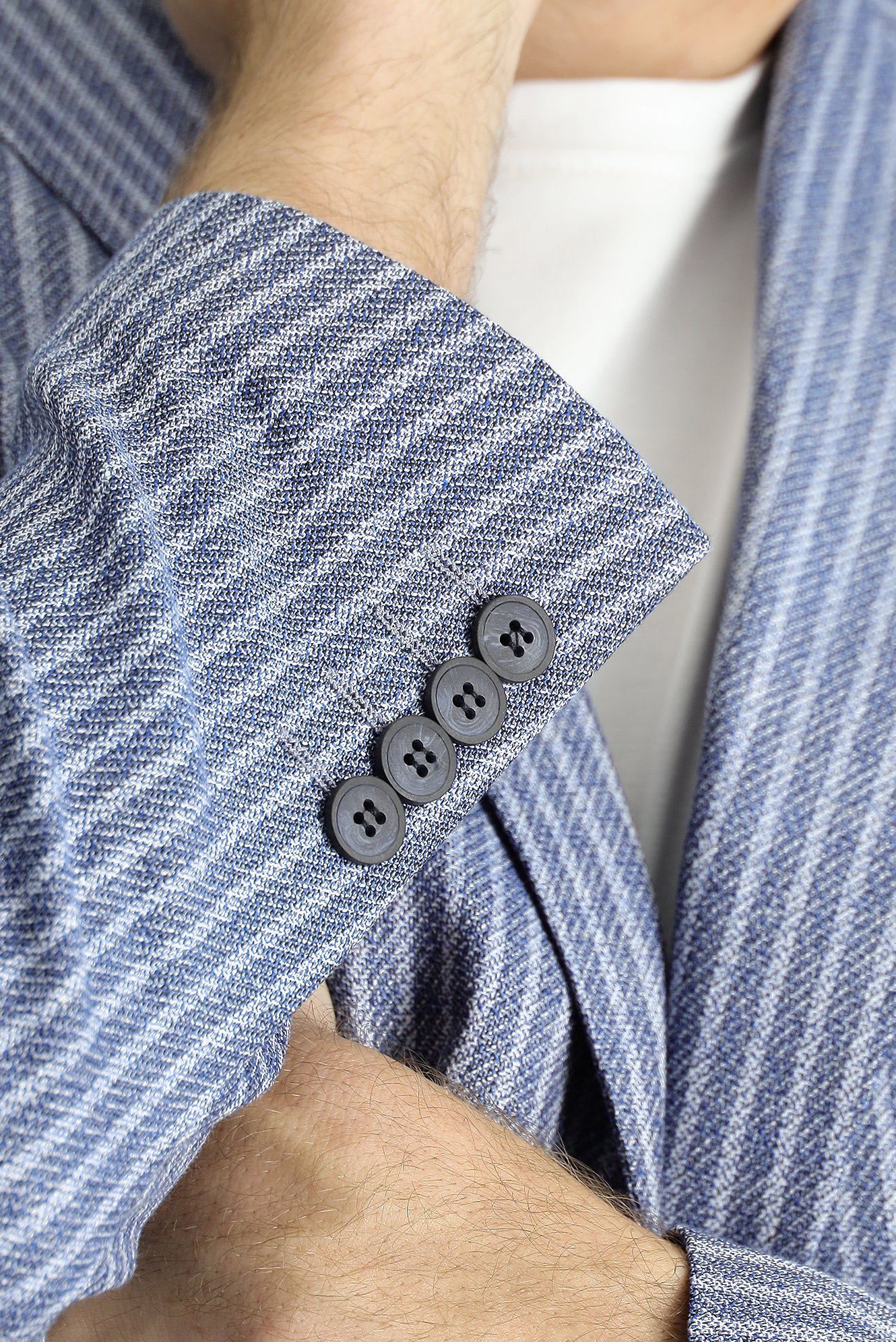 Orta Lacivert Slim Fit Dar Kesim Çizgili Keten Karışımlı Ceket