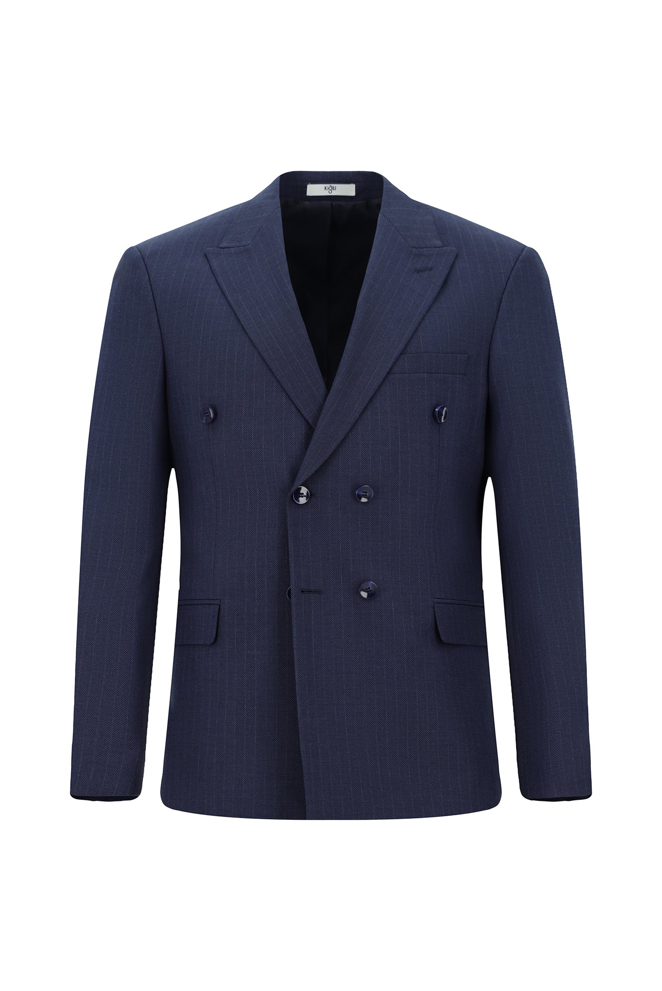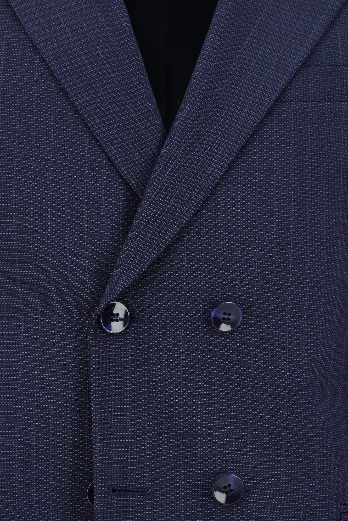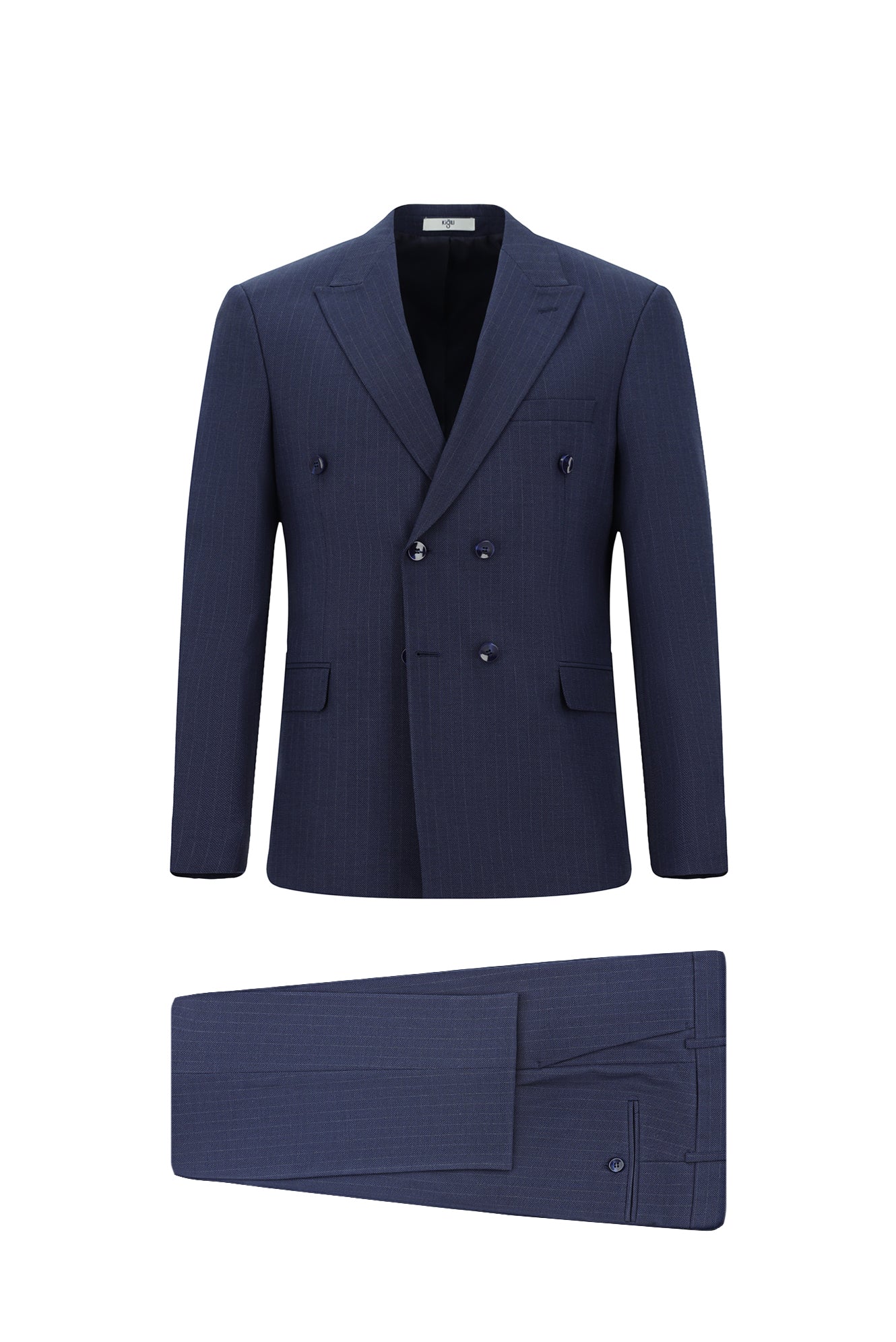 Orta Lacivert Slim Fit Dar Kesim Çizgili Kruvaze Takım Elbise