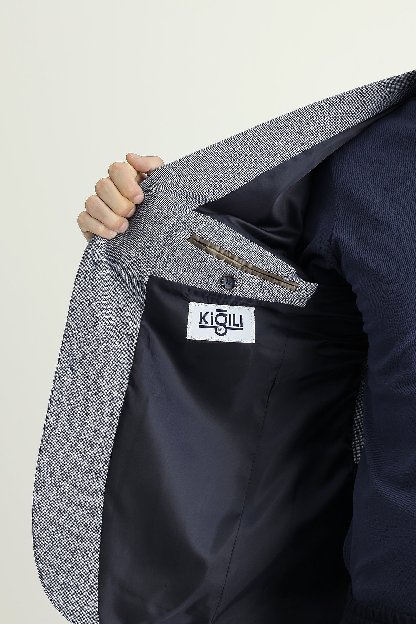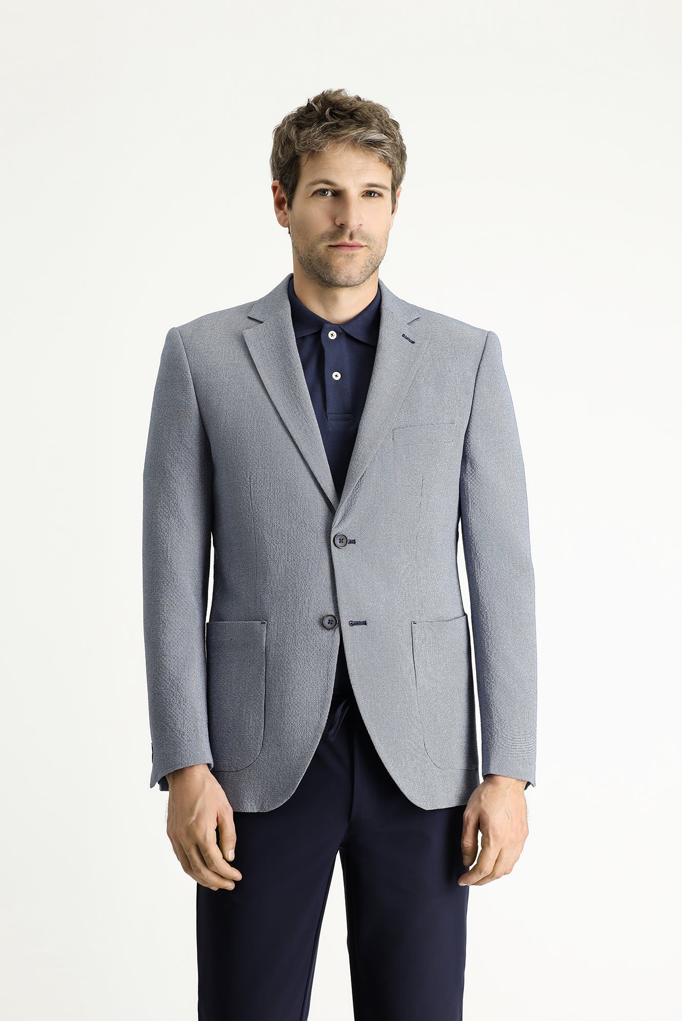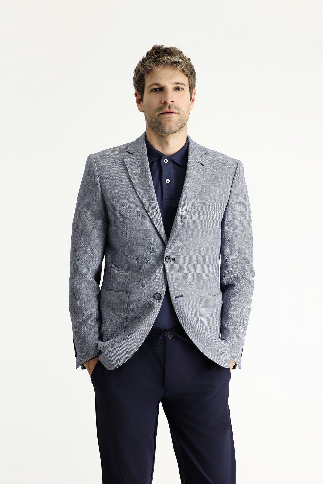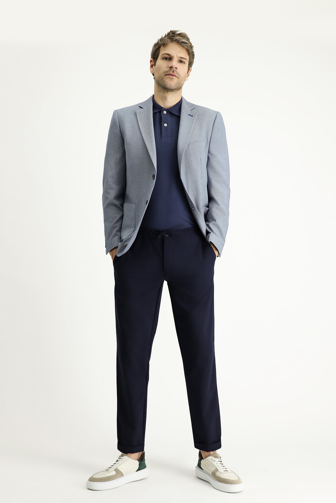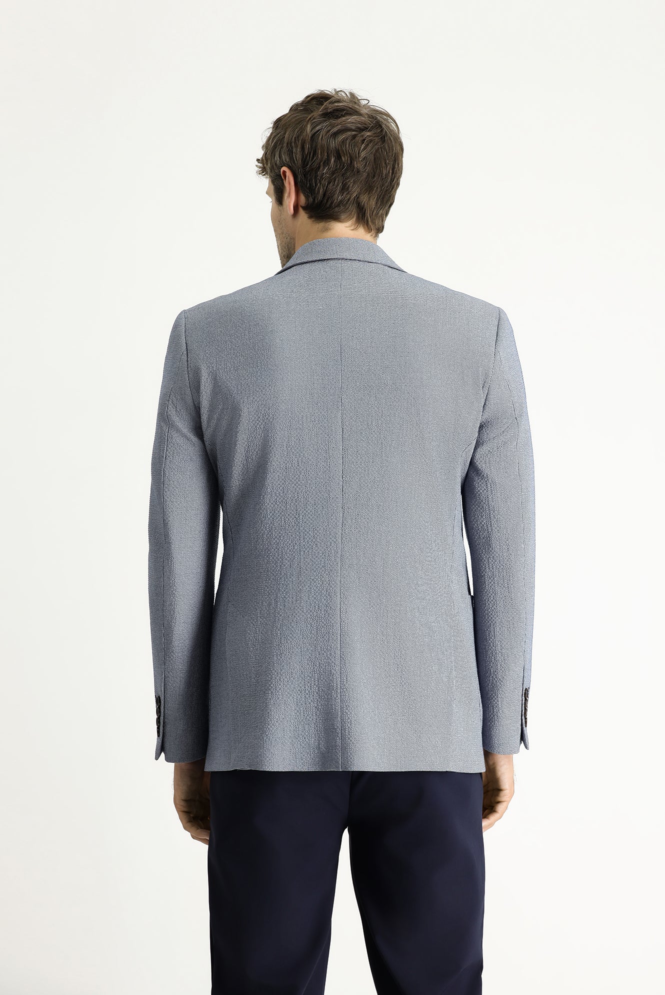 Orta Lacivert Slim Fit Dar Kesim Desenli Gofre Ceket