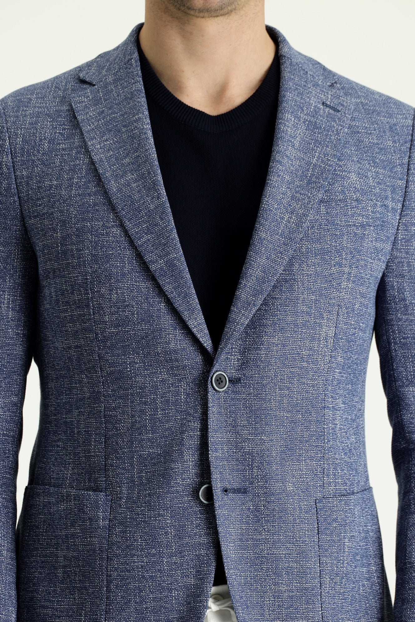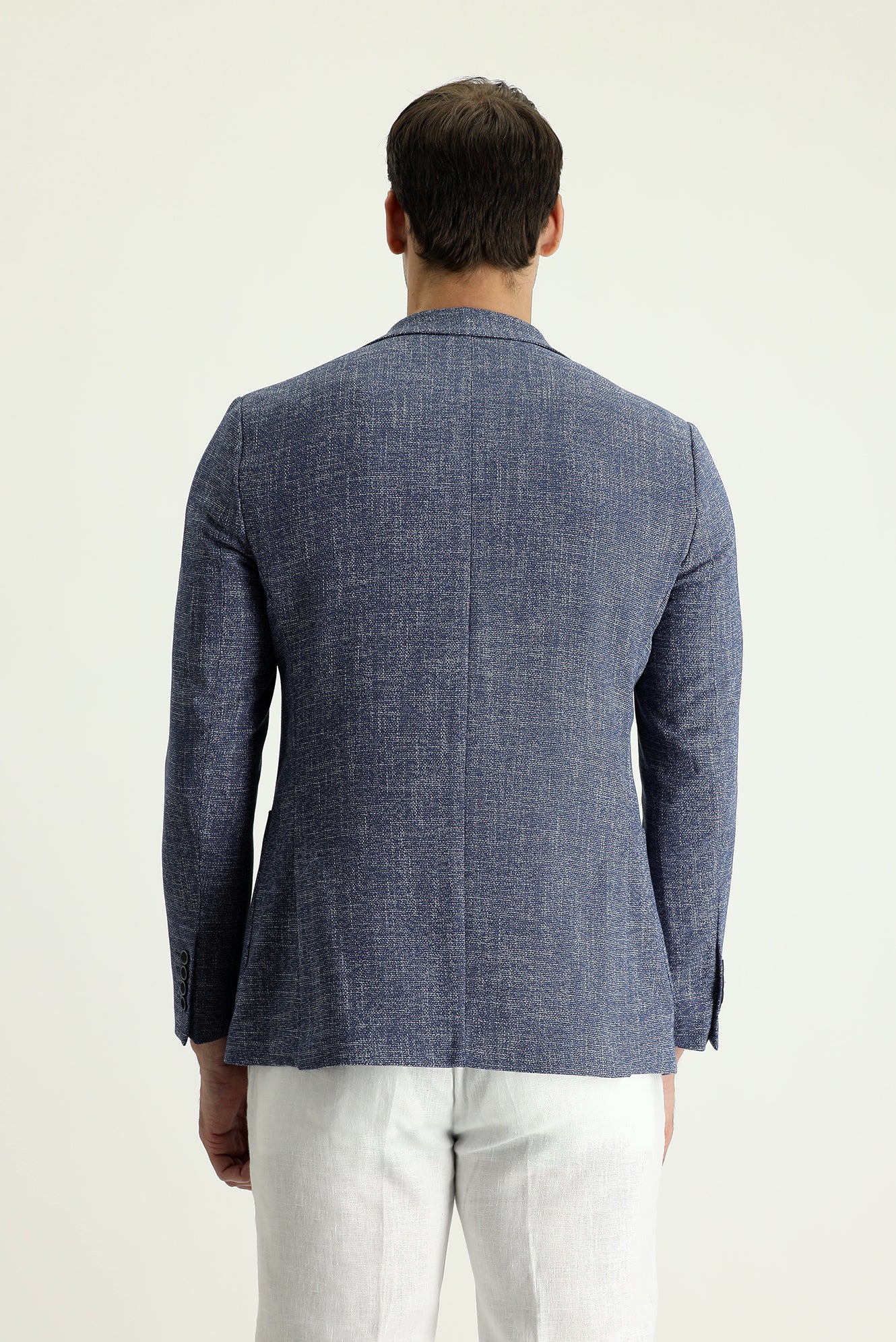 Orta Lacivert Slim Fit Dar Kesim Desenli Spor Ceket