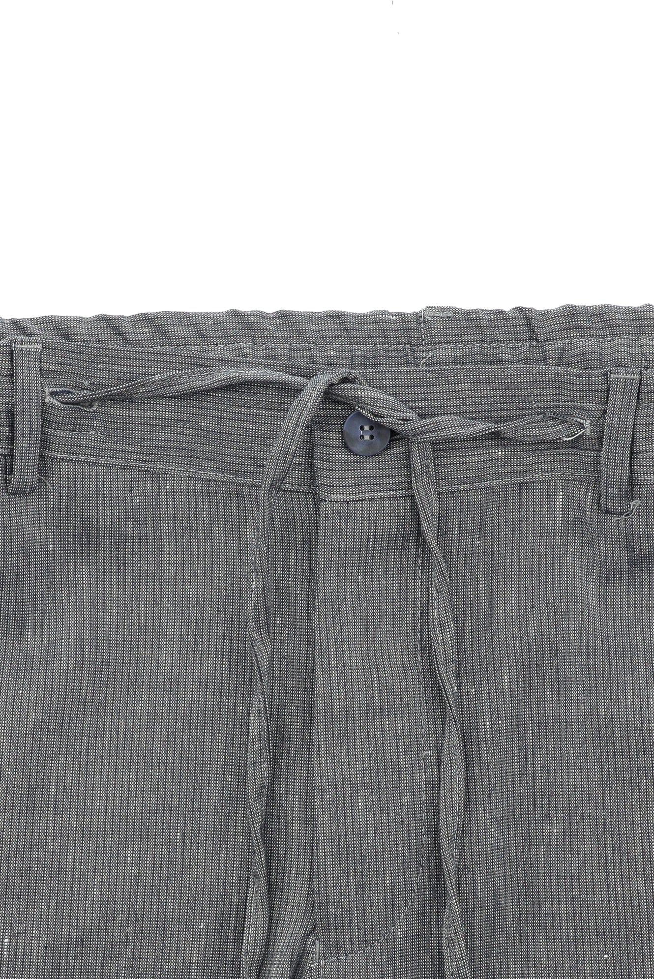 Orta Lacivert 7 Drop Slim Fit Dar Kesim Keten Karışımlı Beli Lastikli İpli Takım Elbise