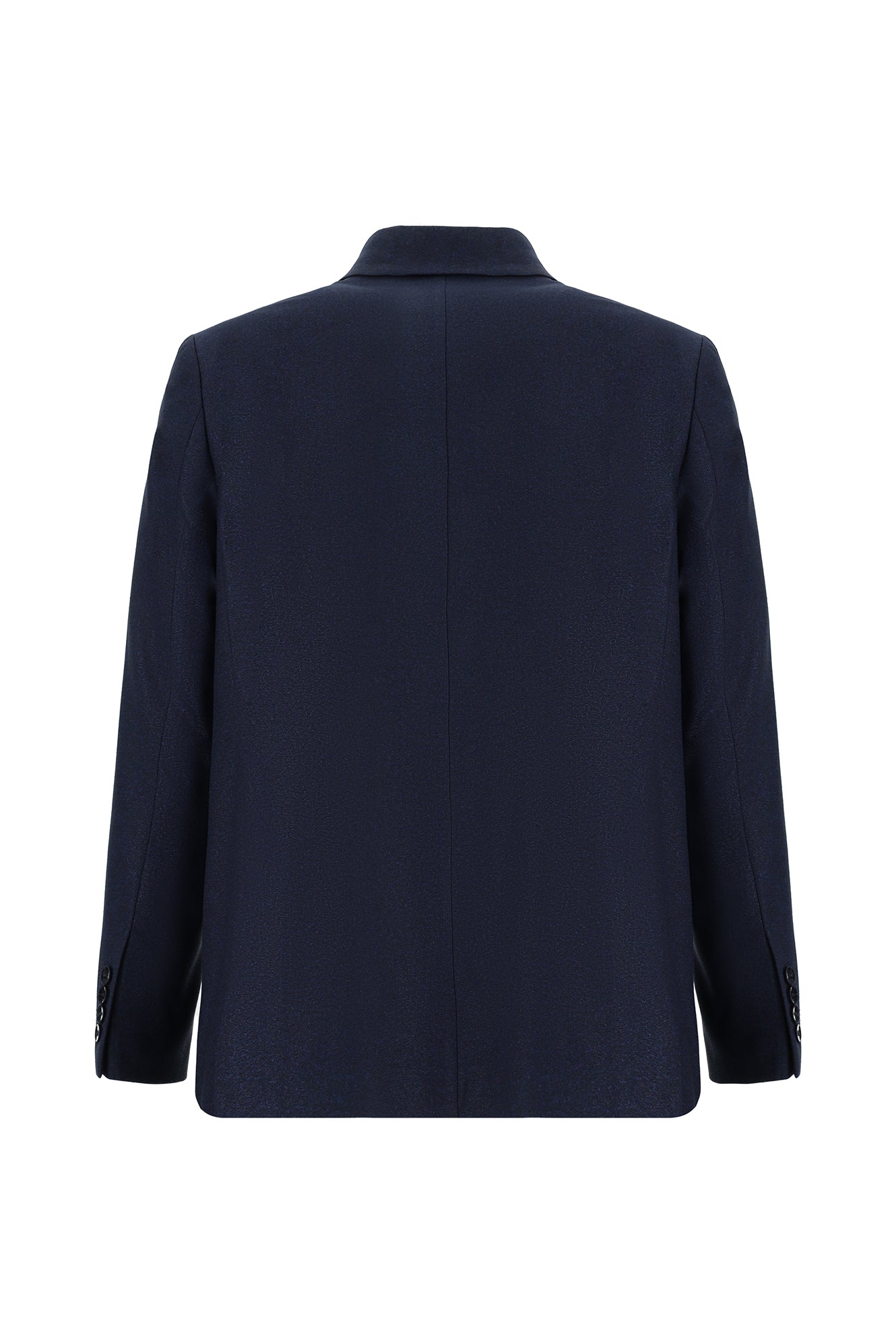 Orta Lacivert Slim Fit Dar Kesim Klasik Desenli Ceket