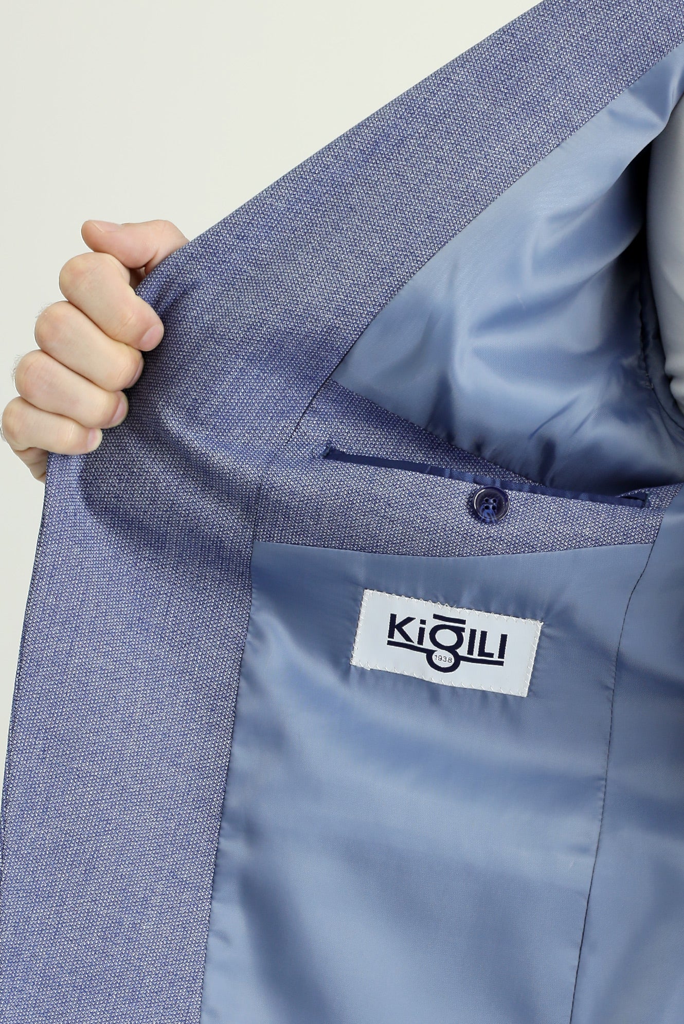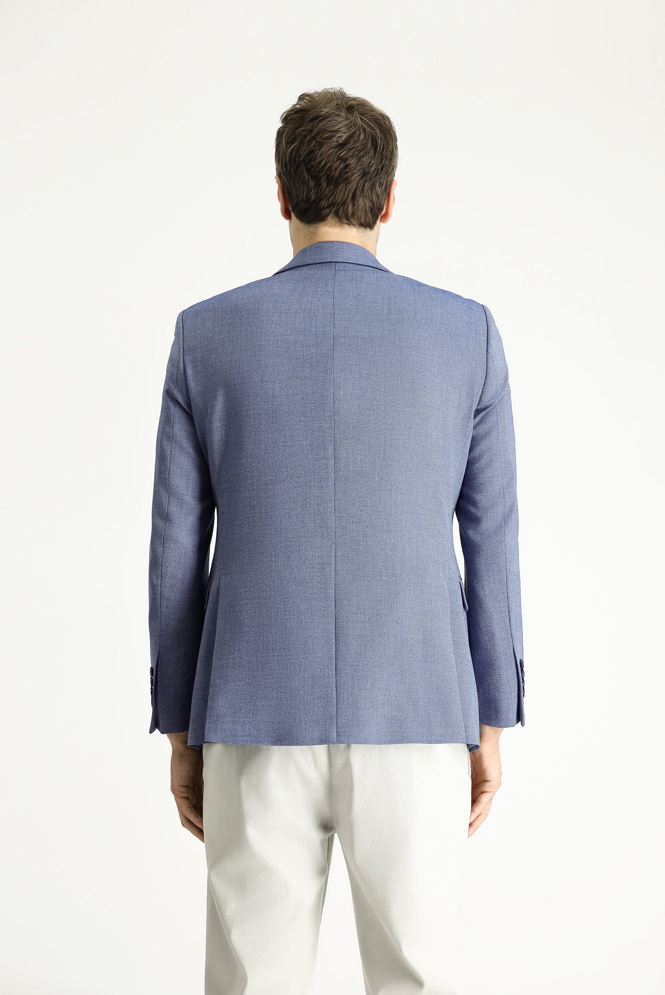 Orta Lacivert Slim Fit Dar Kesim Klasik Desenli Ceket