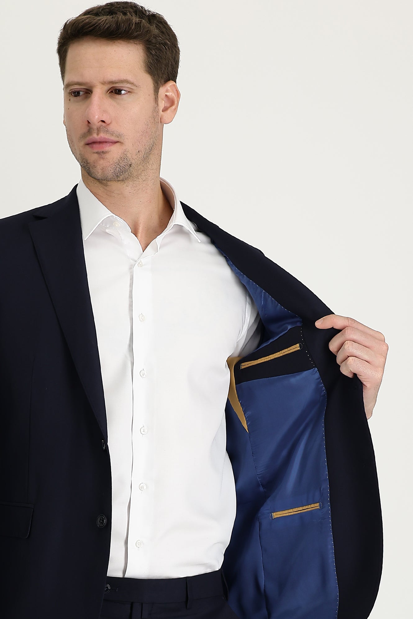 Orta Lacivert Slim Fit Dar Kesim Klasik Takım Elbise