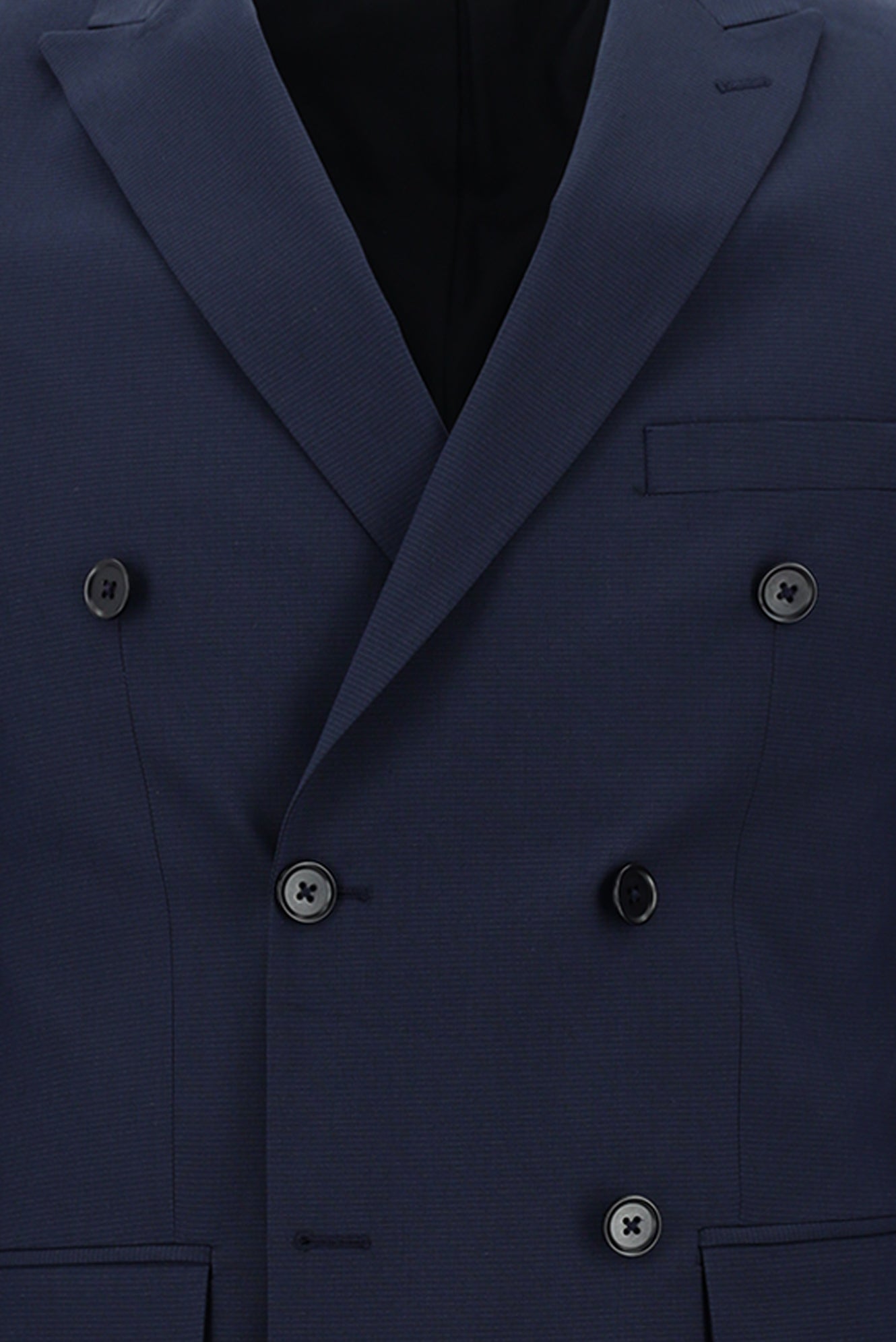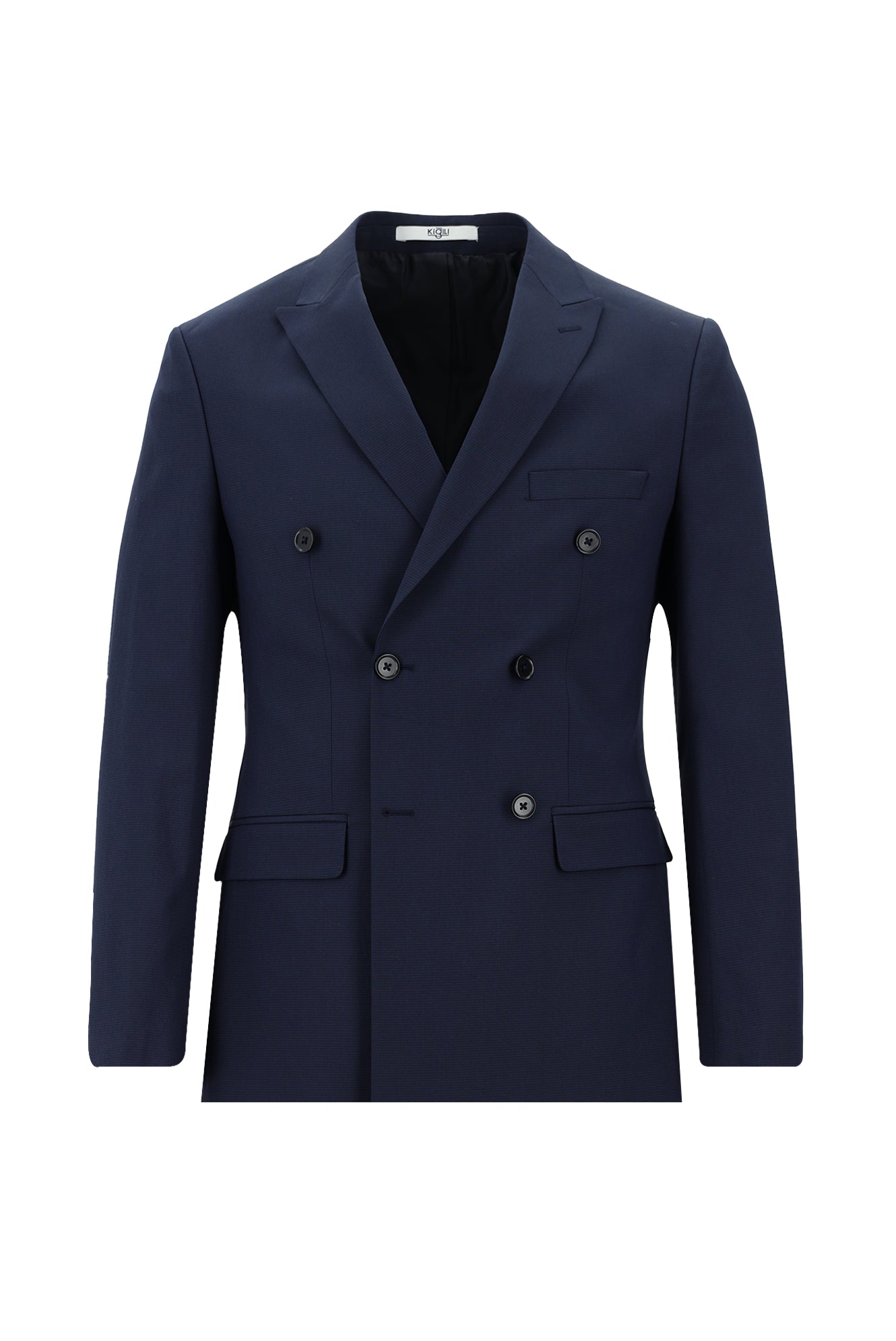 Orta Lacivert Super Slim Fit Ekstra Dar Kesim Fit Kruvaze Çizgili Takım Elbise