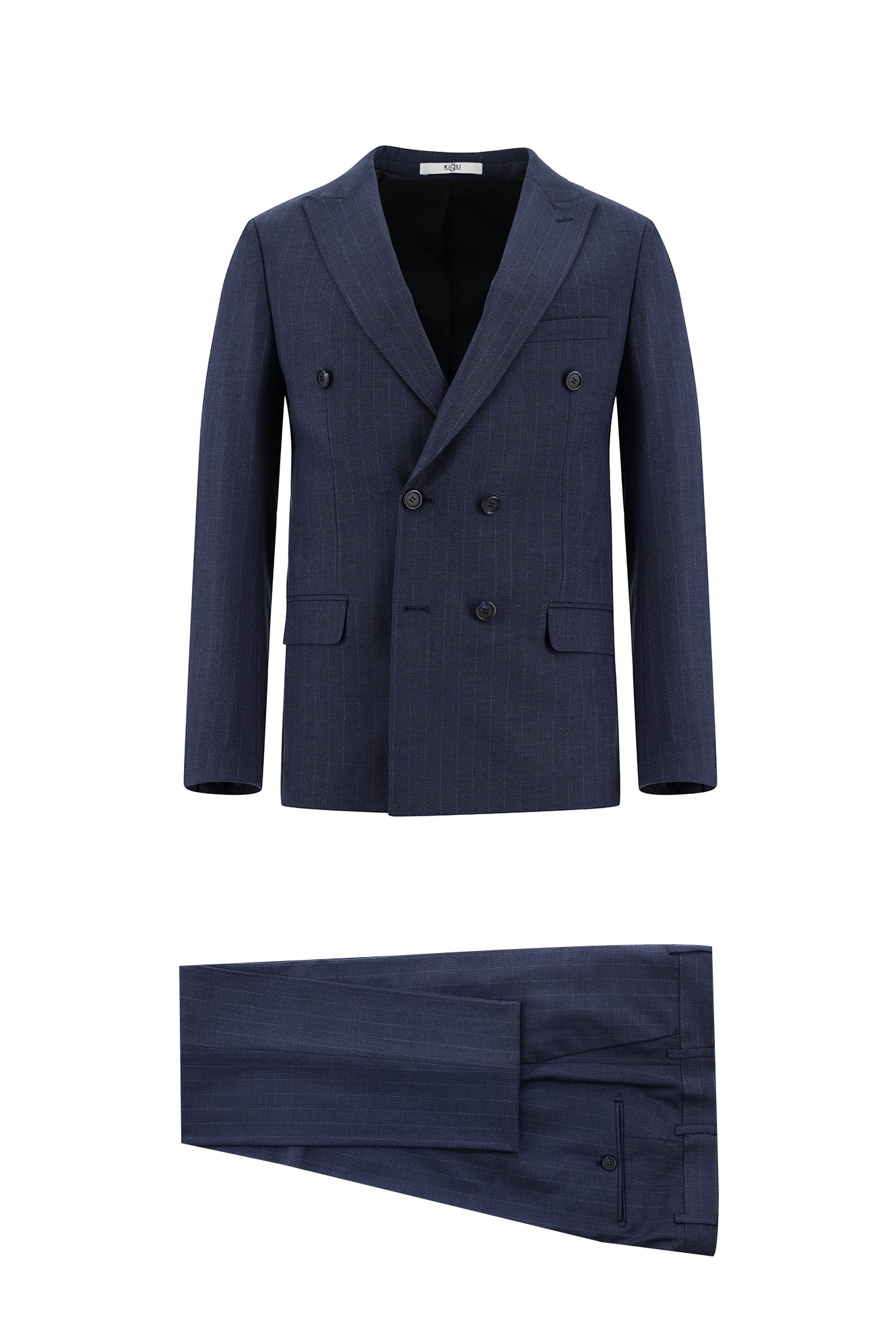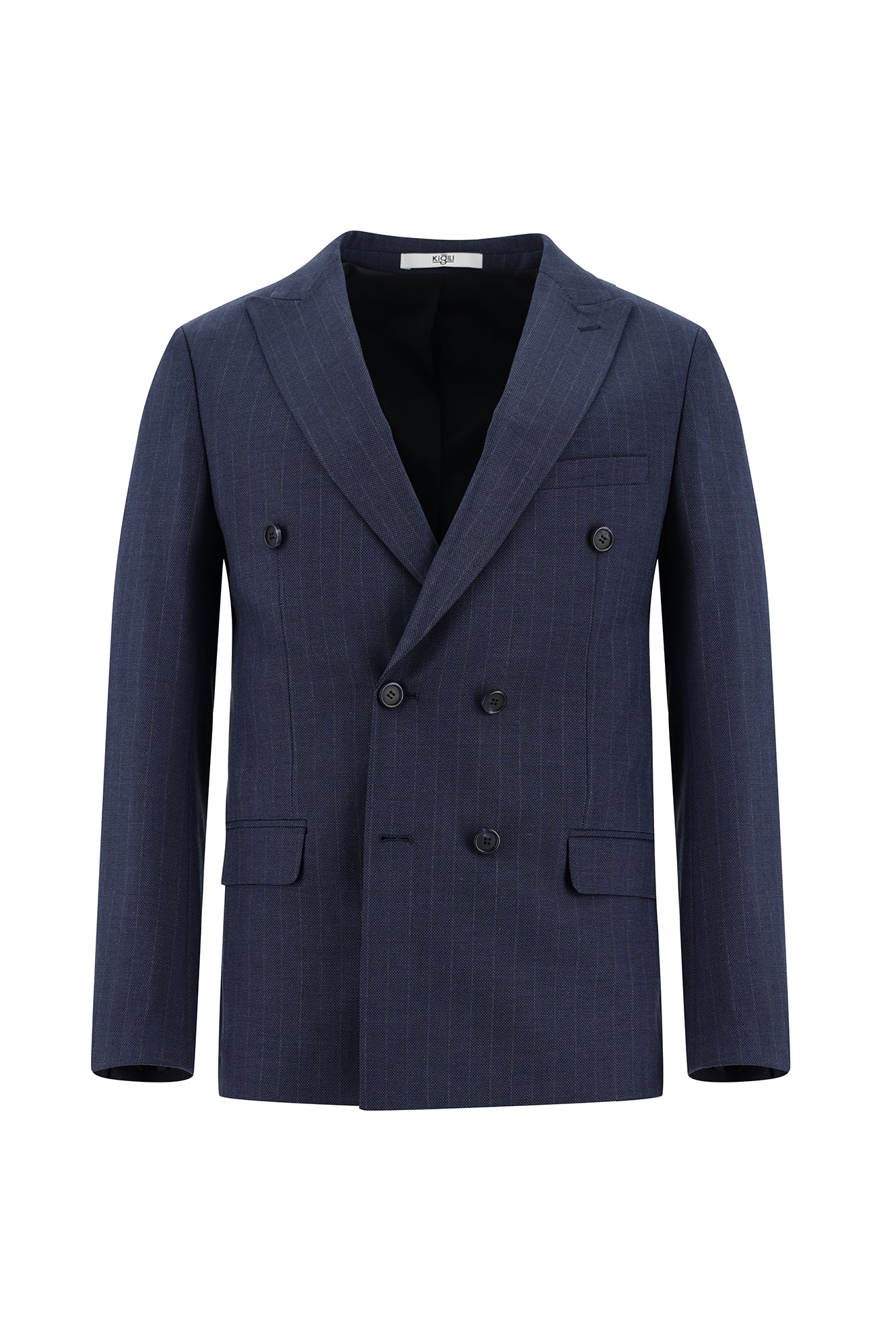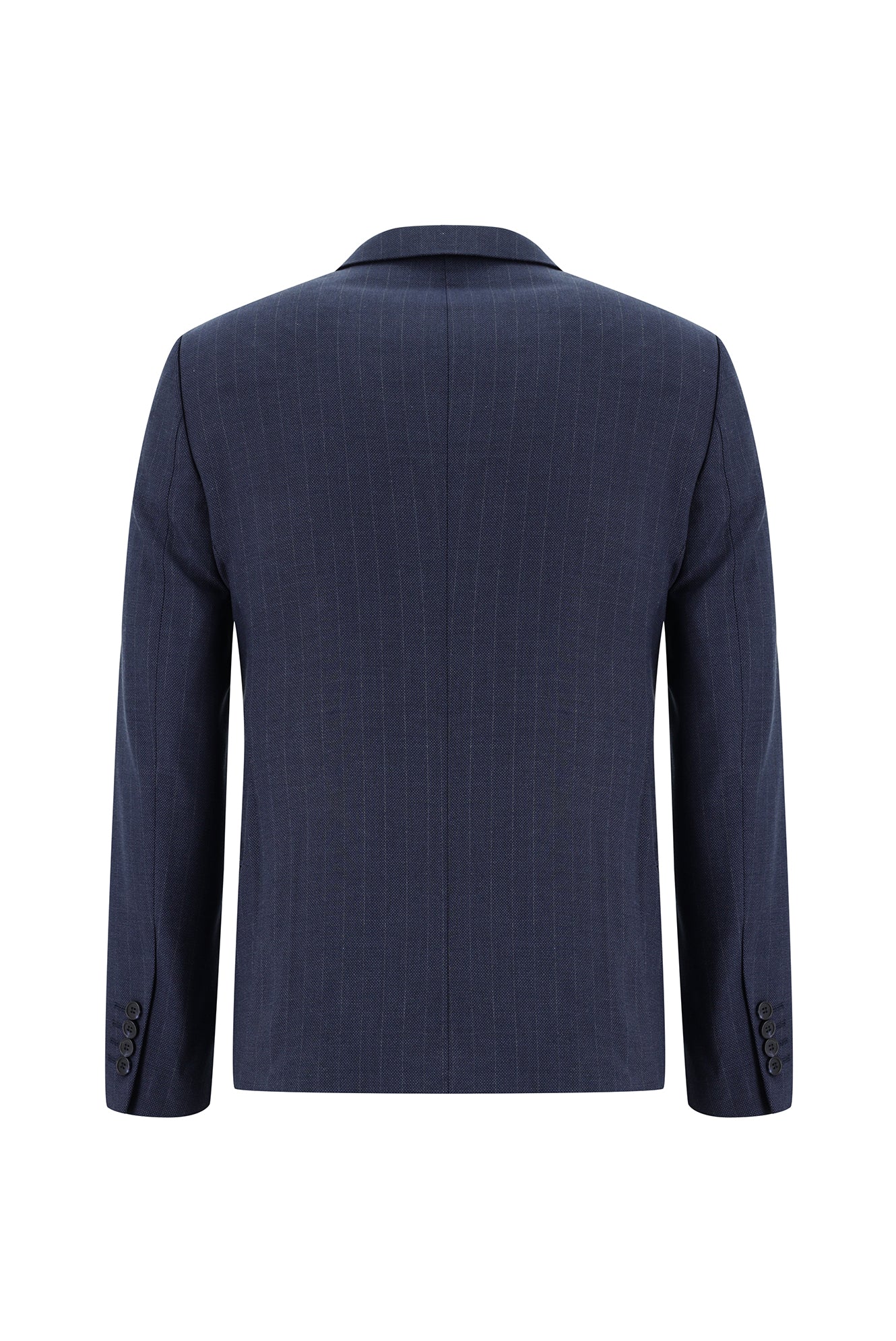 Orta Lacivert Super Slim Fit Ekstra Dar Kesim Kruvaze Çizgili Takım Elbise