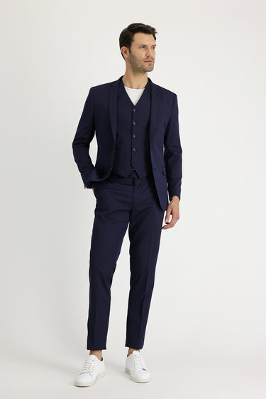 Orta Lacivert 7 Drop Super Slim Fit Eksra Dar Kesim Fit Yelekli Takım Elbise